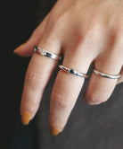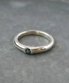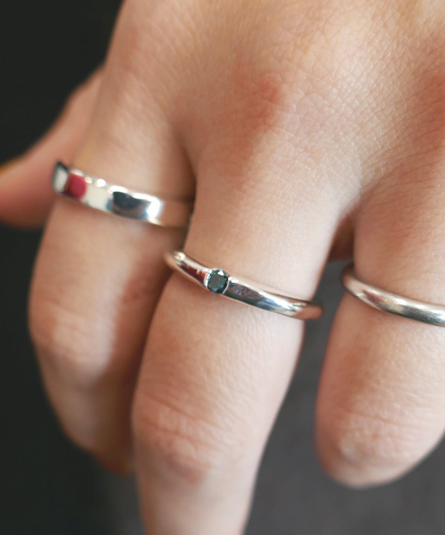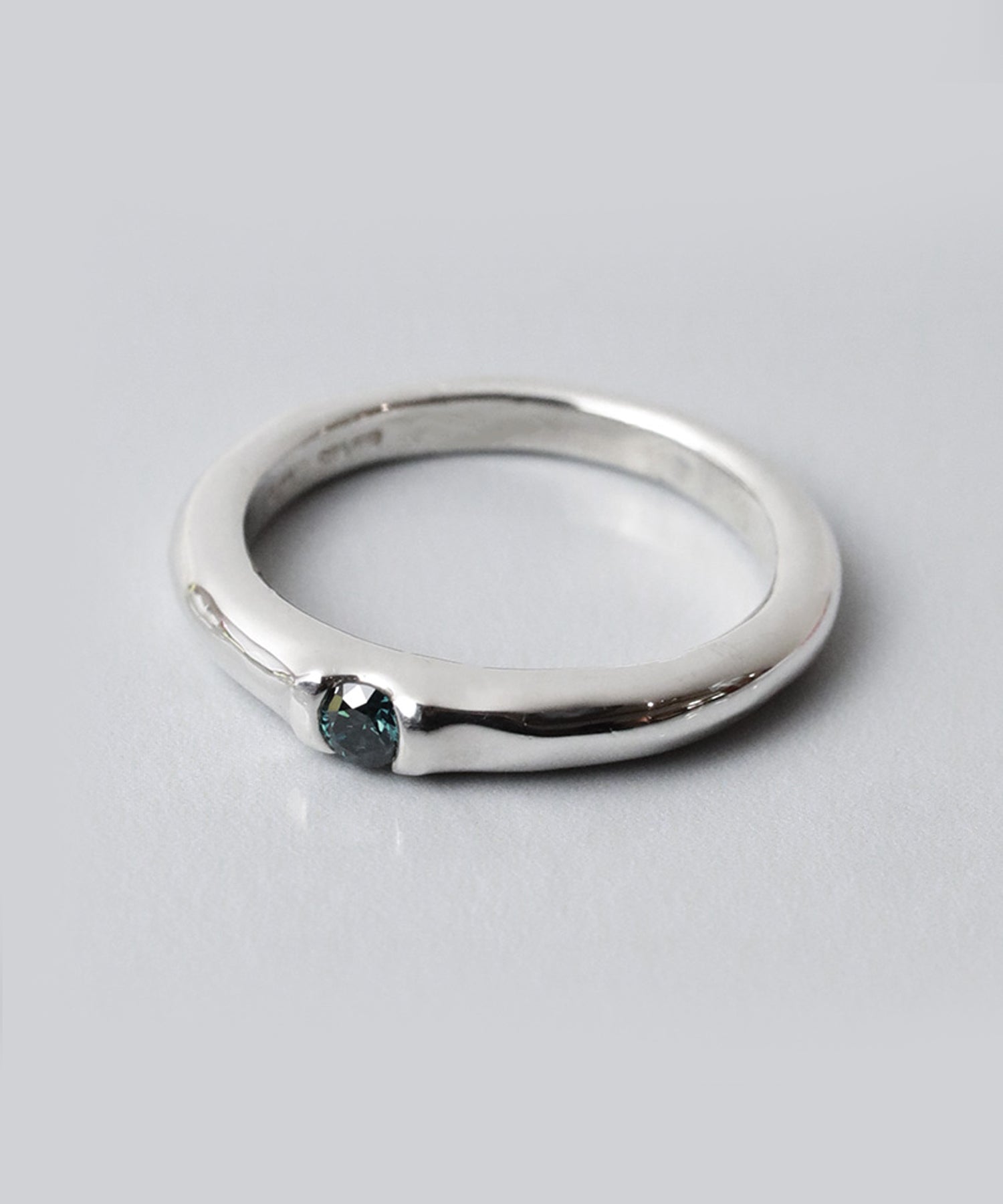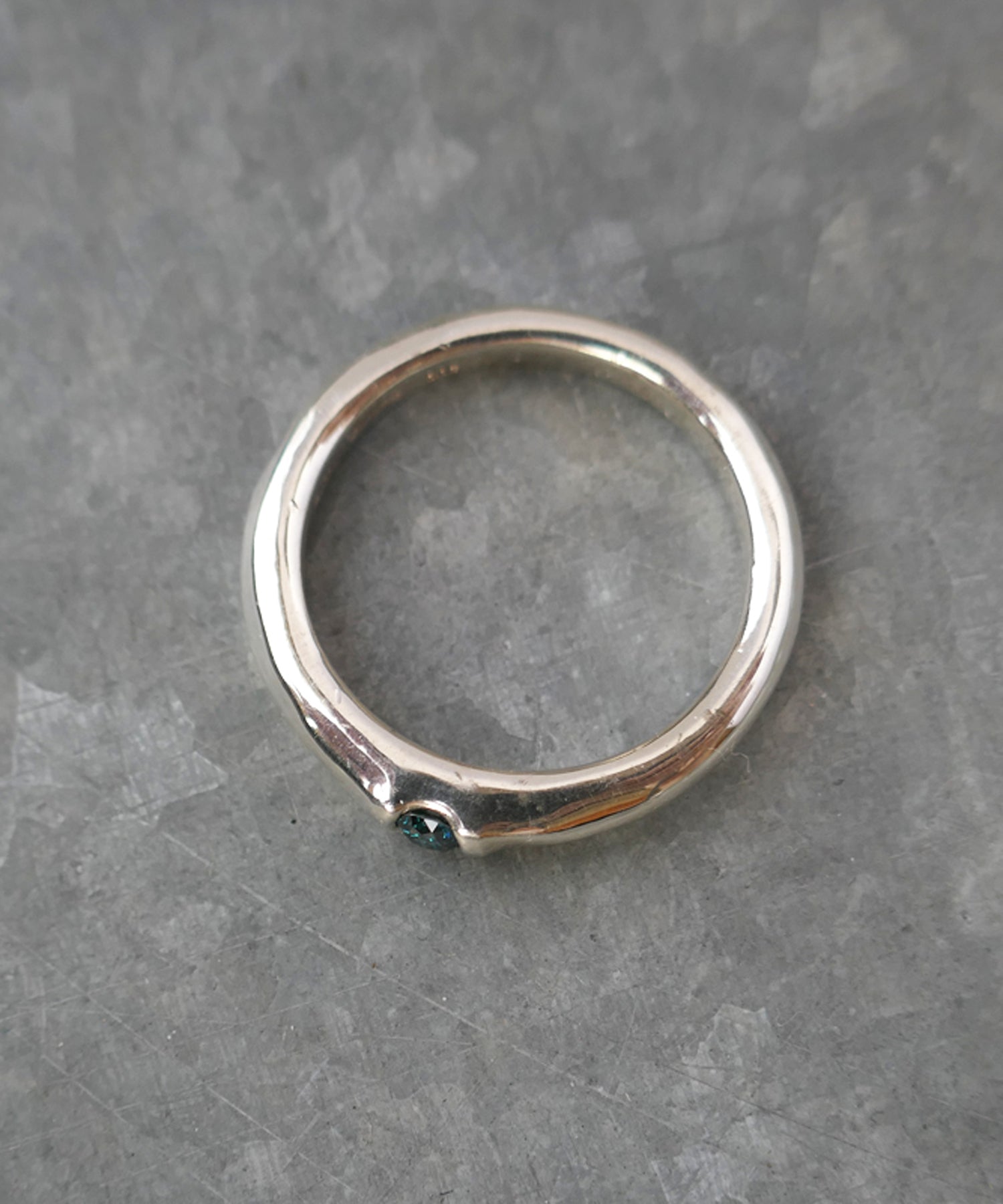 ミニマルなアームに映える鮮やかなブルーダイヤモンド。