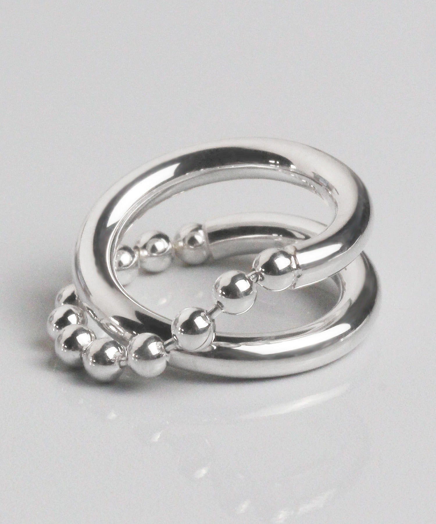 シンプルな曲線とボールチェーンが交じり合うデザイン性のあるリング。