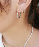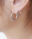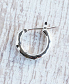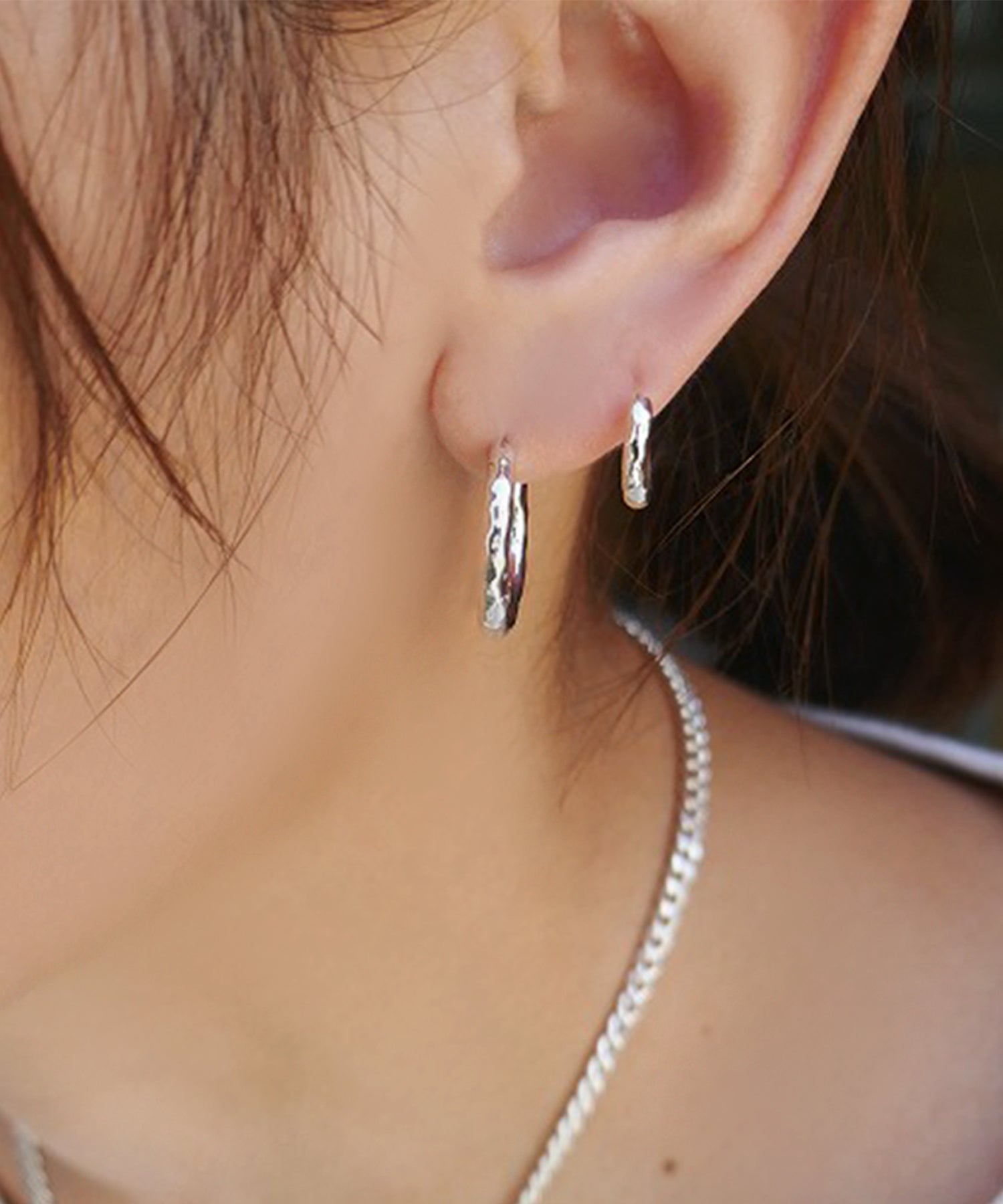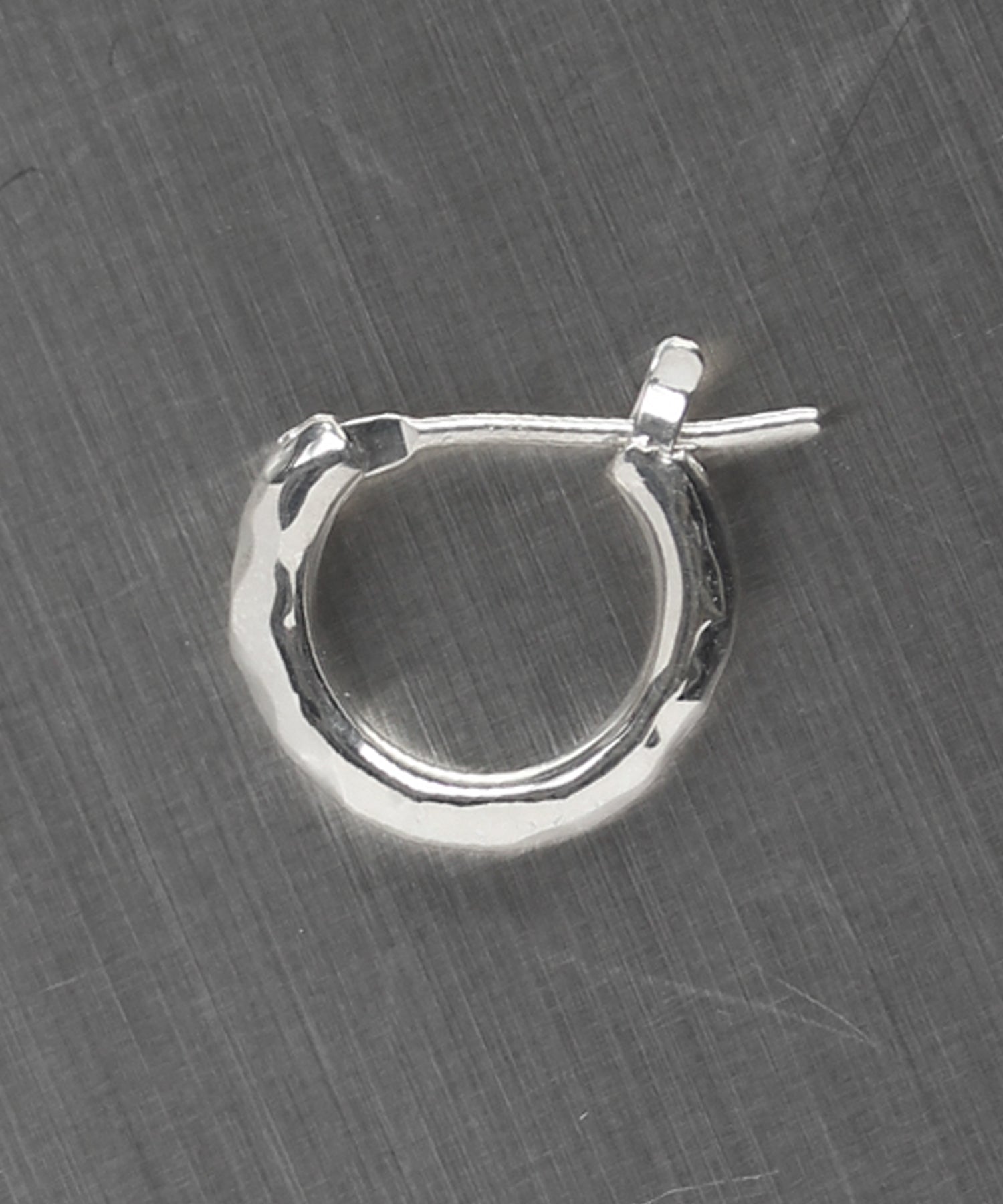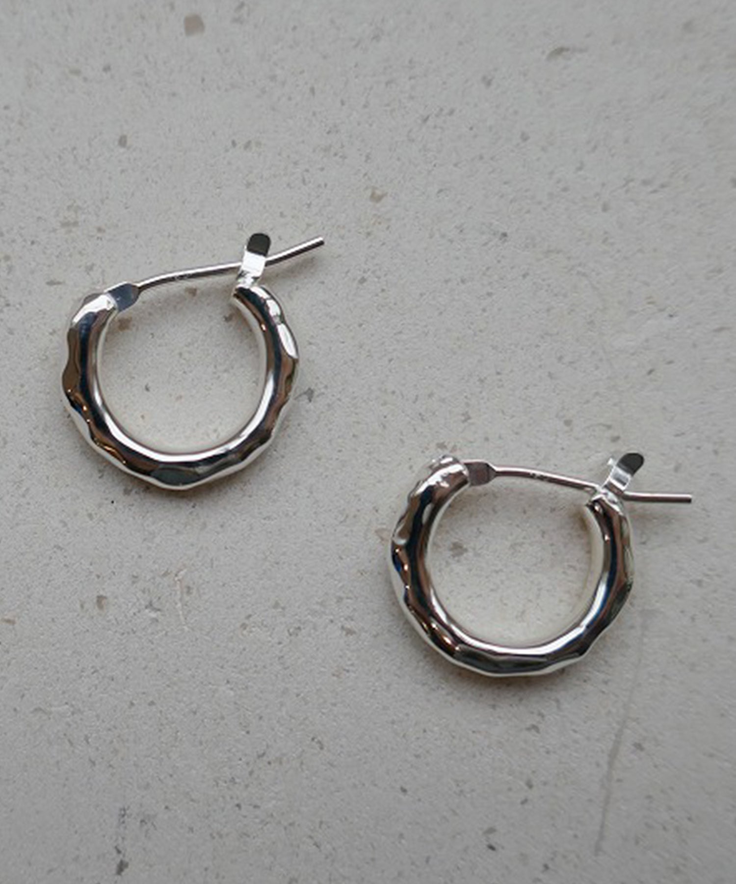 叩き加工の施された小さめのフープピアス。両耳であわせたりカフスのようにとめたり
