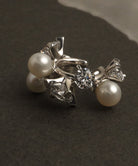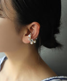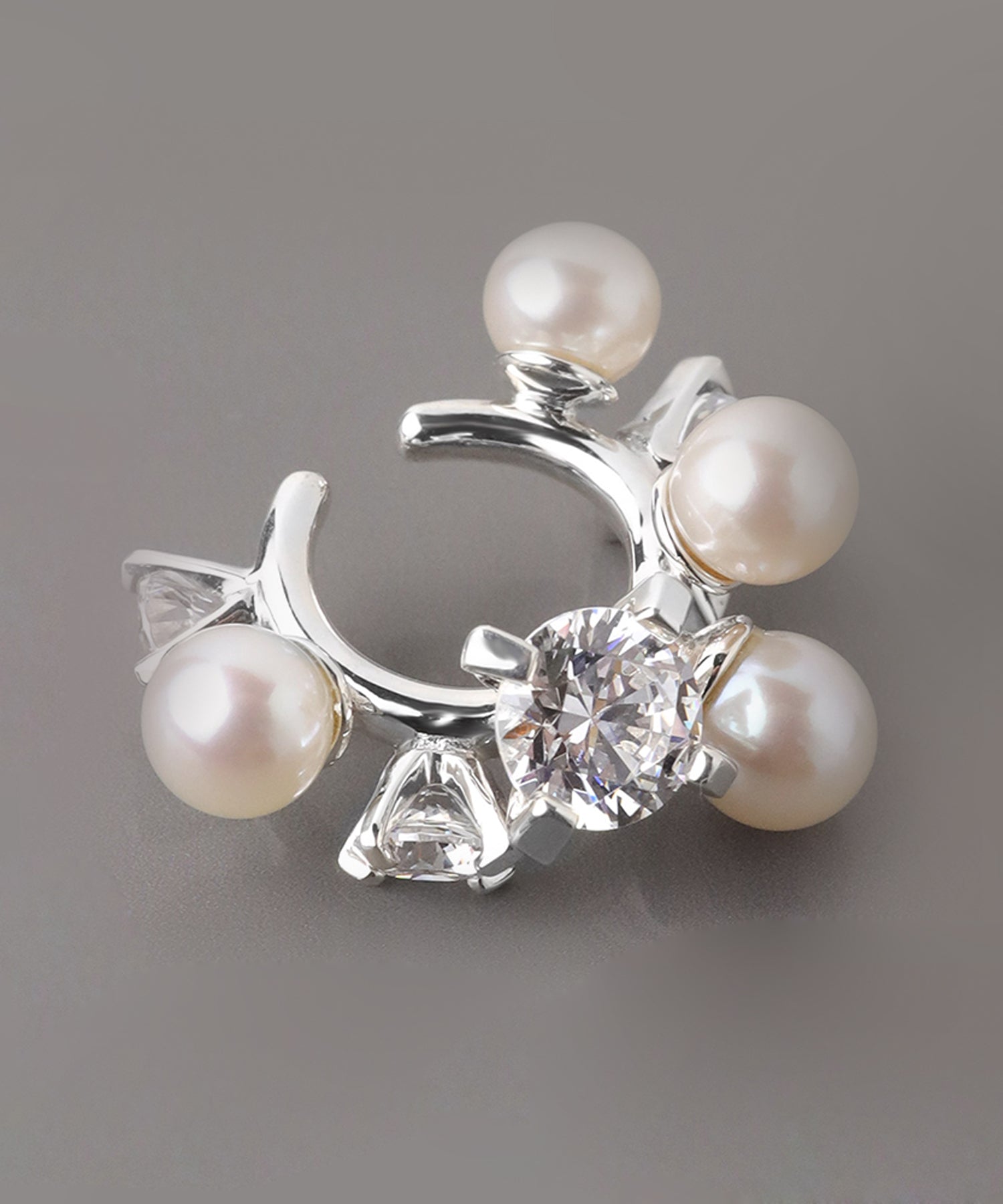 全体にキュービックジルコニアとパールをセッティングしたイヤーカフ。すべての角度からも美しく見えるようにランダムに、 またストーンのサイズも変えることで全体のバランスをとっています。