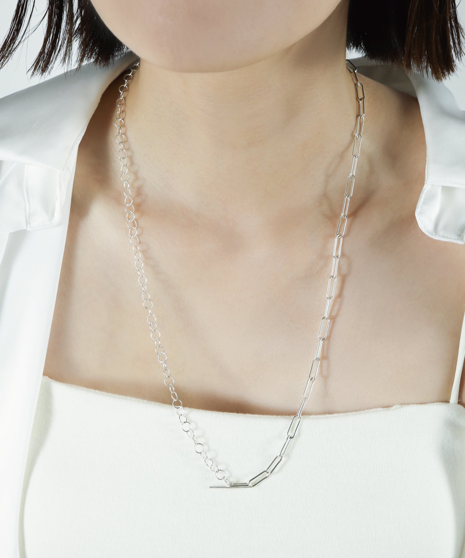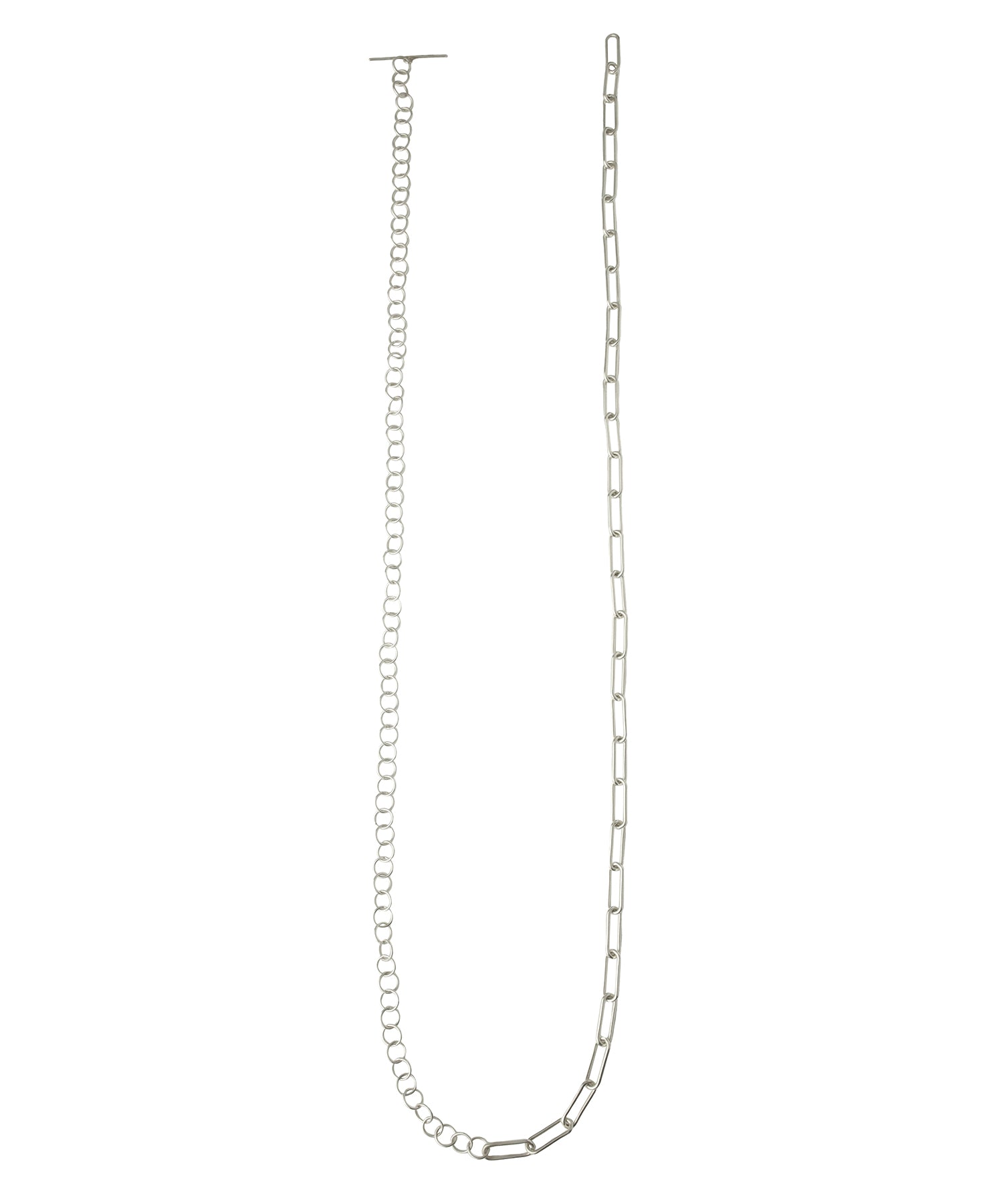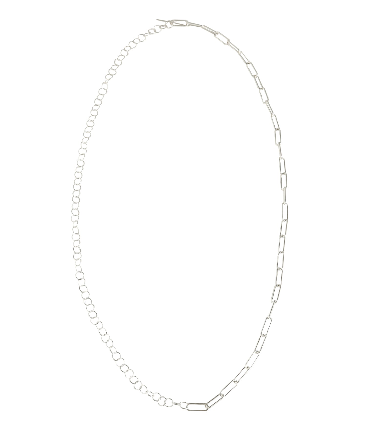 2種類のチェーンを使用したミックスチェーンネックレス。