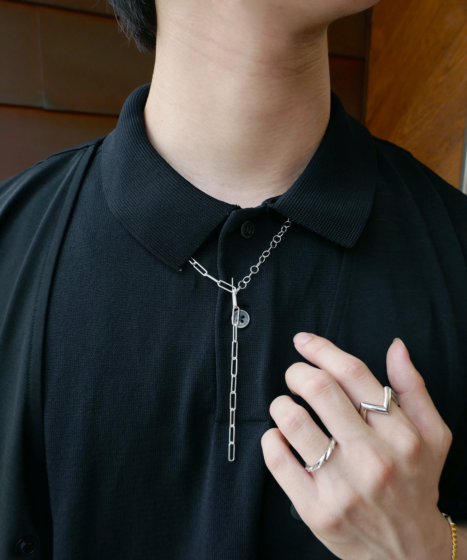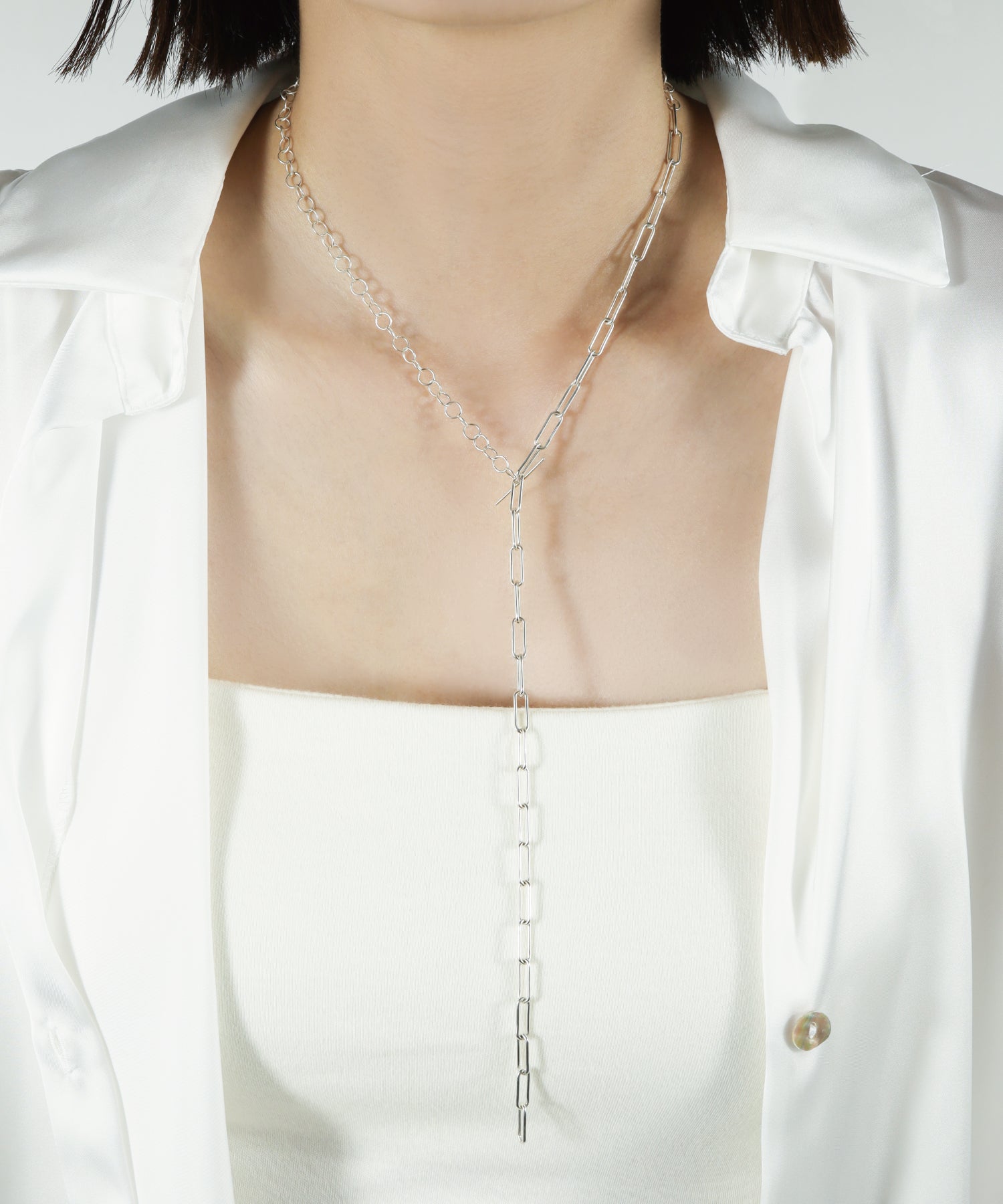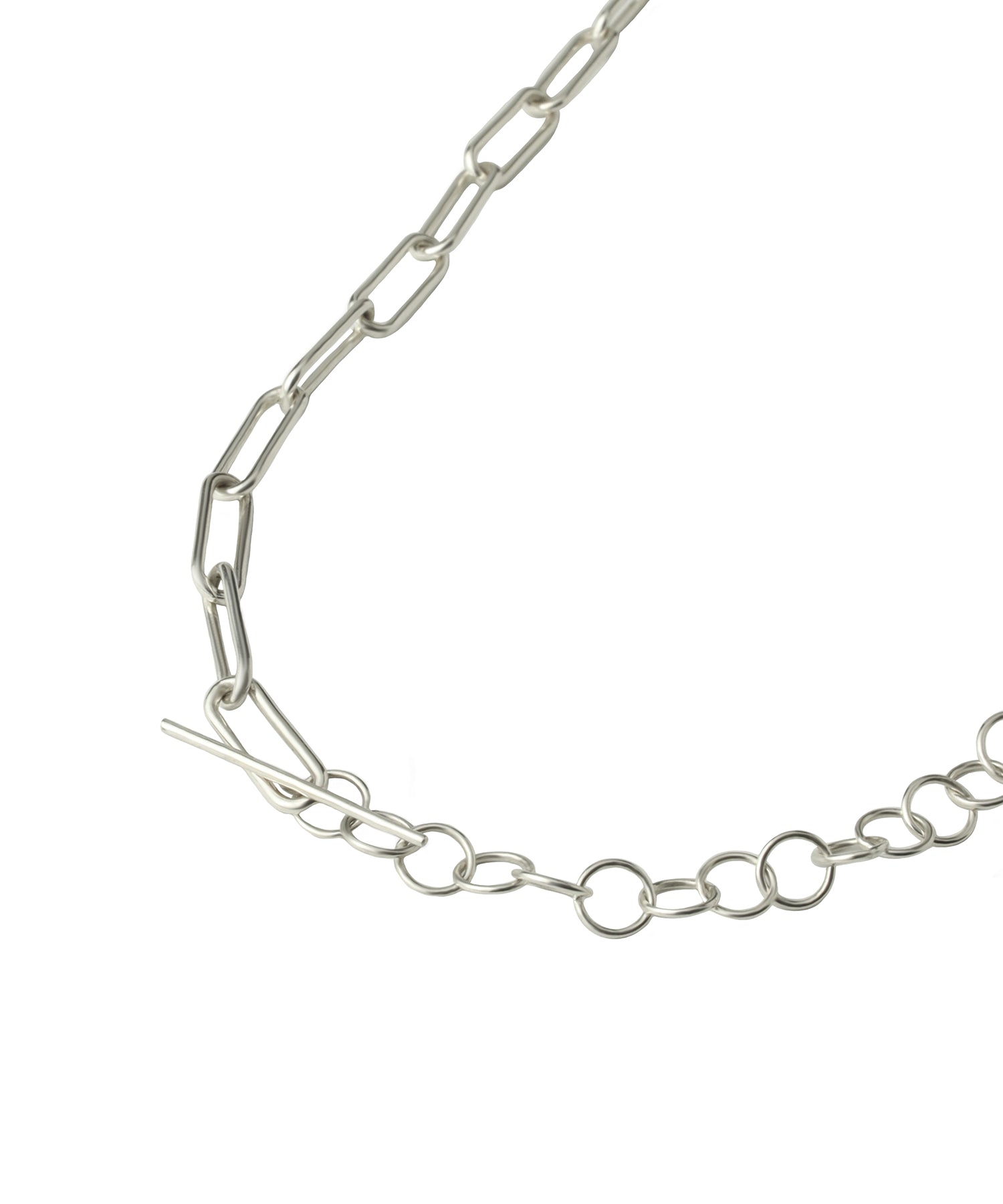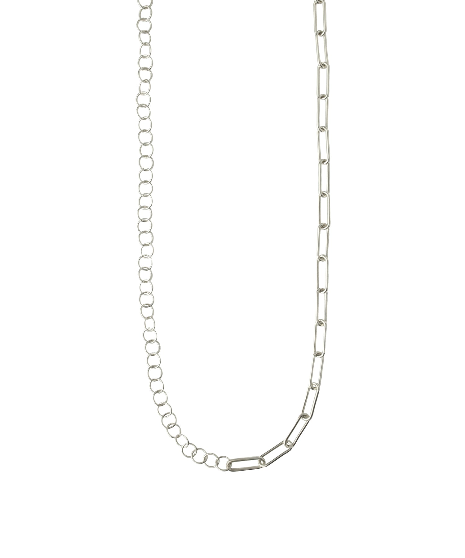 2種類のチェーンを使用したミックスチェーンネックレス。
