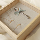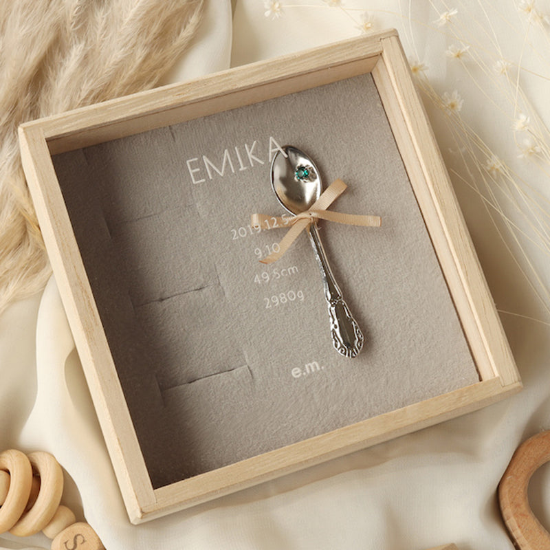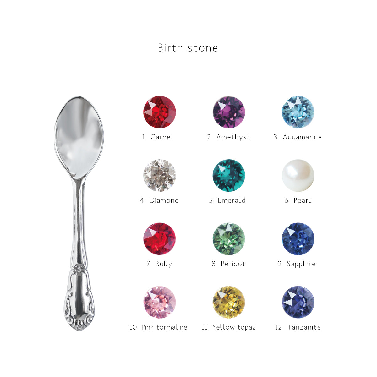 銀色のスプーンの上には12種類の誕生石からセレクトできる