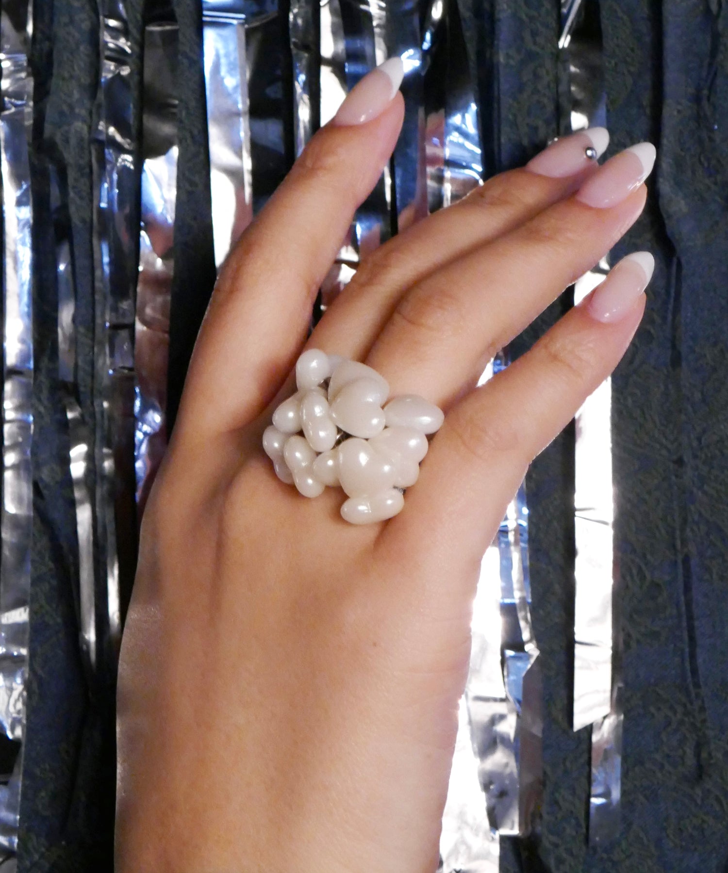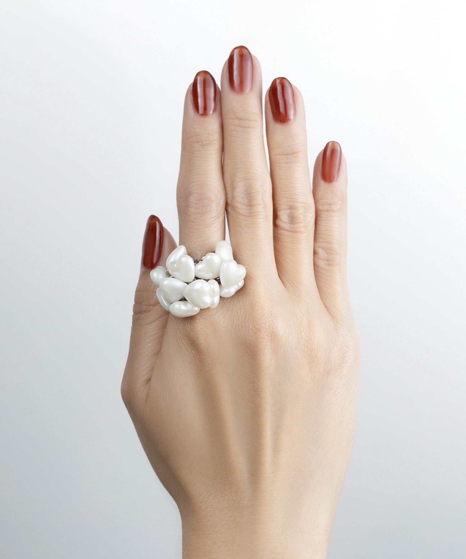 ロマンティックなハートモチーフをぎゅっと寄せ合わせたチェーンリング。