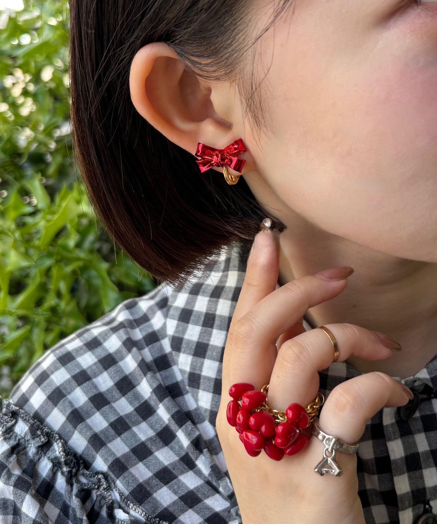 モチーフの雰囲気を活かしたフェミニンなスタイリングに単品で着けて、