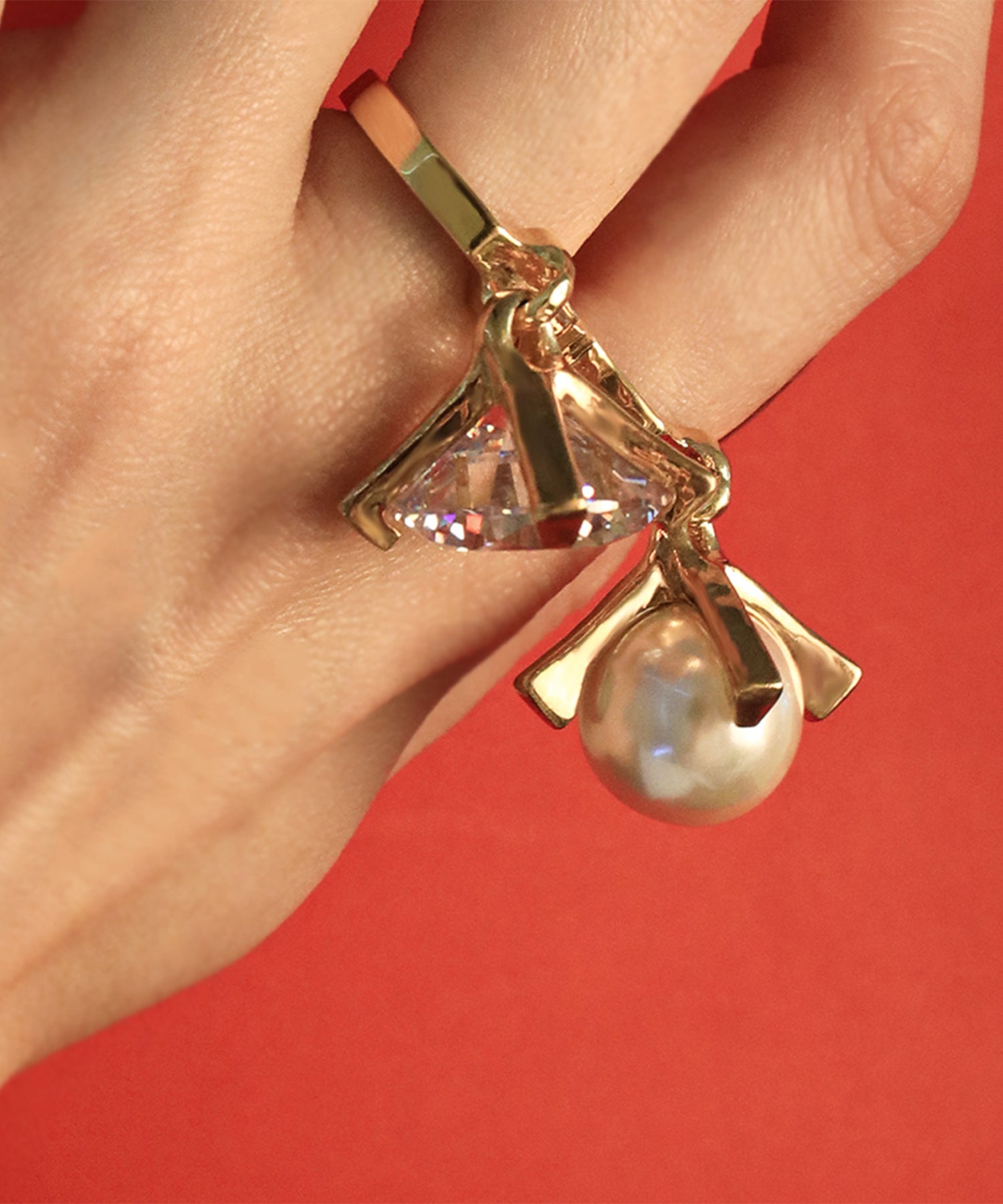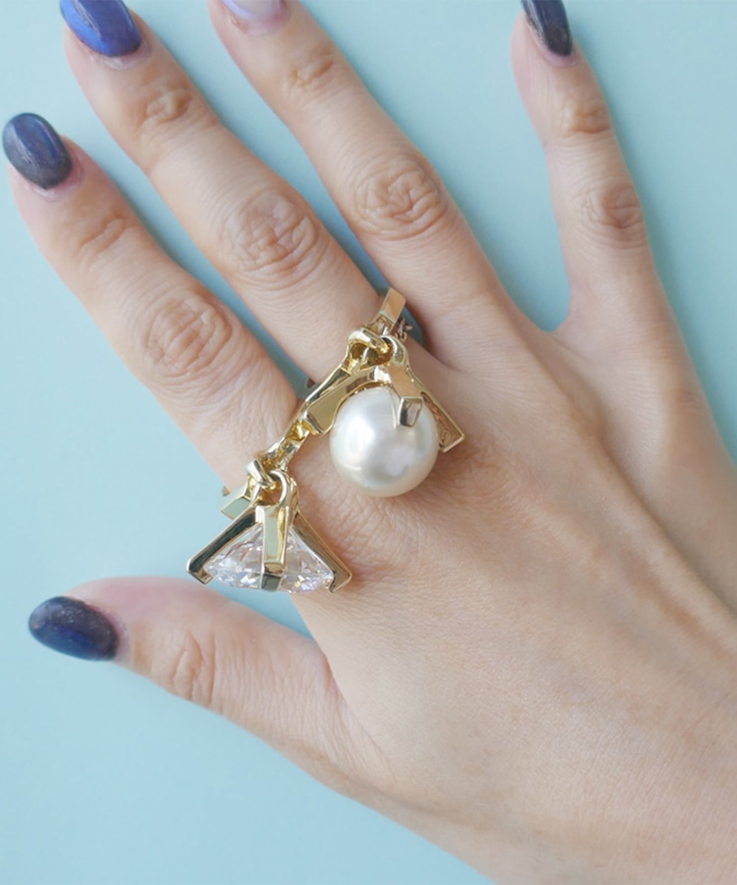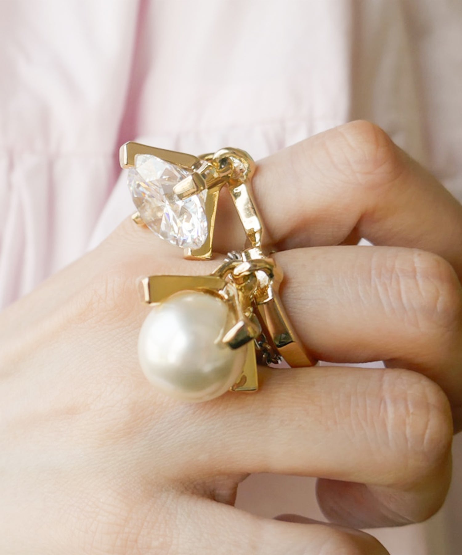 キュービックジルコニアと大粒パールが揺れる