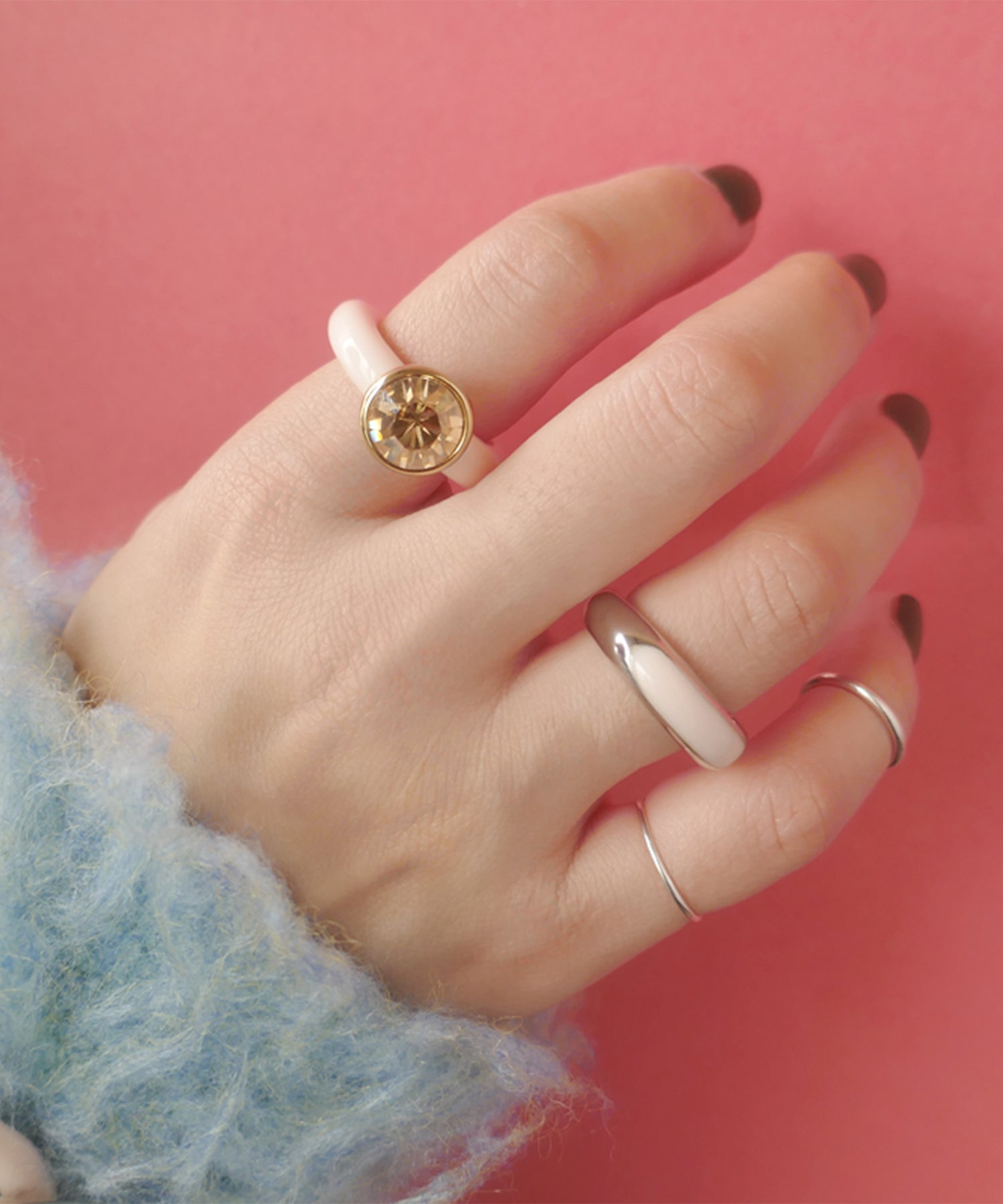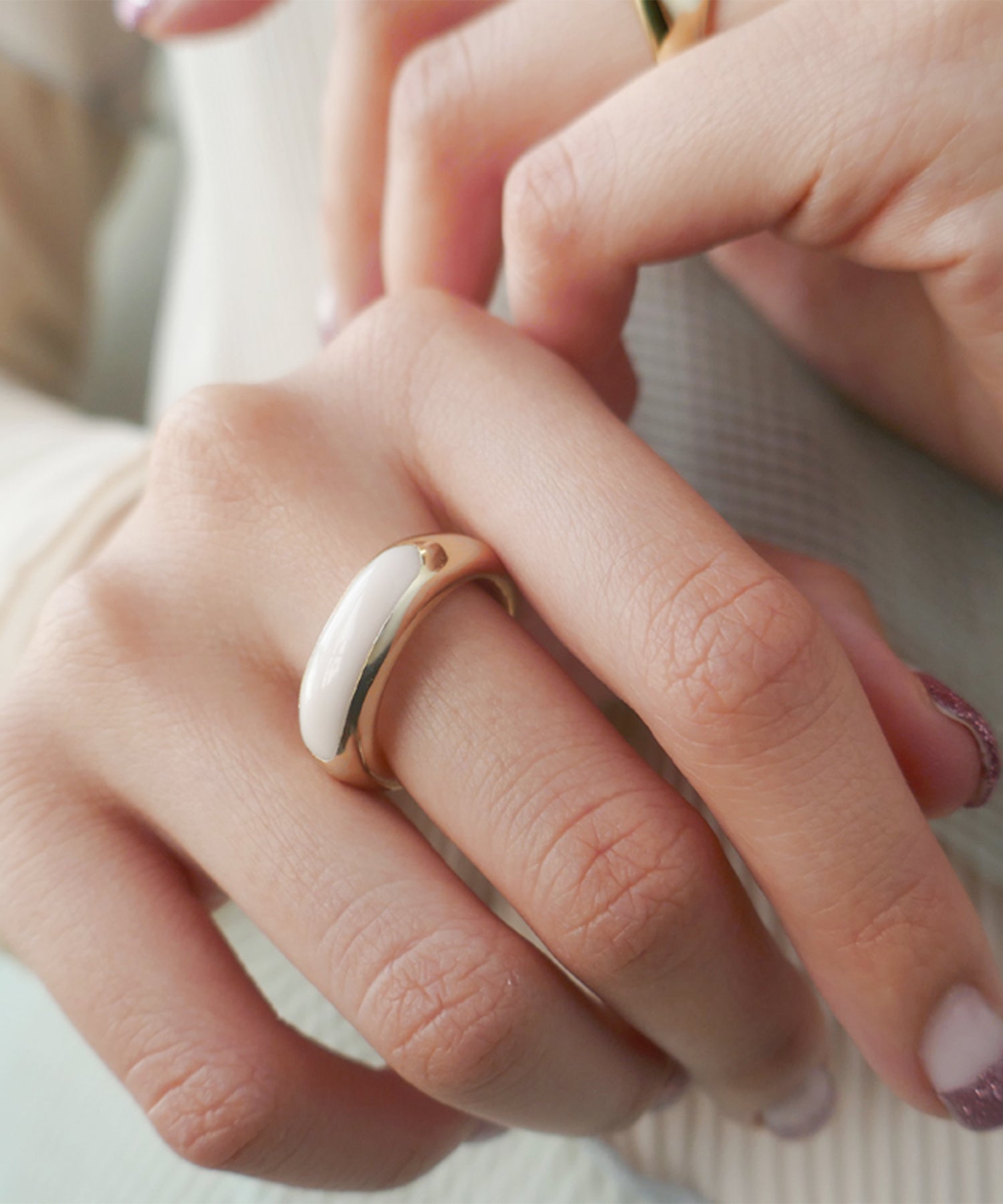 一本でも、重ね着けでもしやすい幅感と丸みに愛着が湧きます。