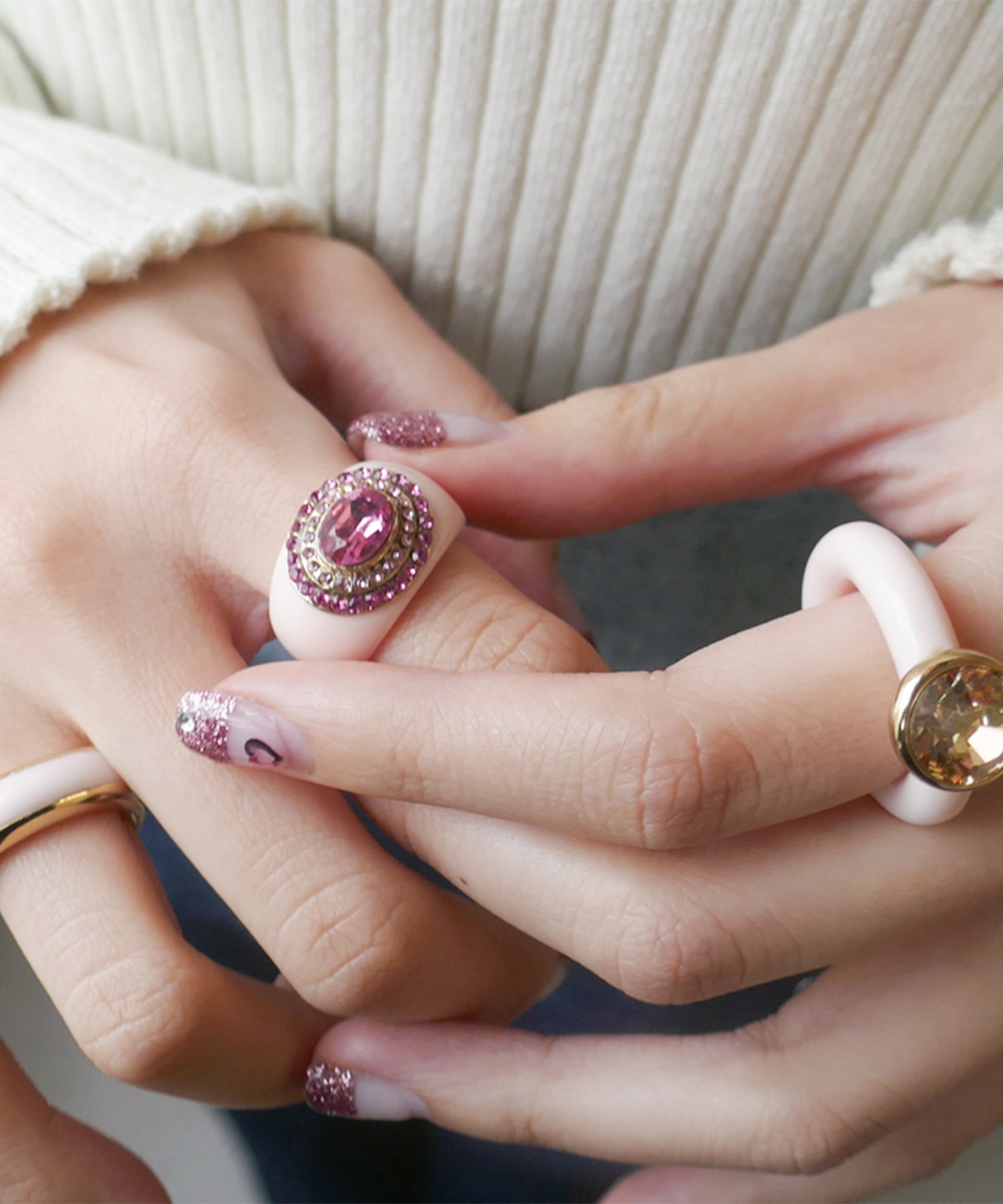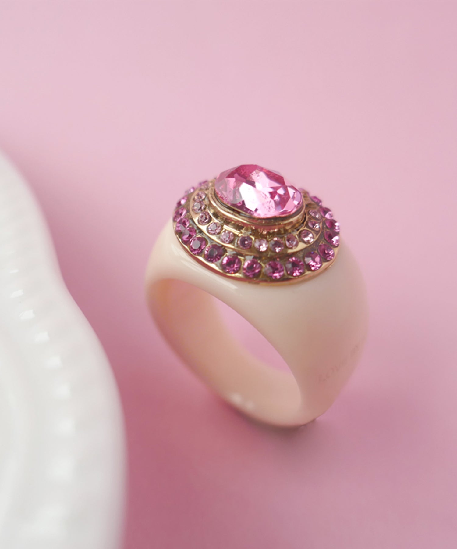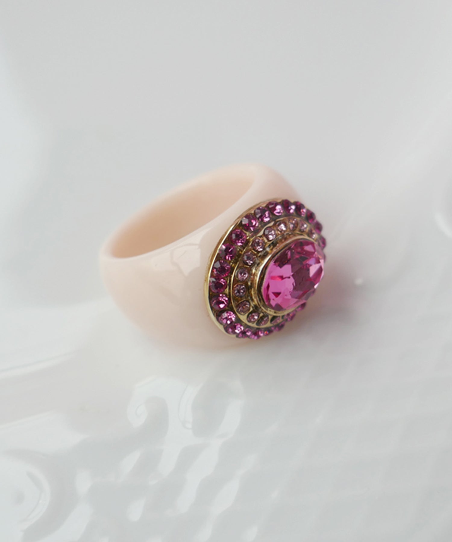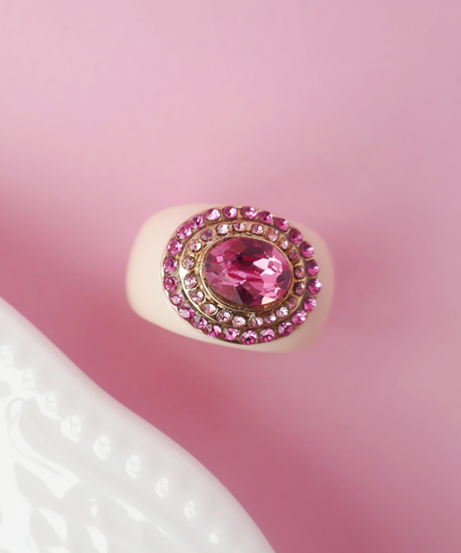 レディライクにさまざまなニュアンスピンクをぎゅっと集めたプレイフルなリング。