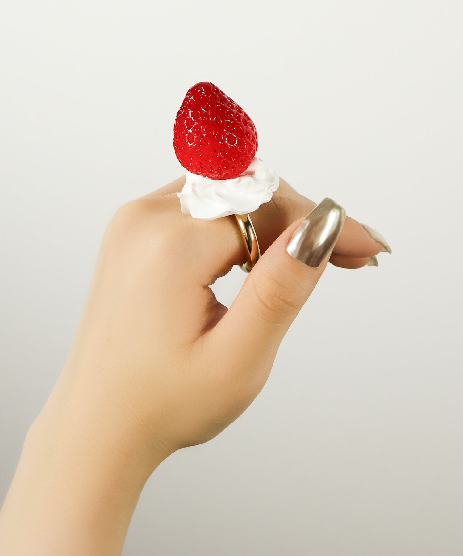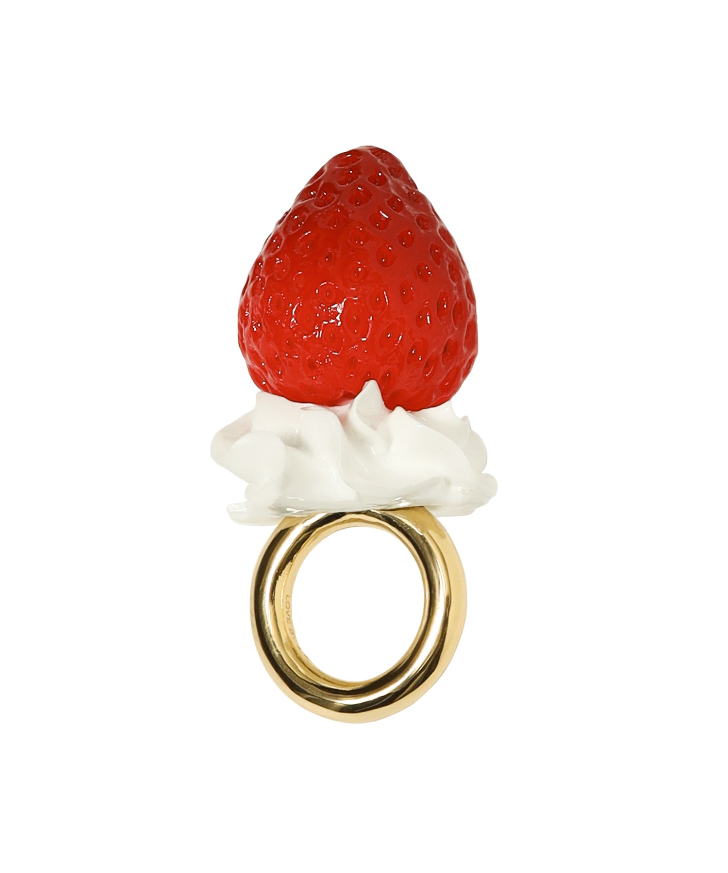 細部までこだわりを詰め込み本物そっくりな大きさや色合いに仕上げたいちごモチーフは、身に着けるだけで気分が高まるプレイフルなデザイン。