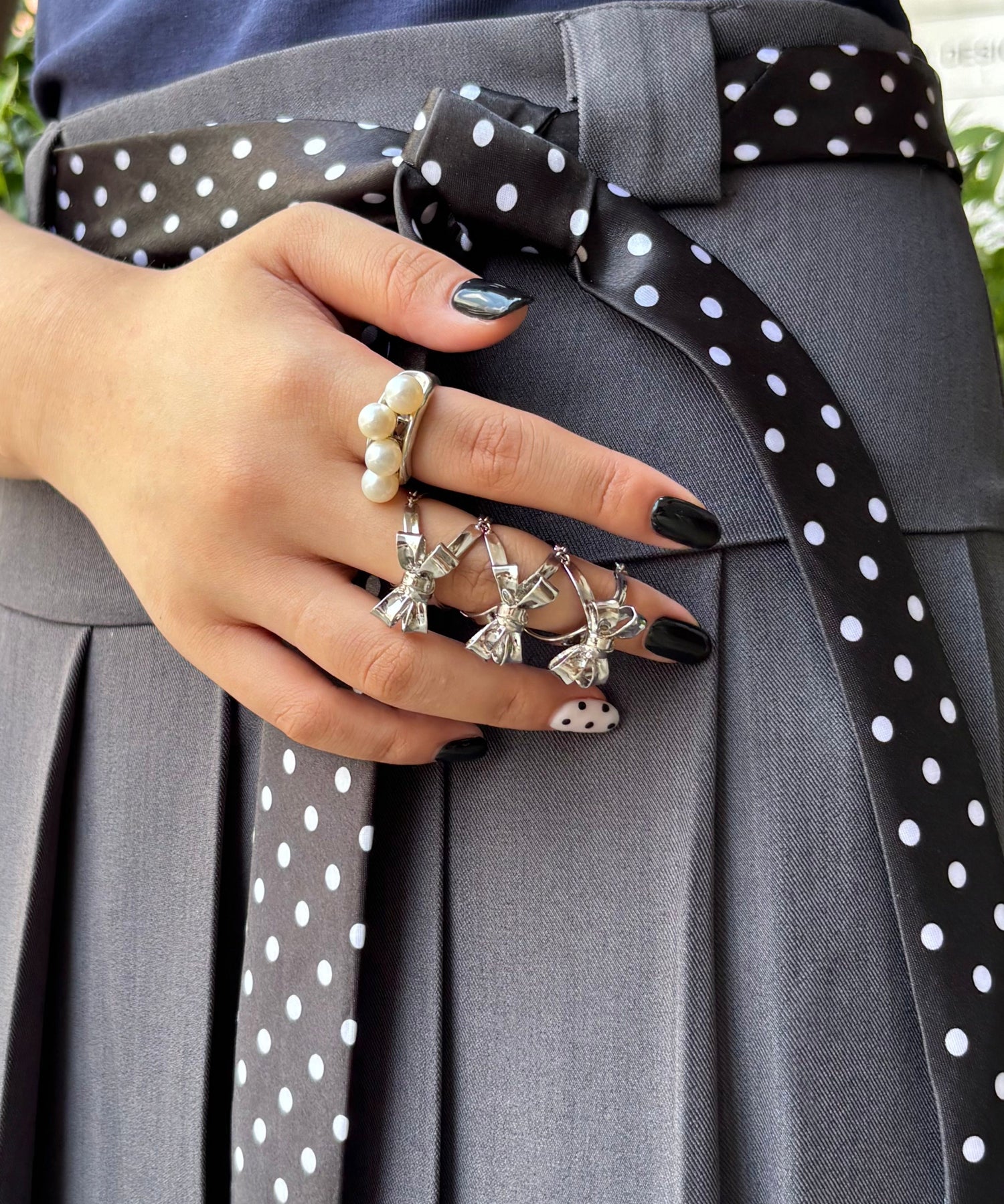 リボンモチーフで指全体をフェミニン
