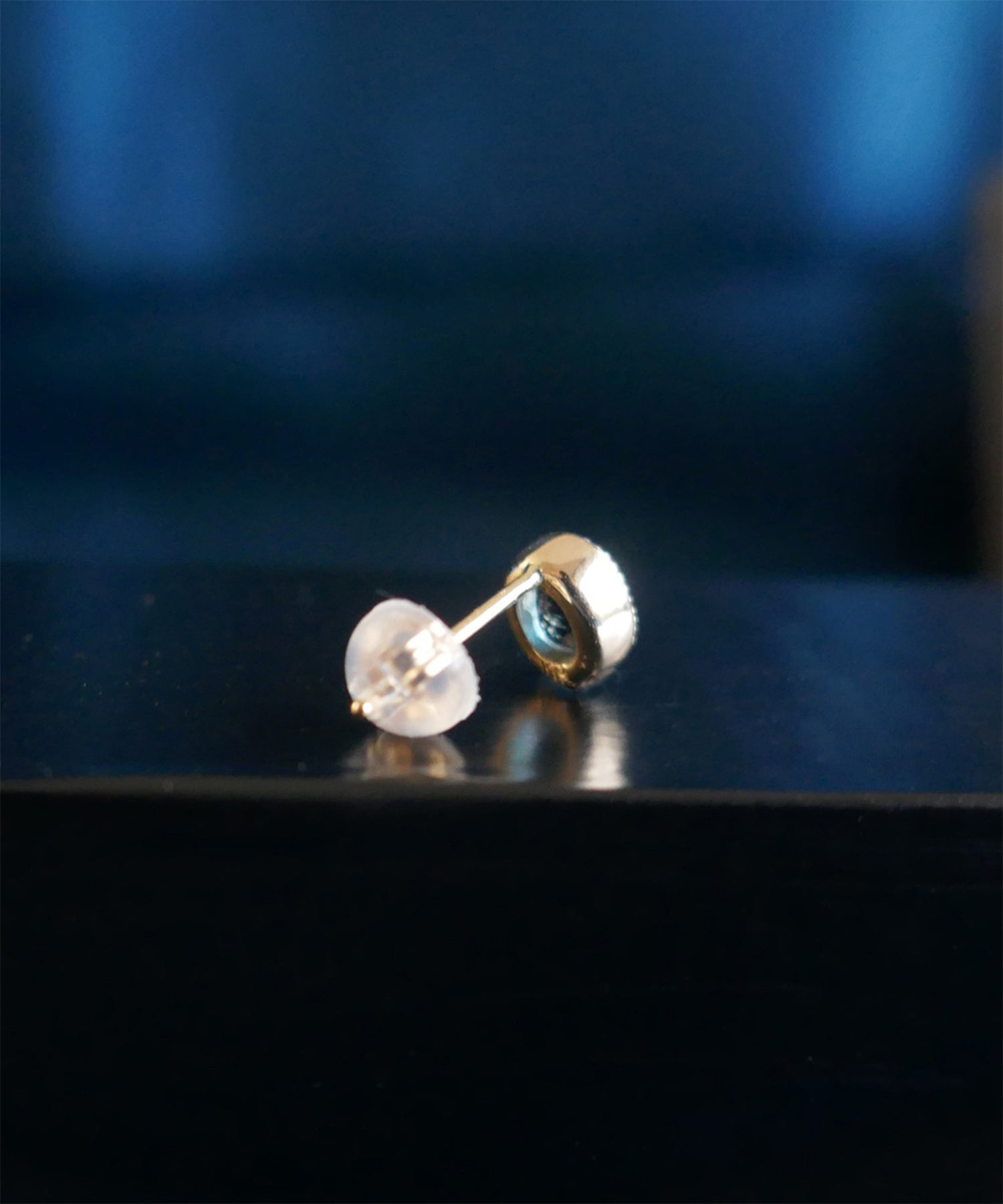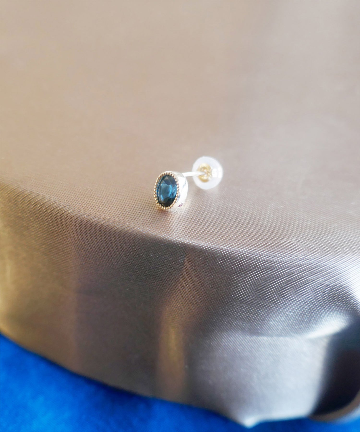ロンドンブルートパーズとゴールドのコントラストが美しいピアス。ゴールド素材にはイギリスでロイヤルゴールドと呼ばれ親しまれるK9、キャッチ・ポスト部分には傷に強いK10素材を使用しています。