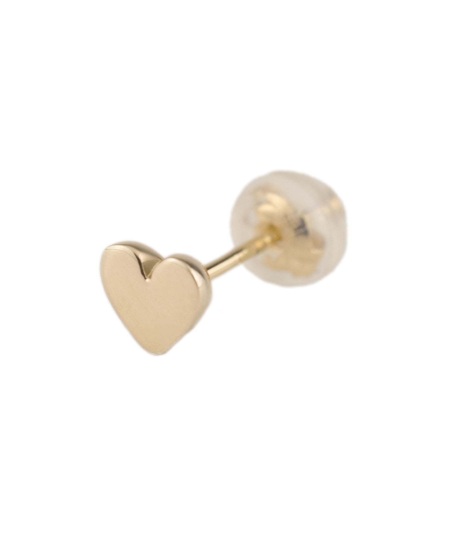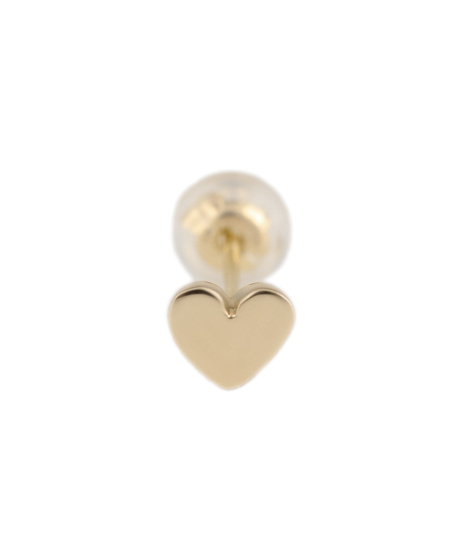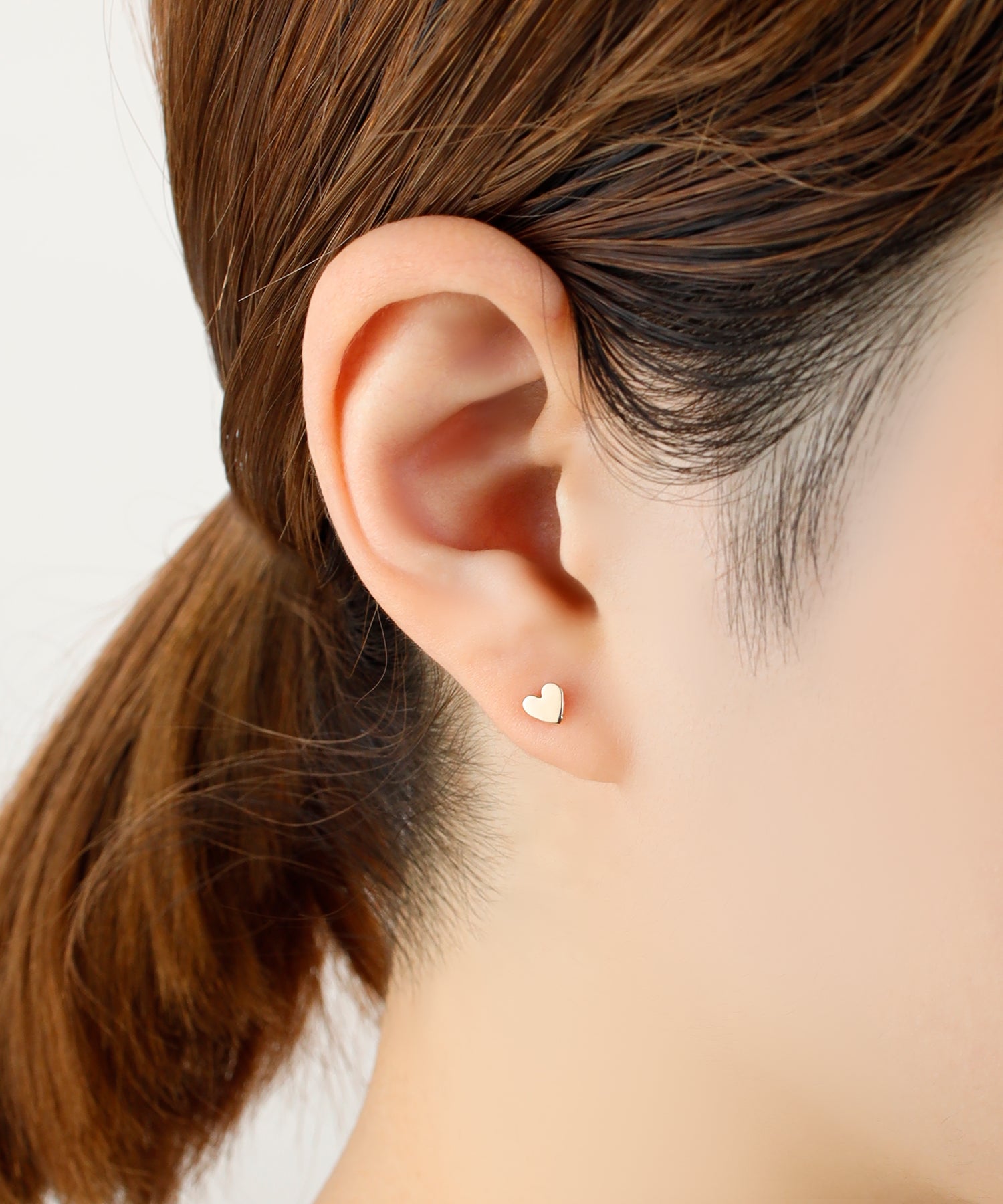 愛らしいハートモチーフをあしらったゴールドピアス。モチーフは表面をフラットに仕上げることで、