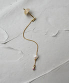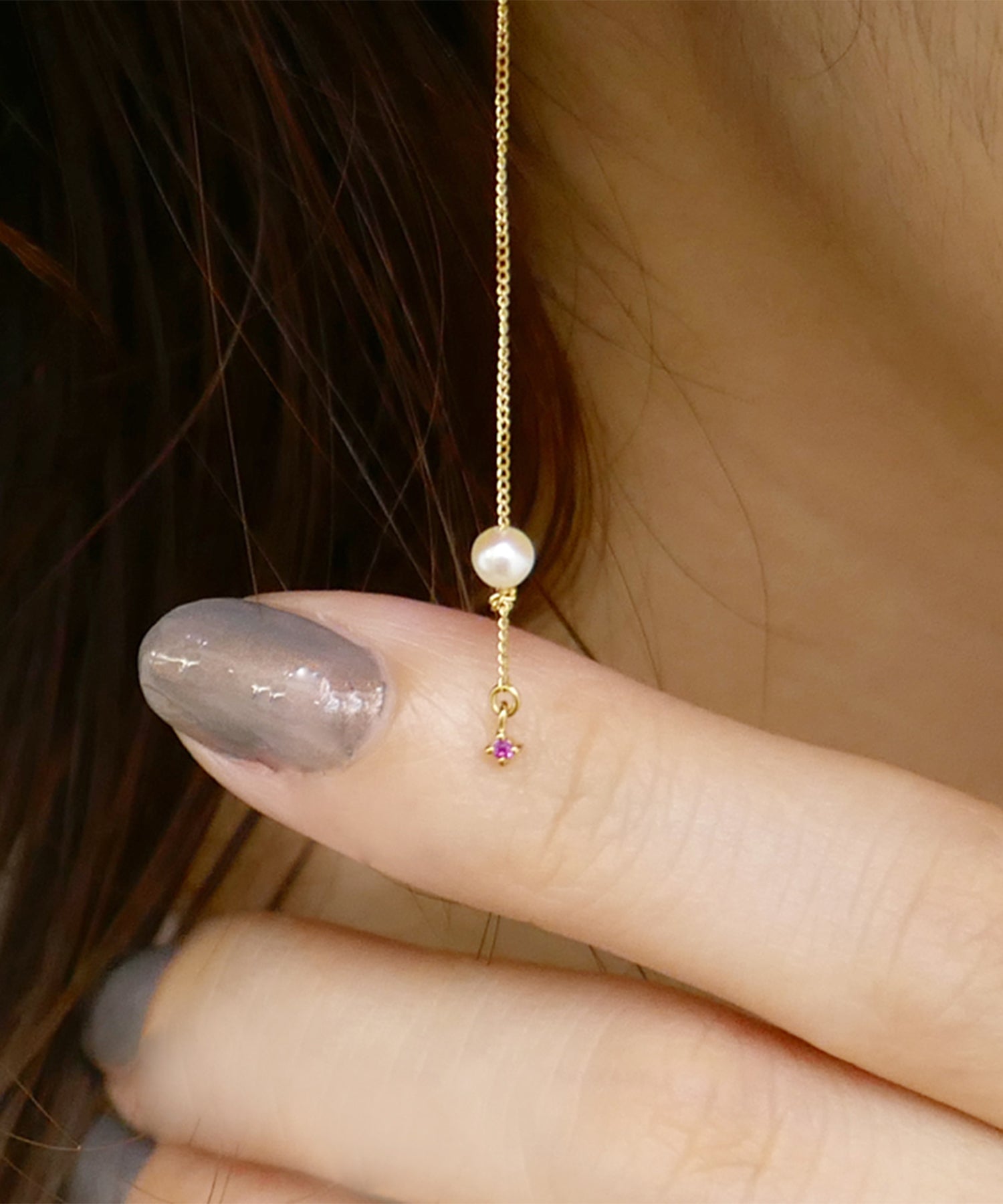 華奢なチェーンの先にアコヤパールと小さなルビー。