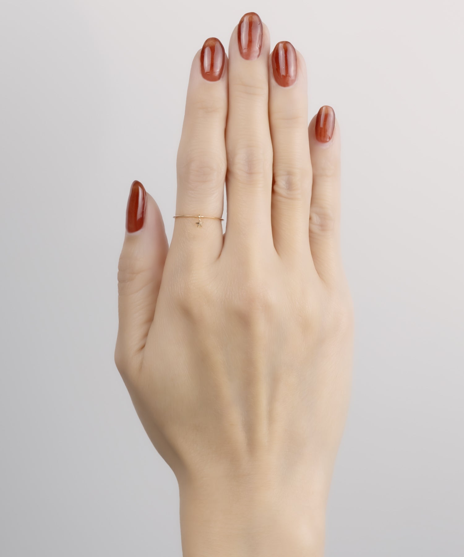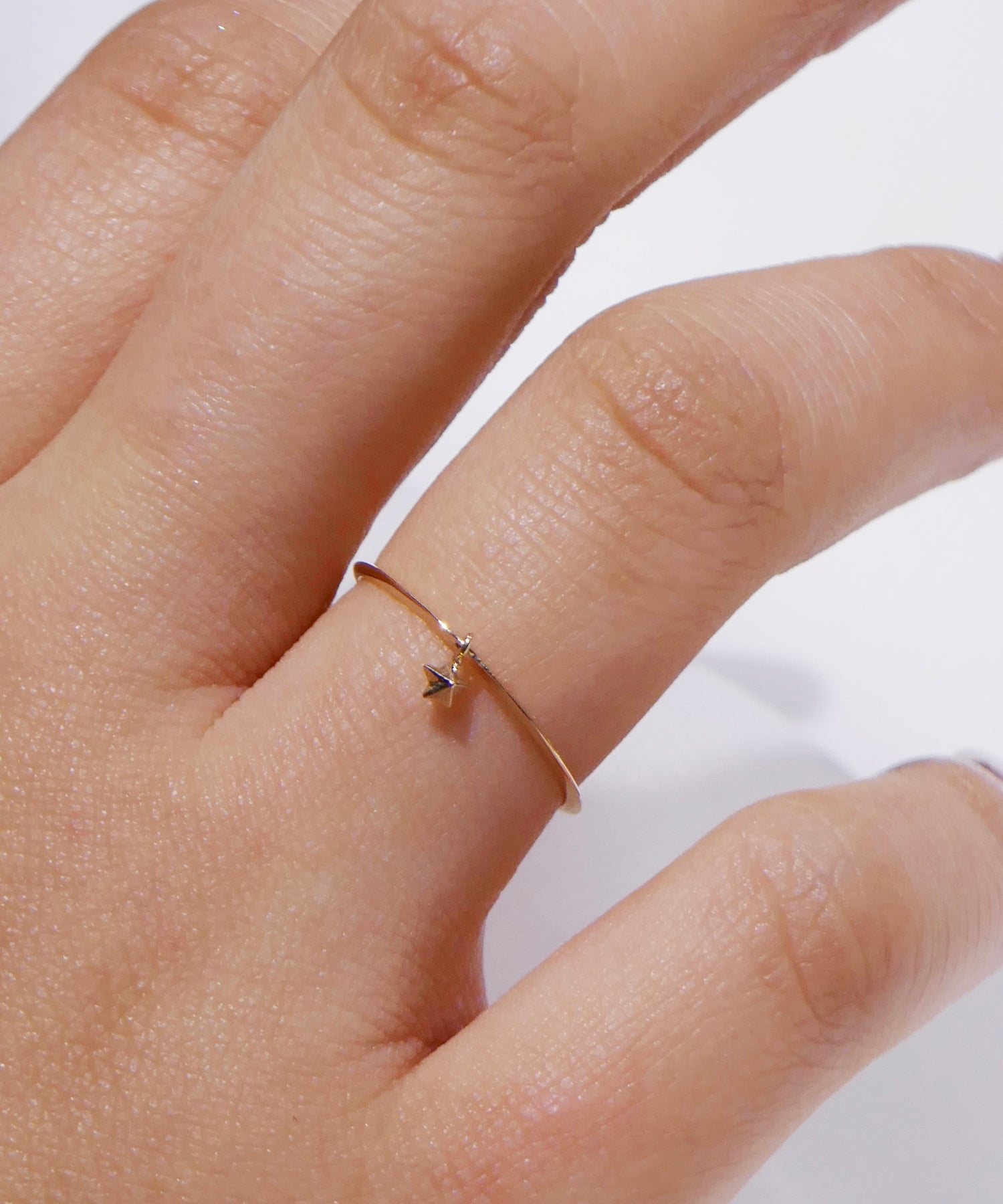 繊細なアームに、小さなスターモチーフをあしらったK9ゴールドのリング。