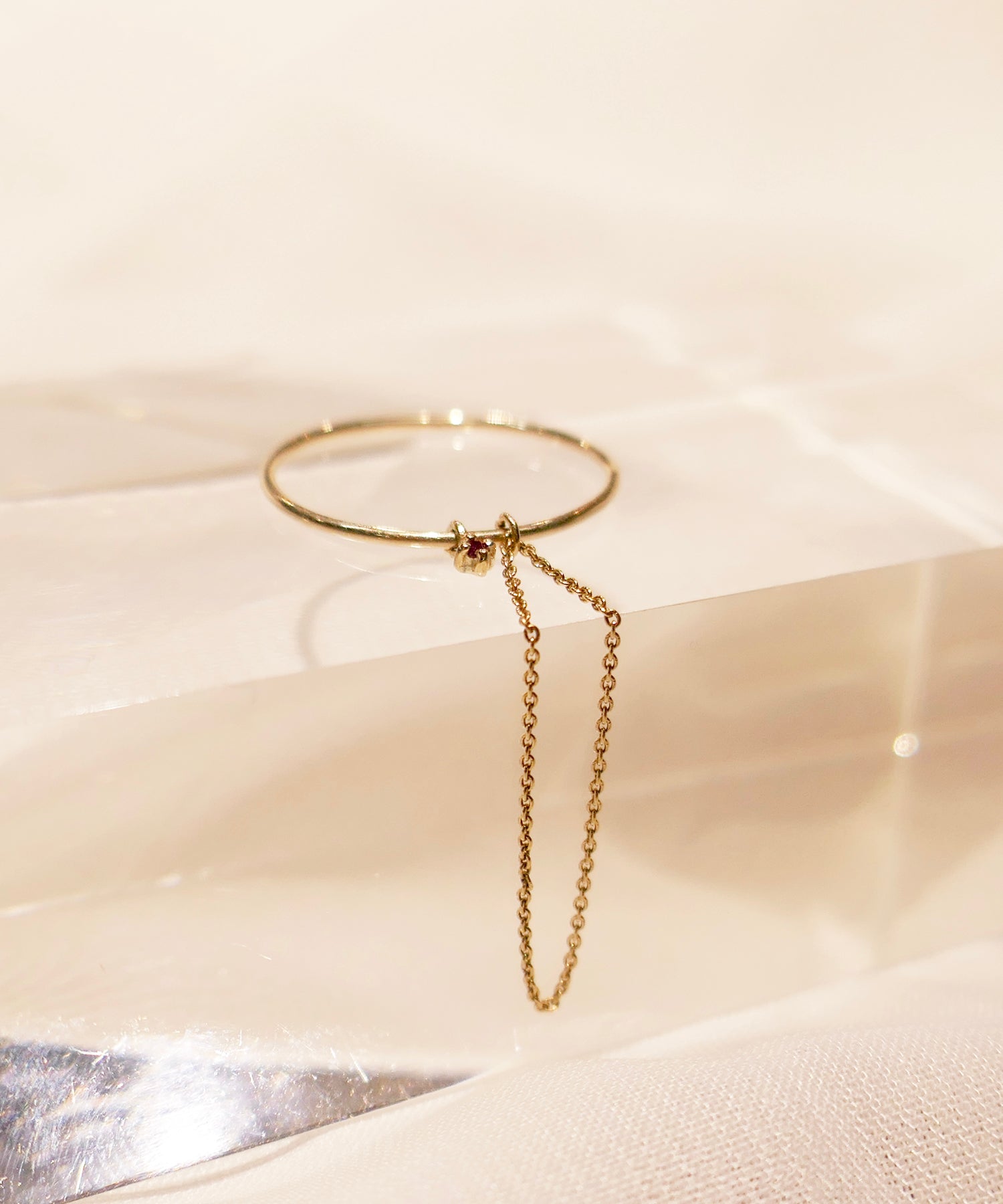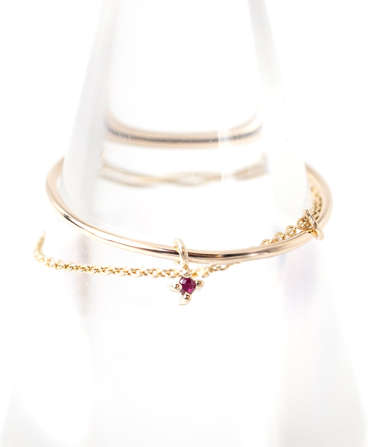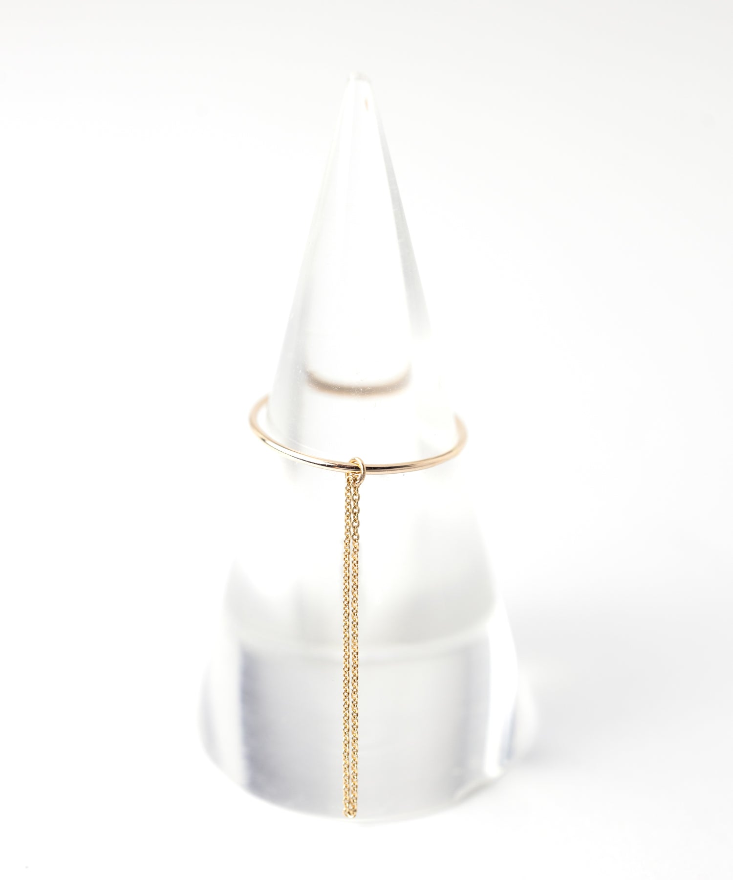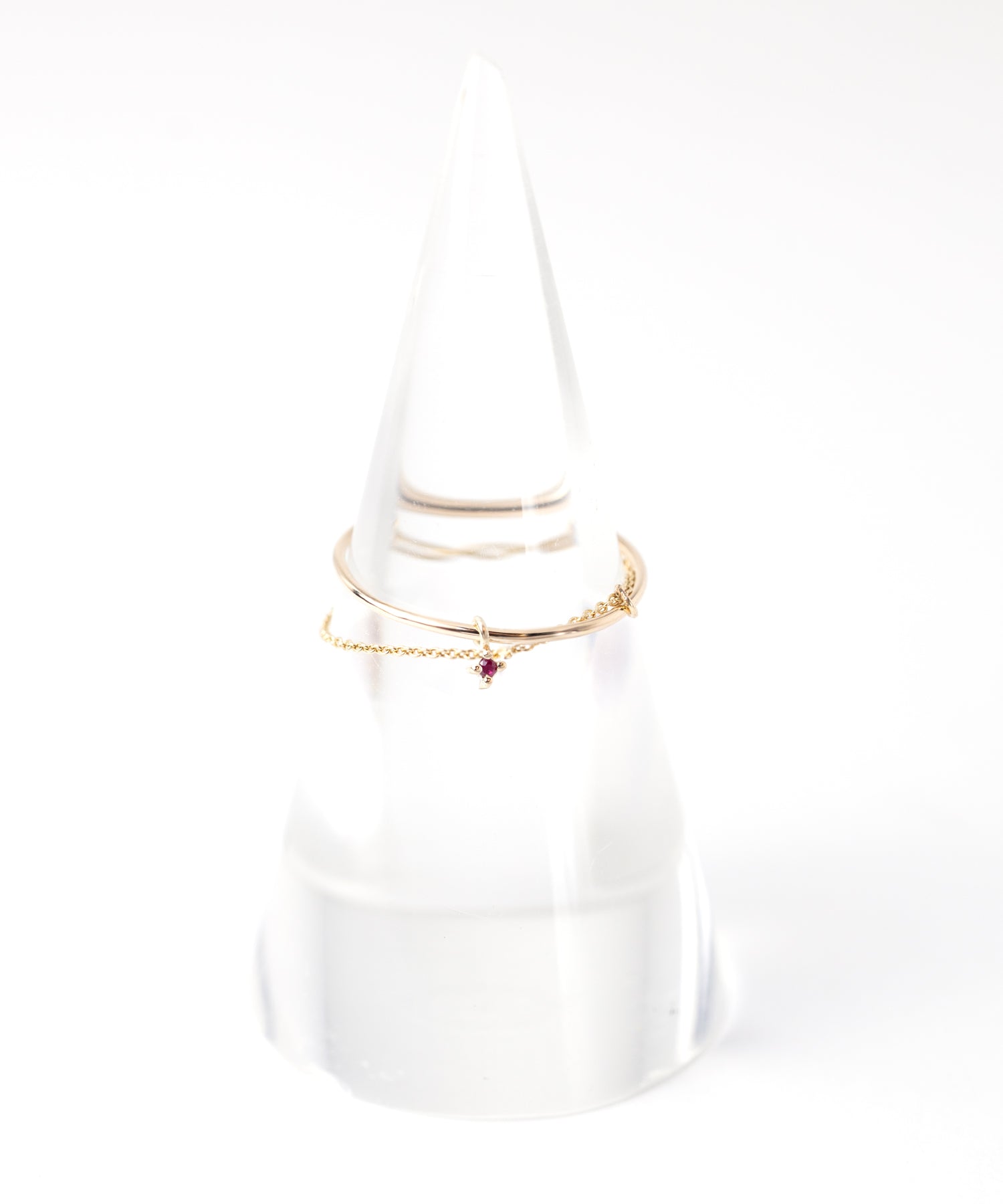 繊細に輝くゴールドチェーンが重なった2連のリング。