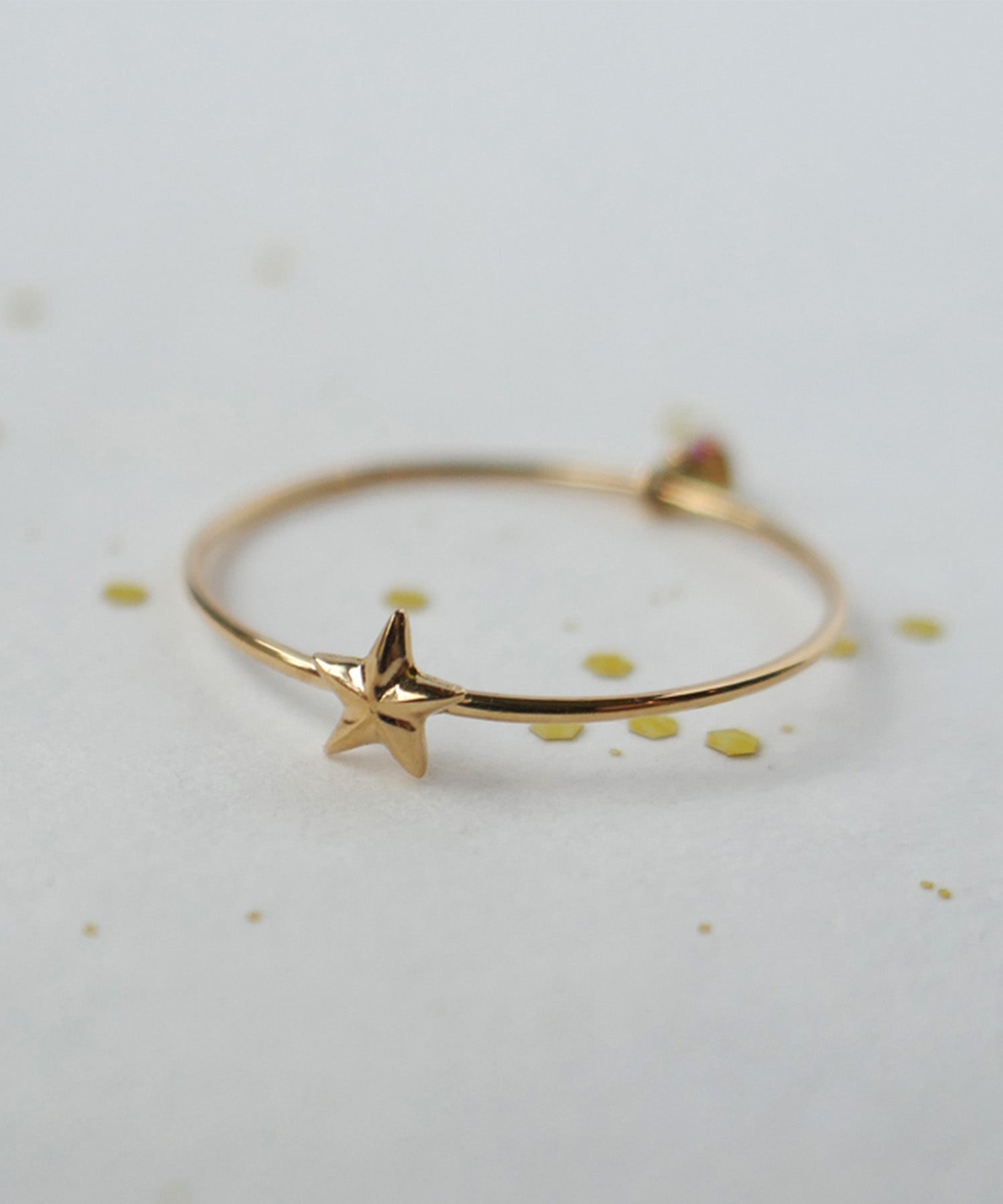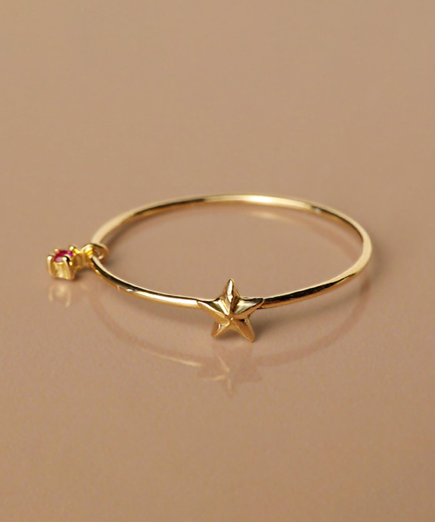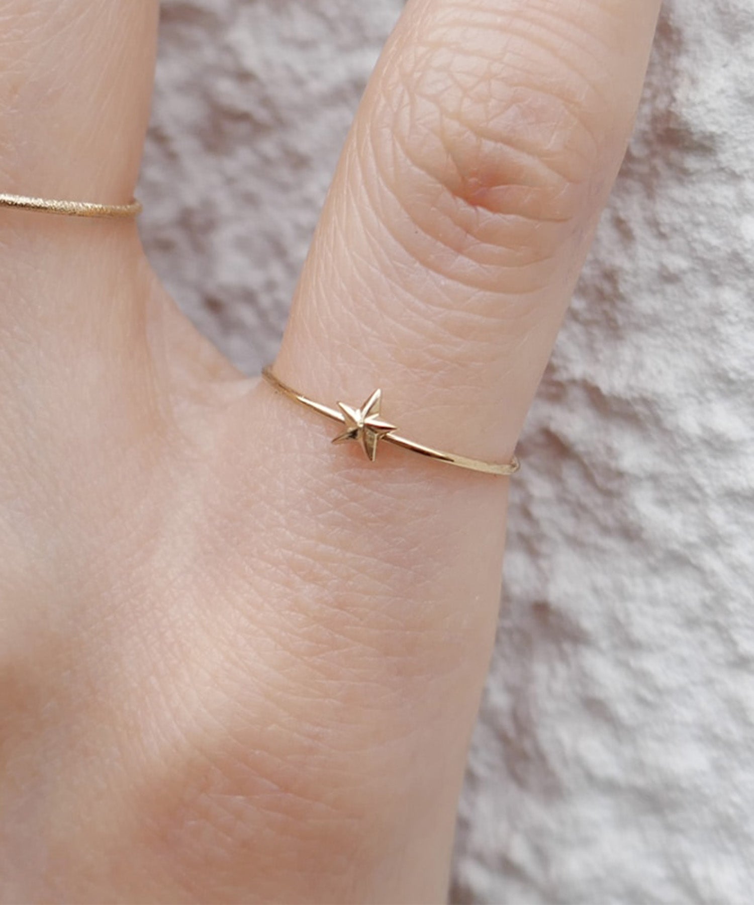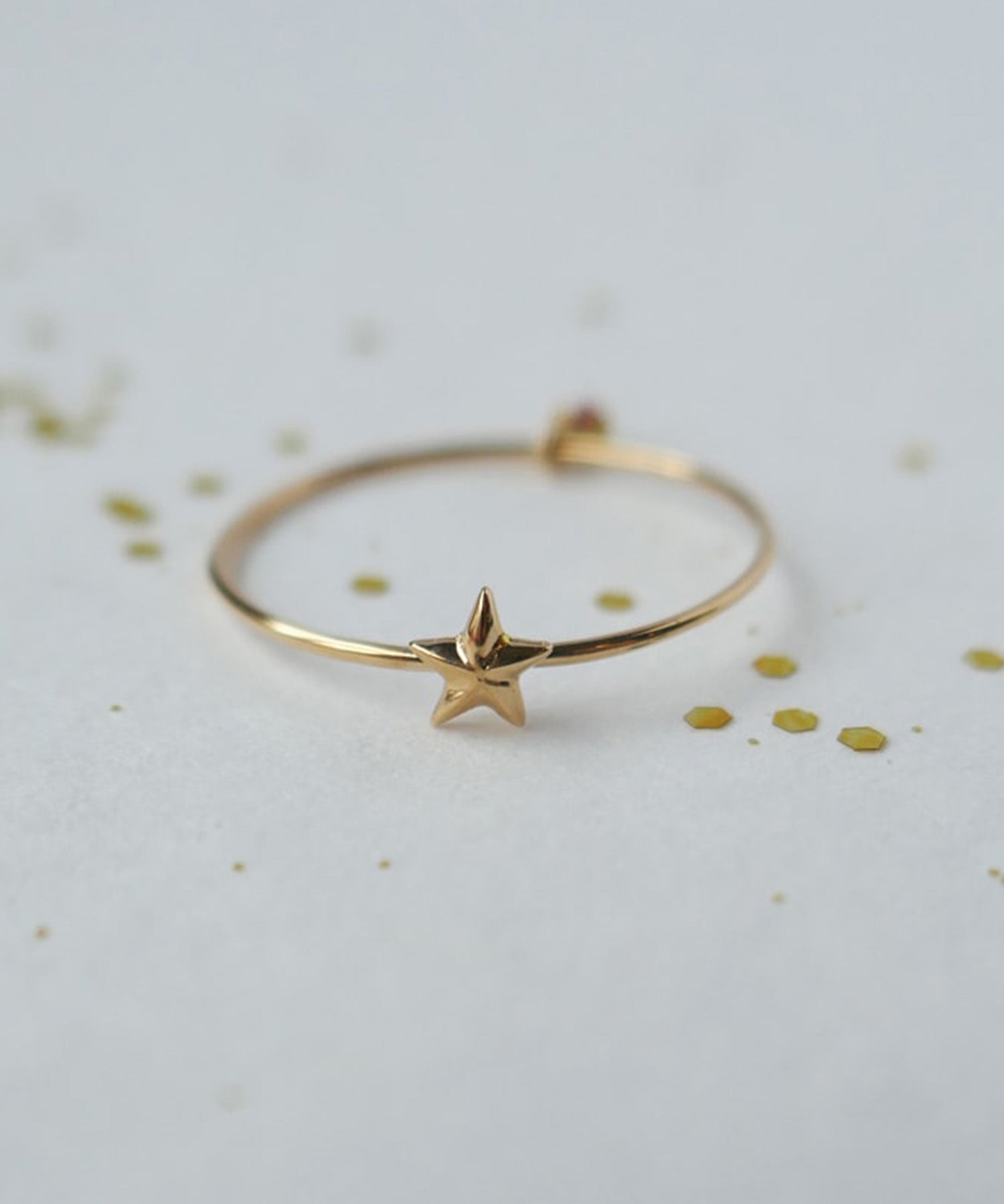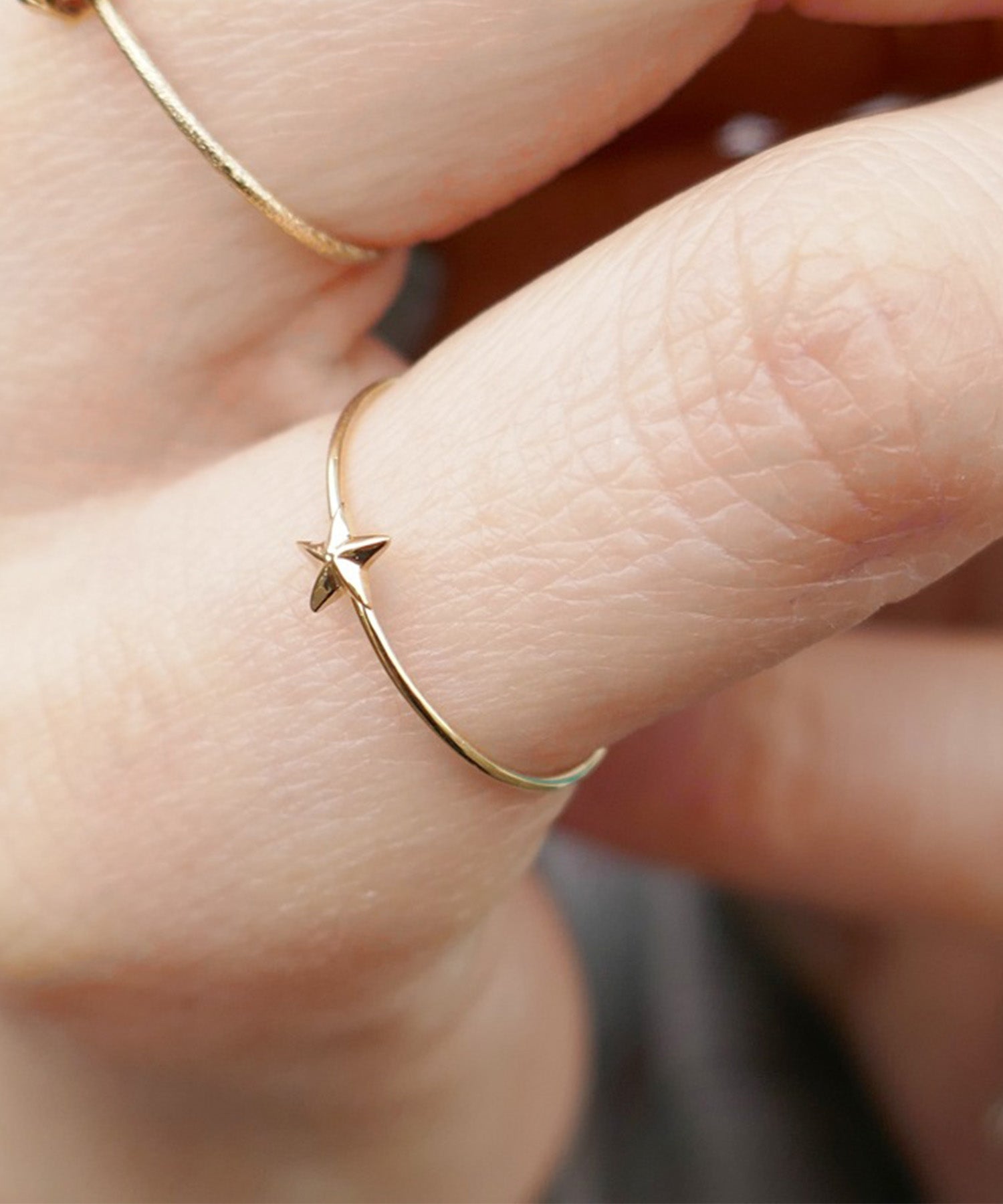 ぷっくりとした星がかわいらしいピンキーリング。小指にひっそりと輝いてワンポイントにおすすめのデザイン。