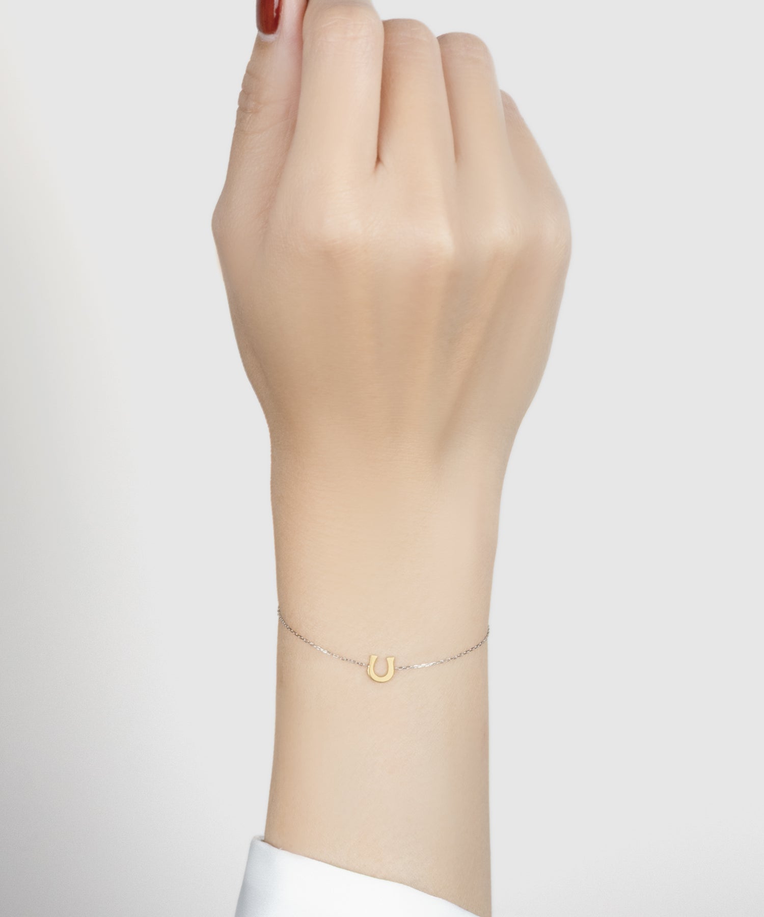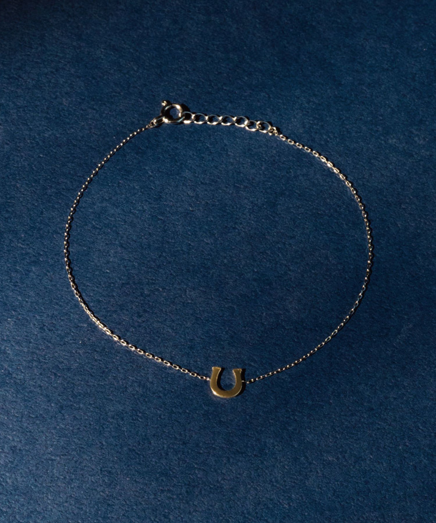 幸運を受け止めるとされる馬蹄モチーフのブレスレット。