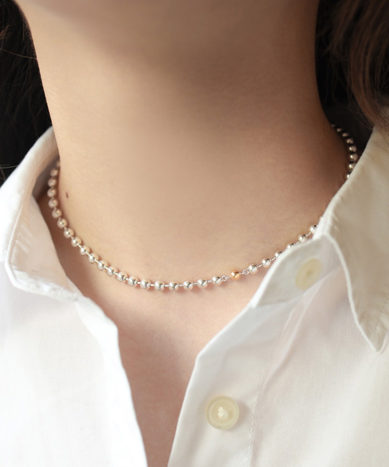 小さすぎず、大きすぎないさらっとつけられるボールチェーンのネックレス。