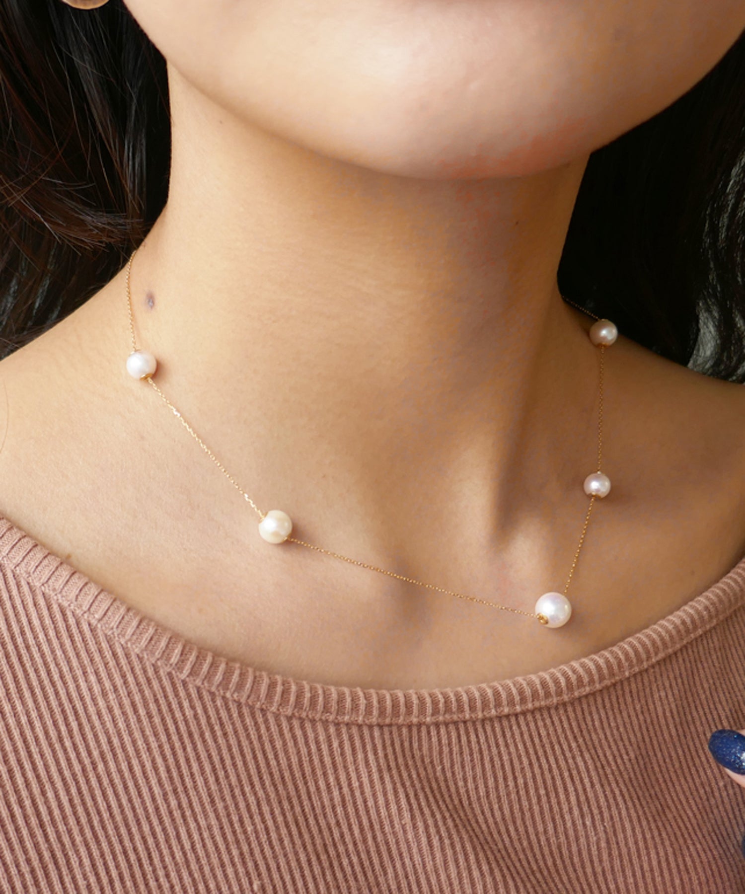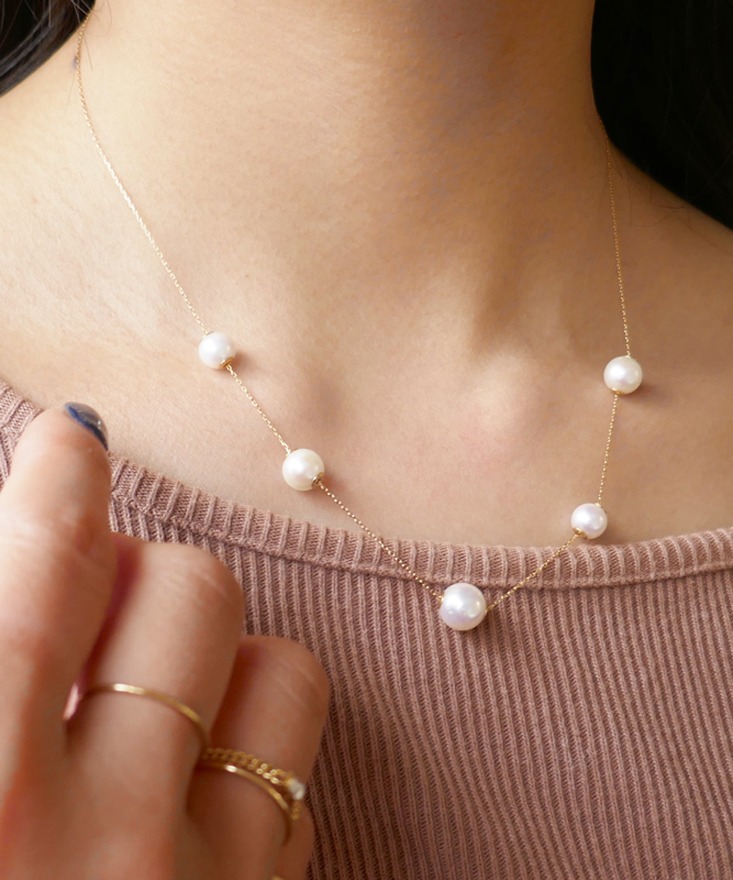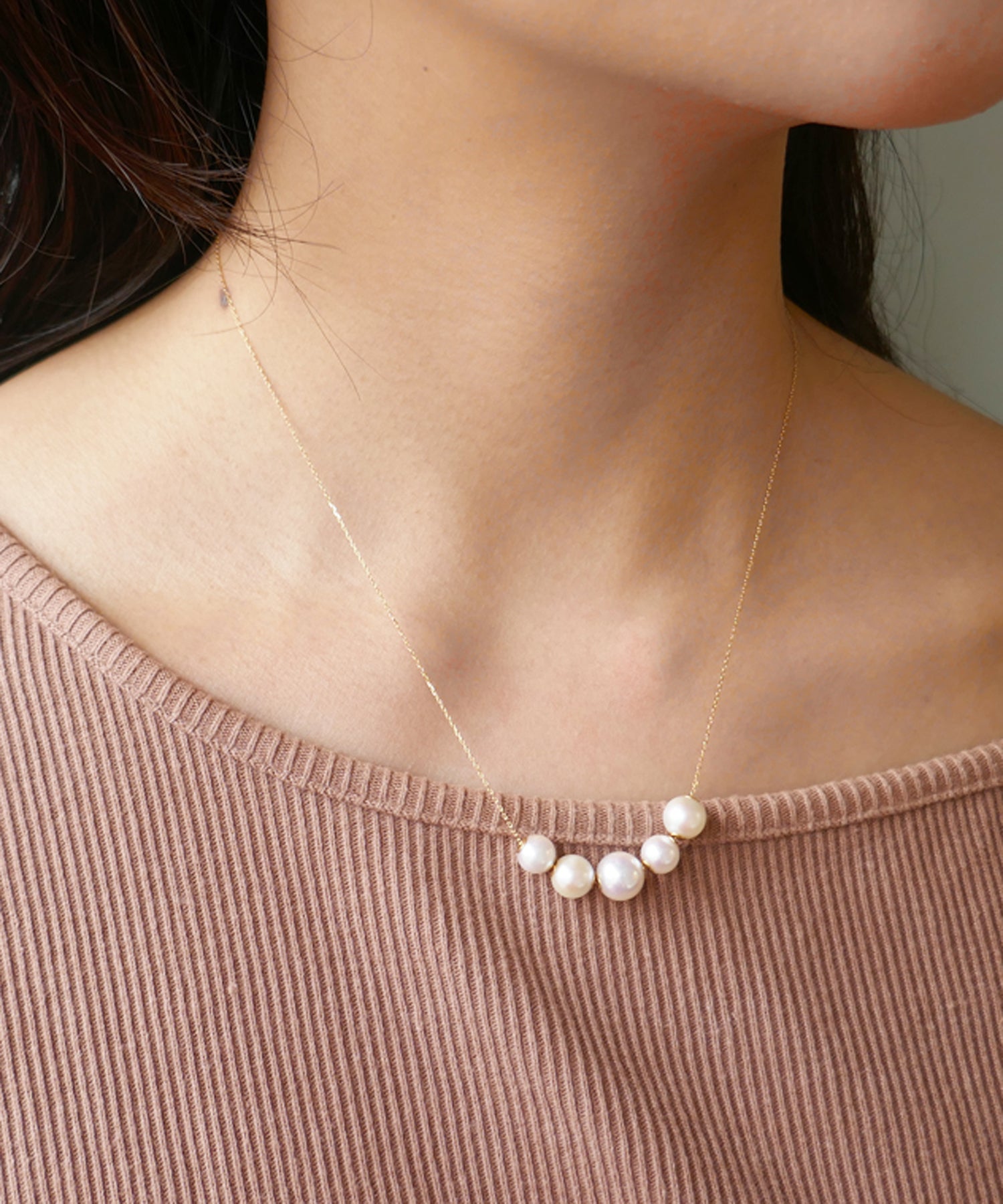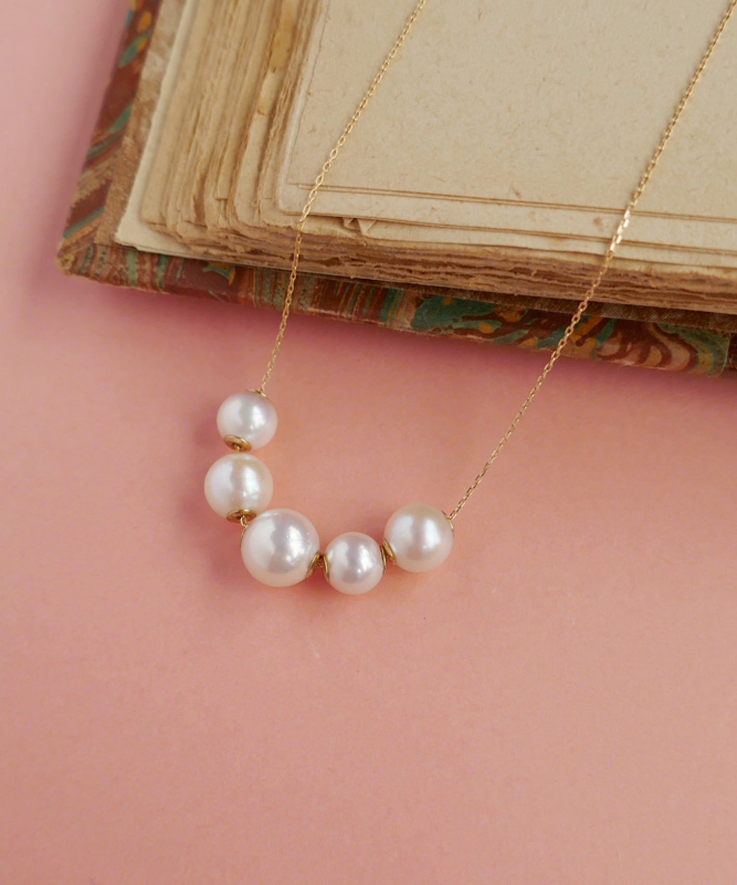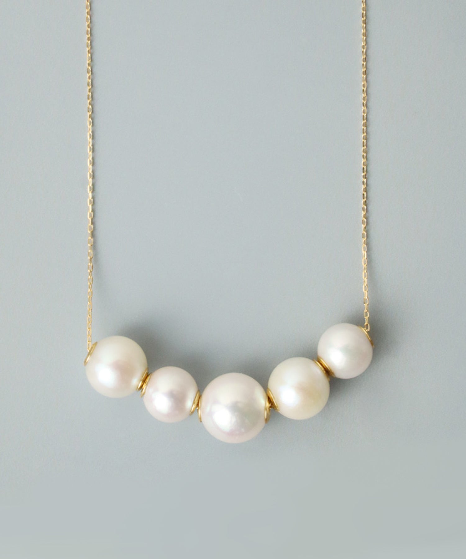 華奢なチェーンに程よい大きさのアコヤパールを5石並べ、上品に仕上げました。