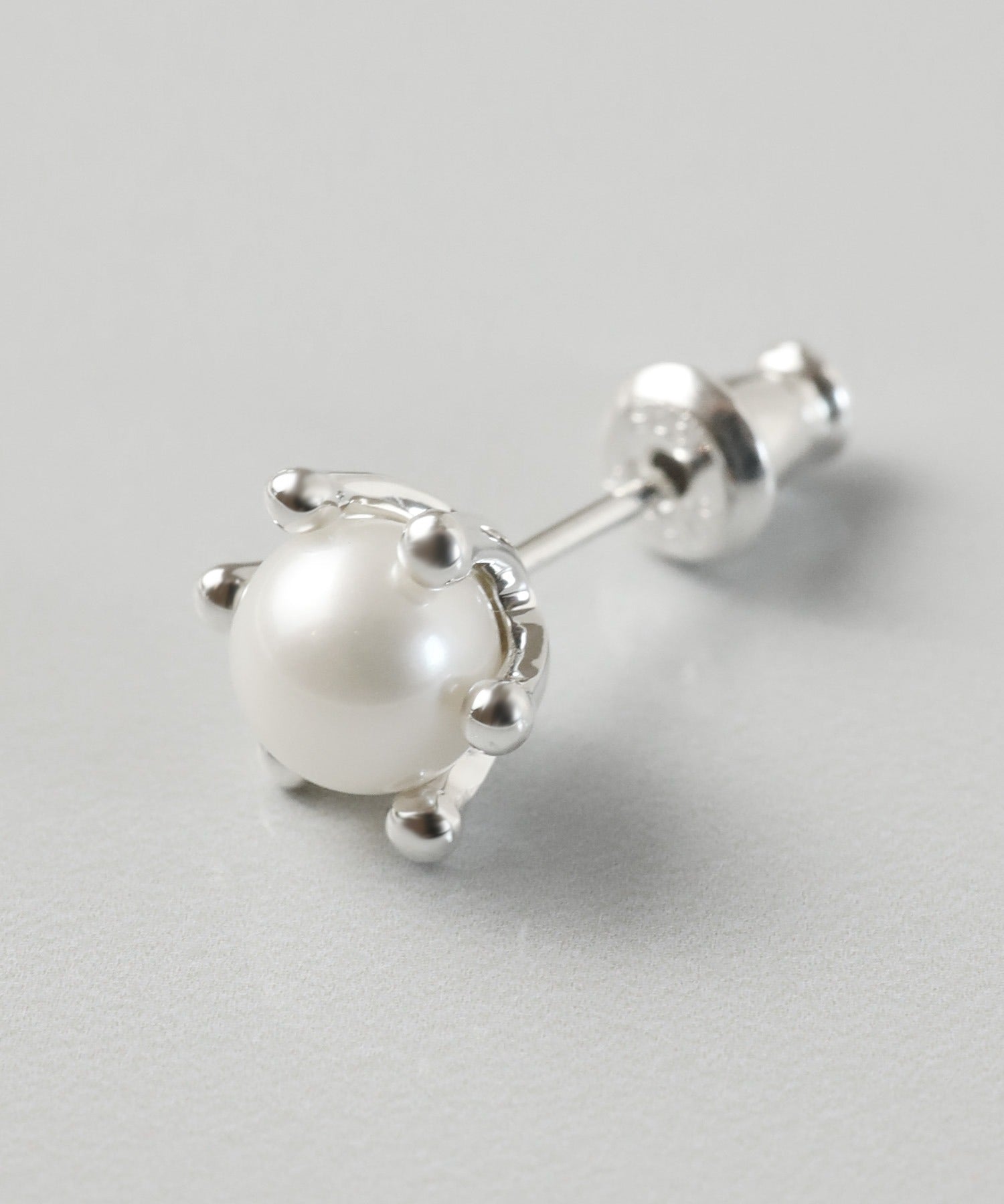 ミルククラウンの石座が印象的でロマンティックなパールのピアス。