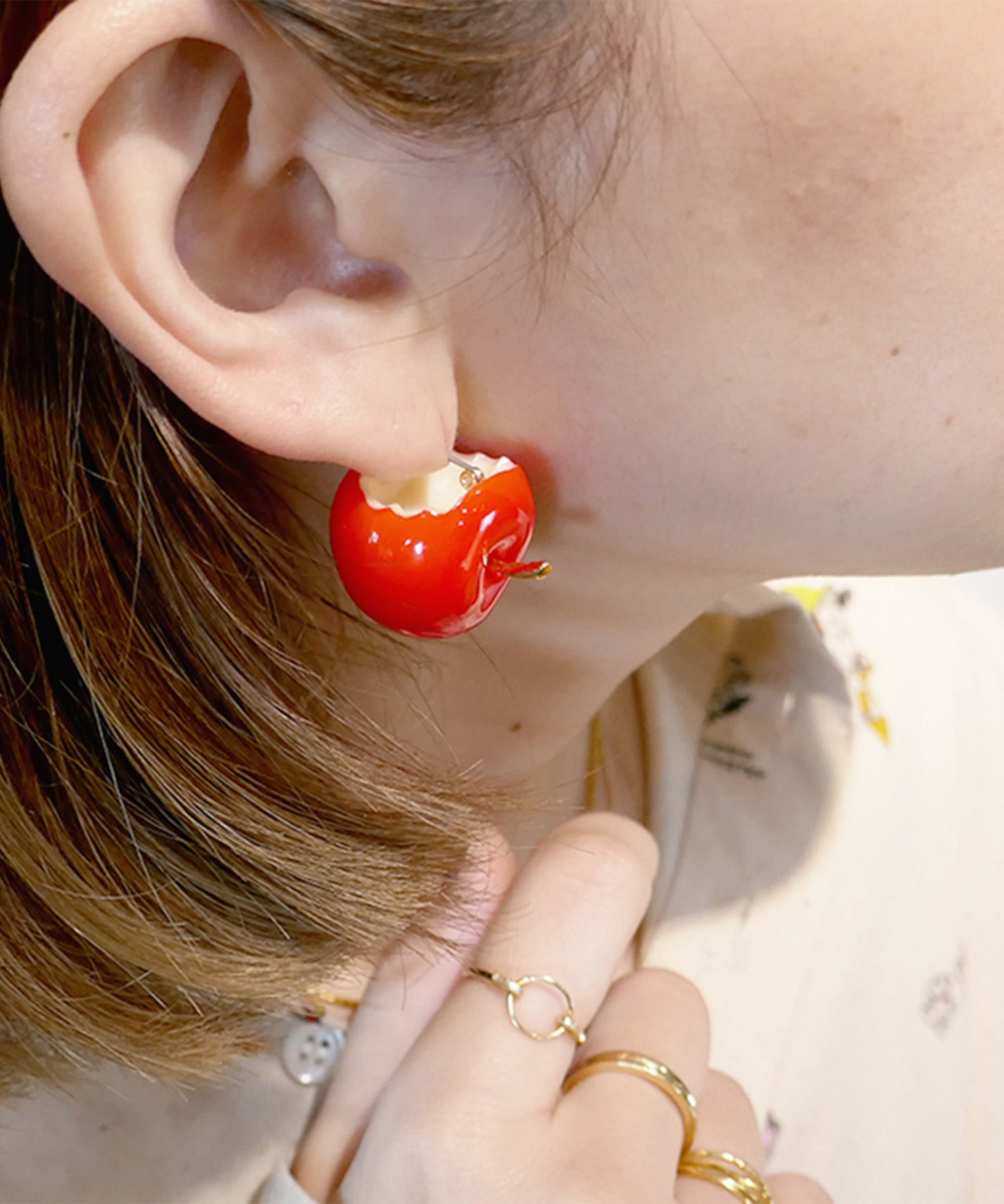 リンゴをモチーフにしたピアス。思わず食べたくなってしまうほど