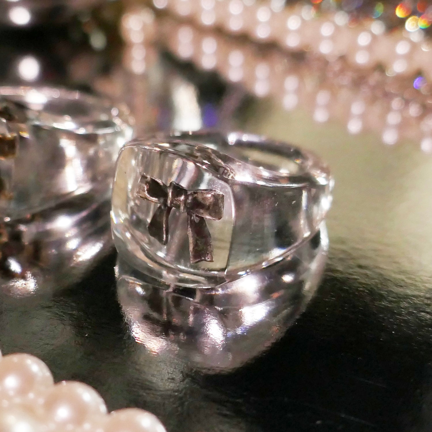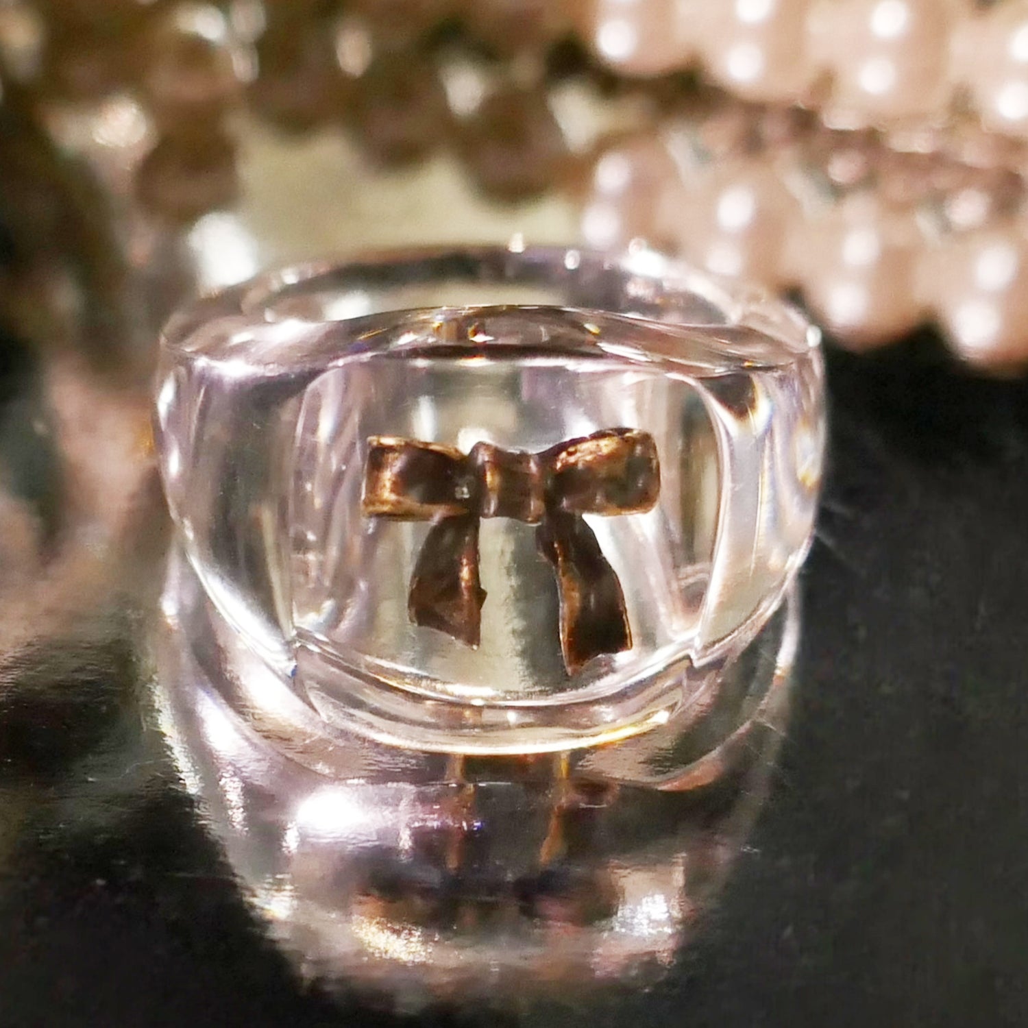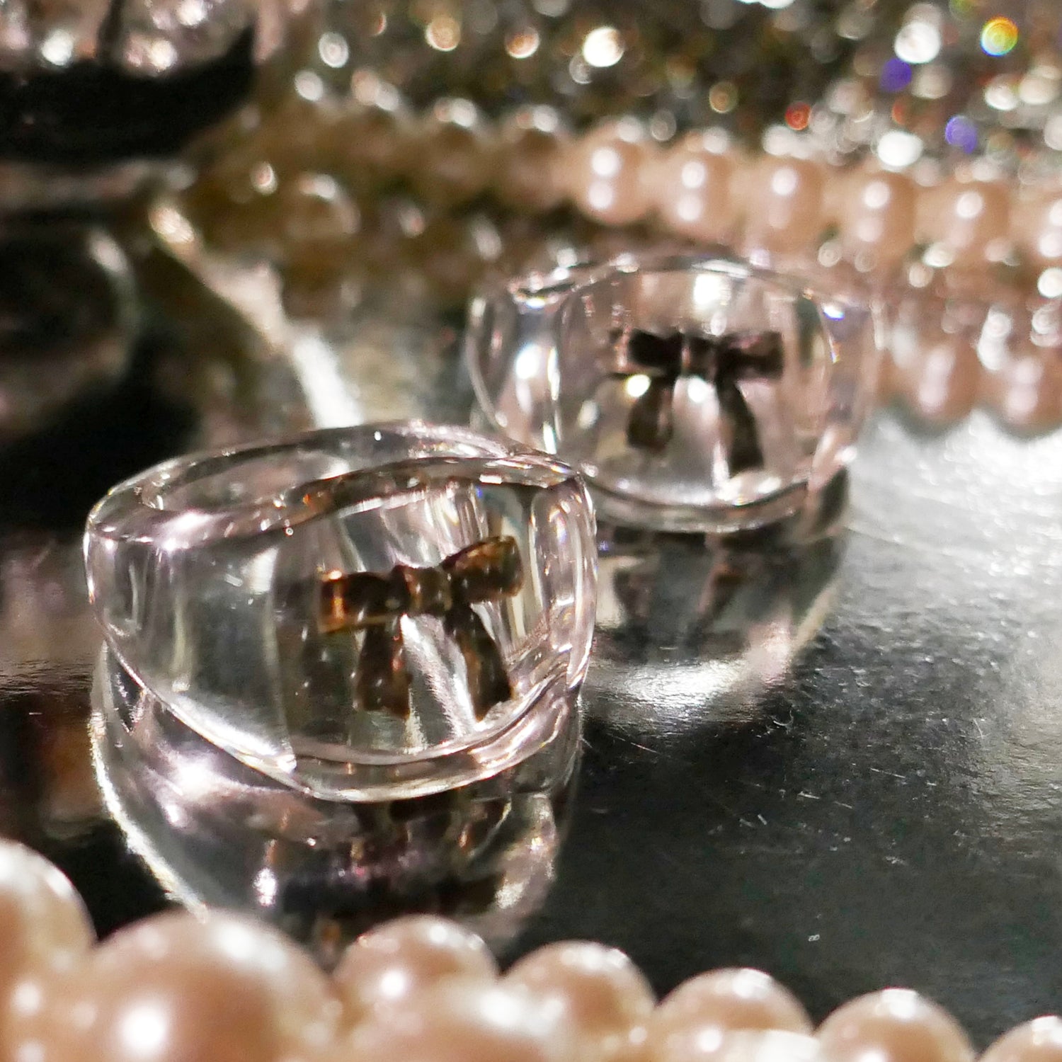 ファッショントレンドでもまだまだ人気のリボンモチーフは、e.m.でも数多くのデザインをお取り扱いしております。