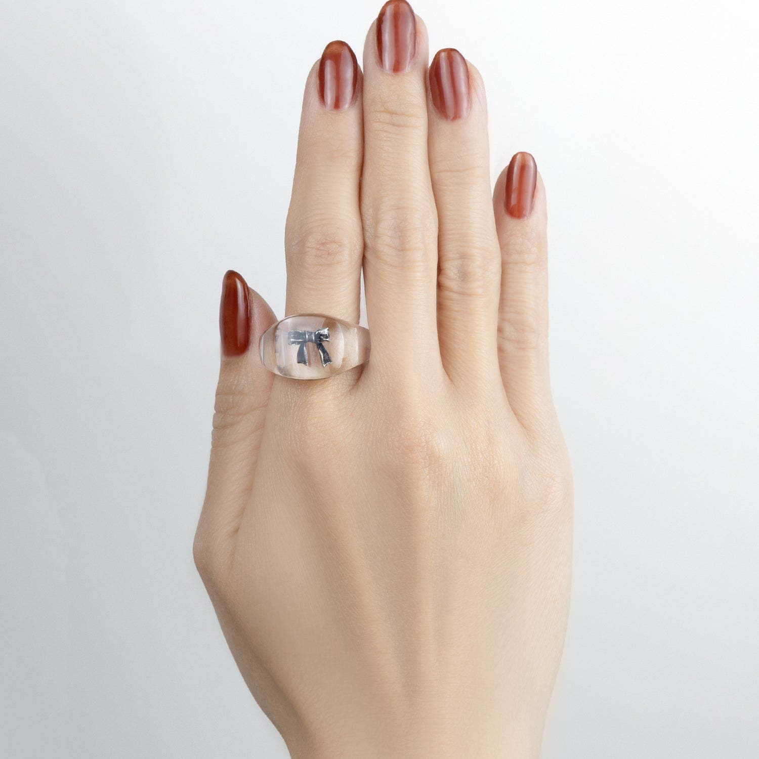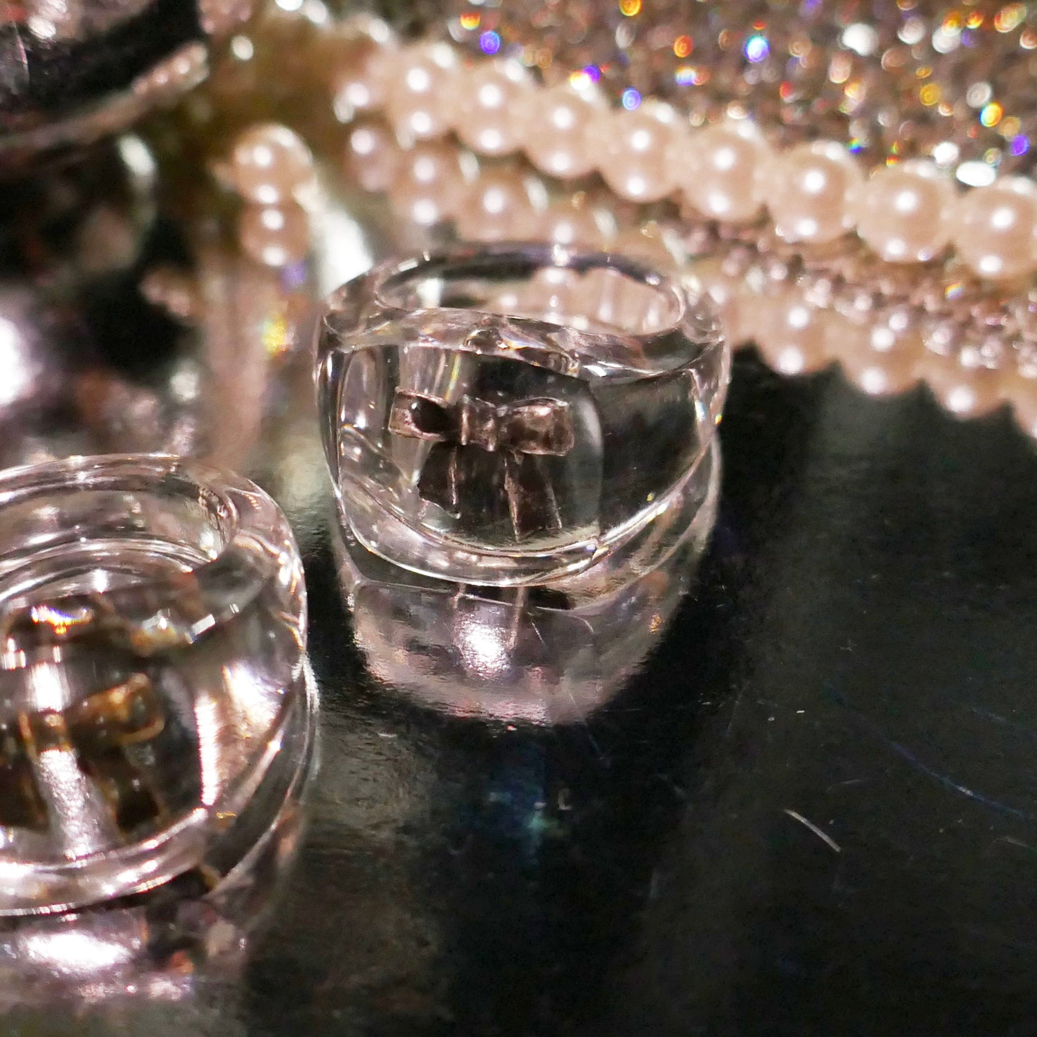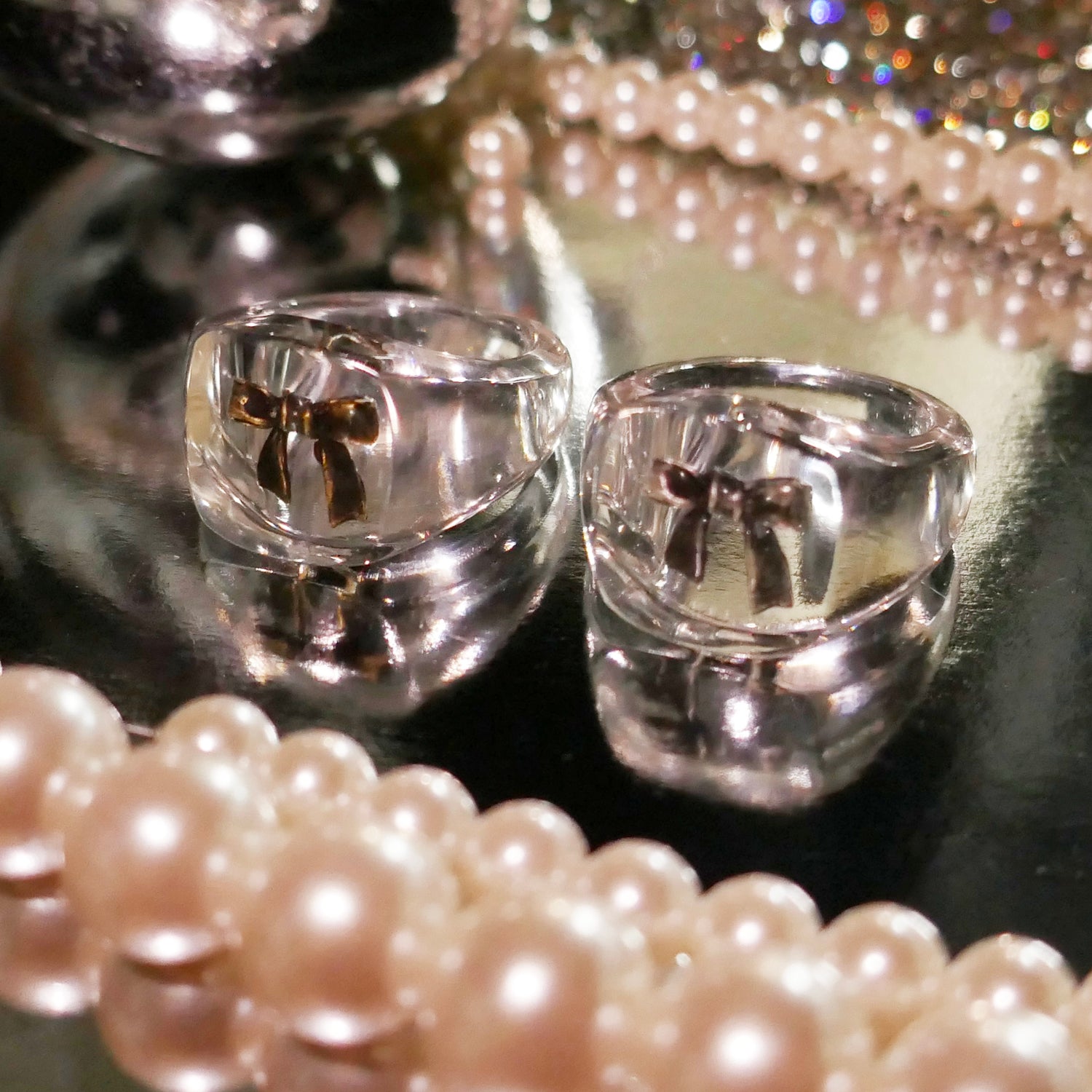 ファッショントレンドでもまだまだ人気のリボンモチーフは、e.m.でも数多くのデザインをお取り扱いしております。