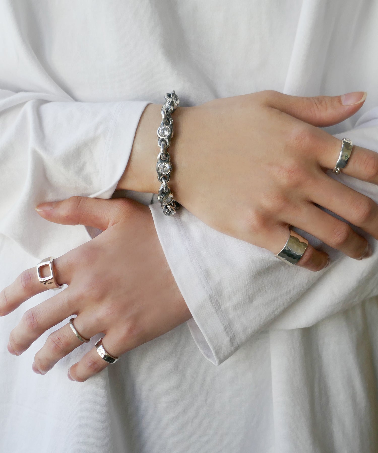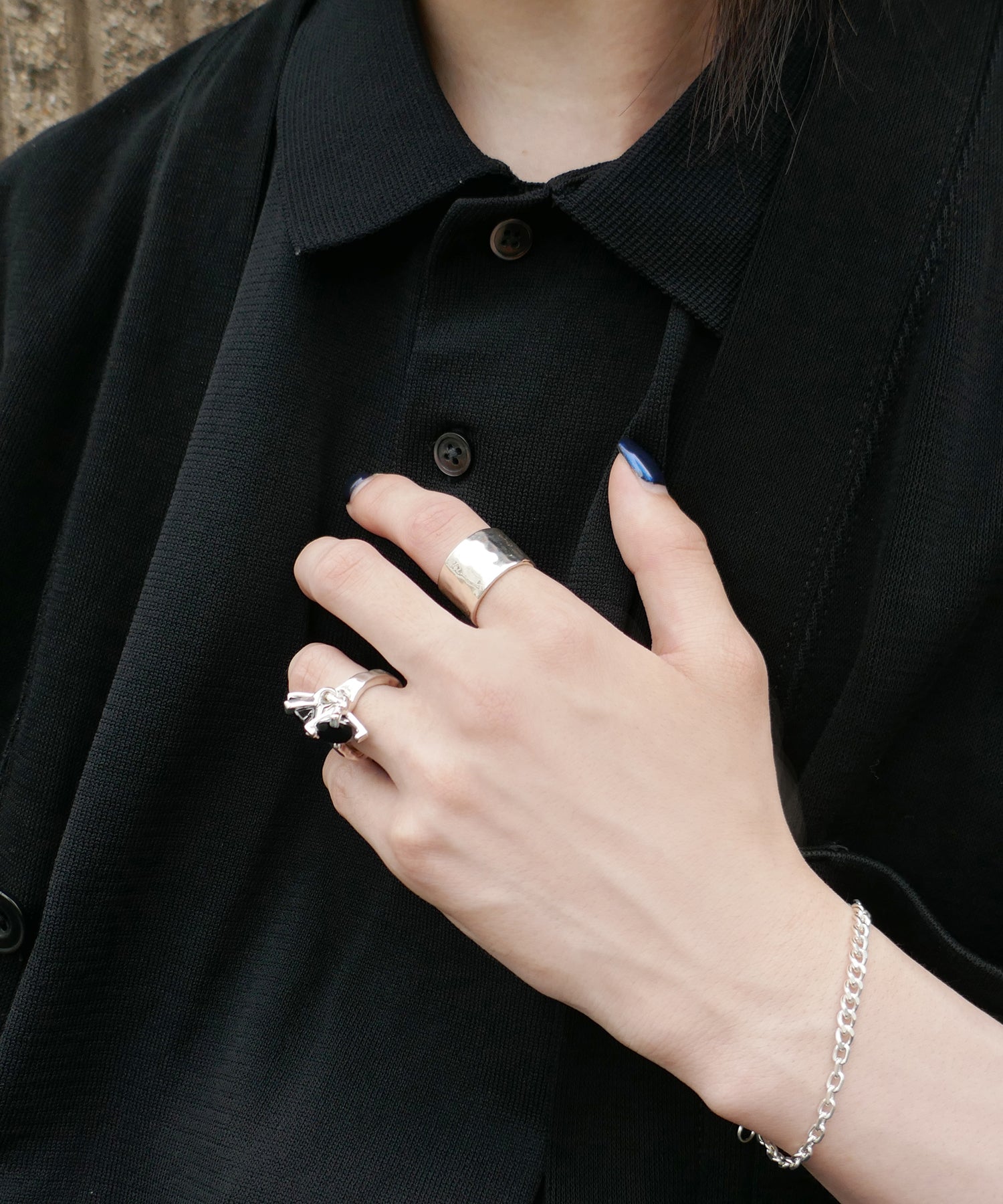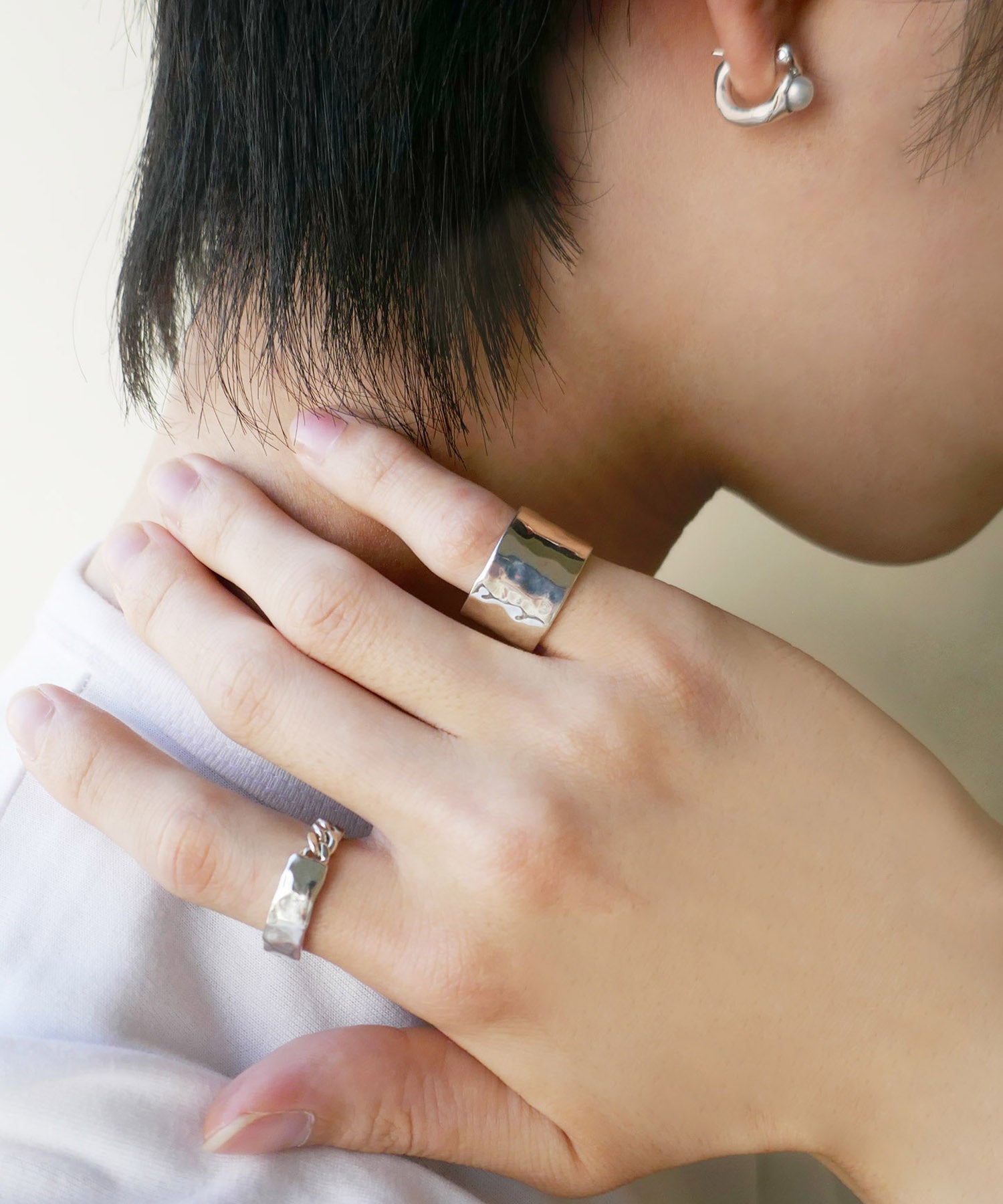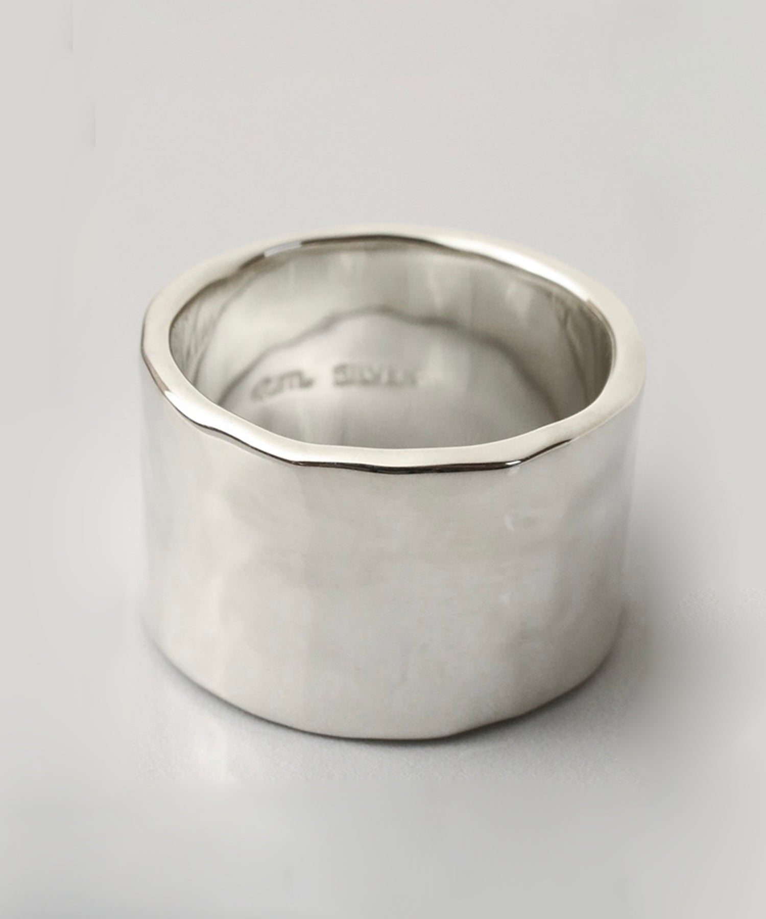 存在感を感じる幅広リング。手作り感のあるテクスチャーで