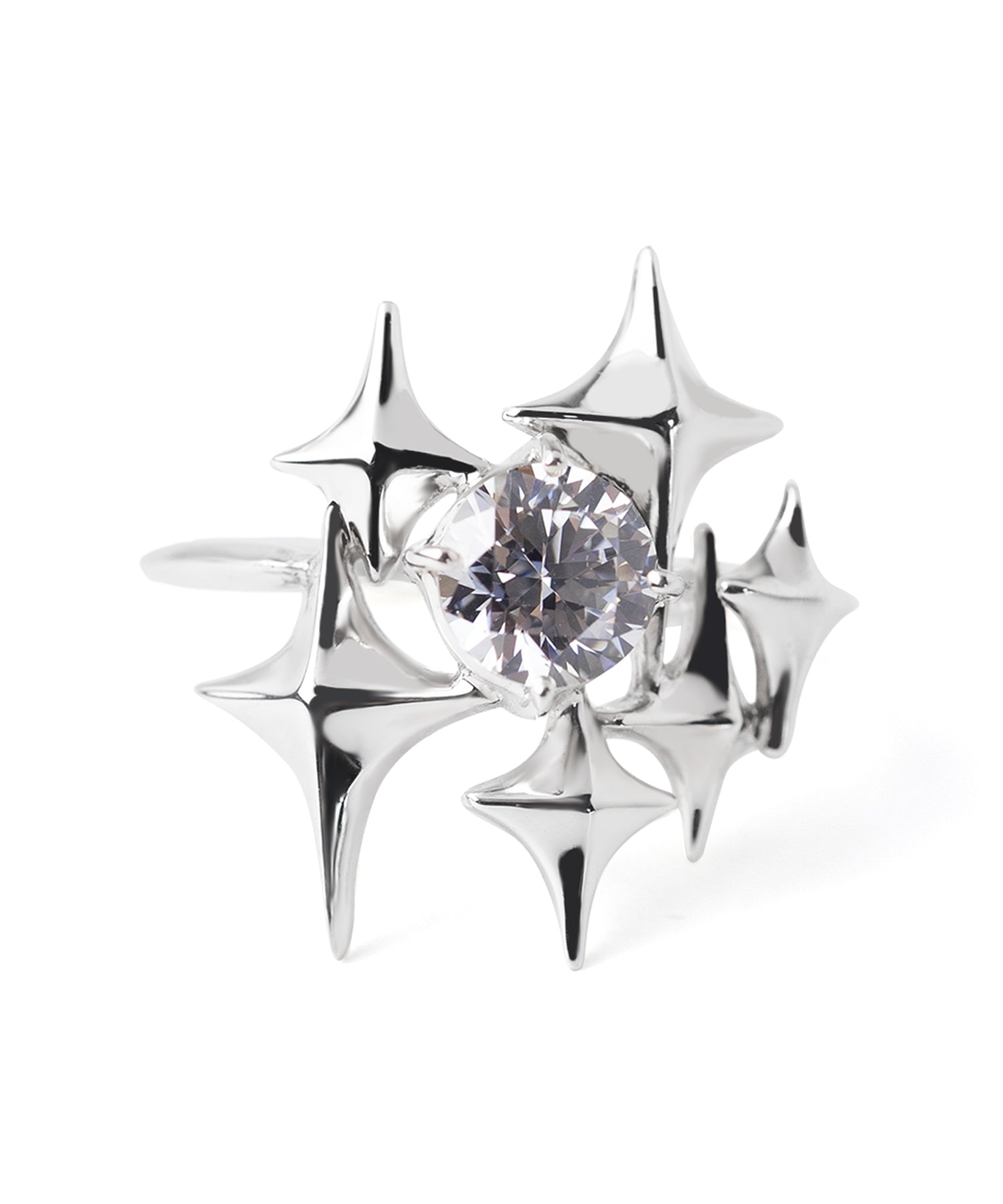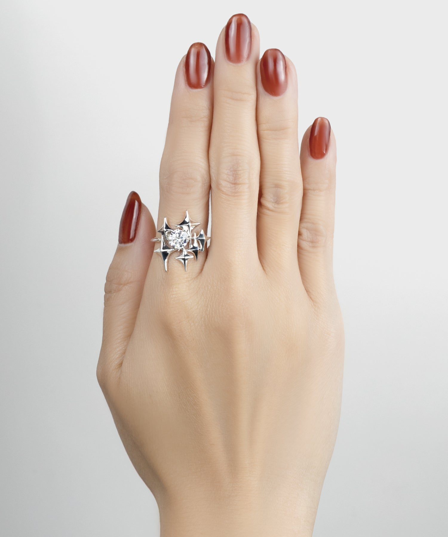 センターのキュービックジルコニアの煌めきを大胆にモチーフで表しています。