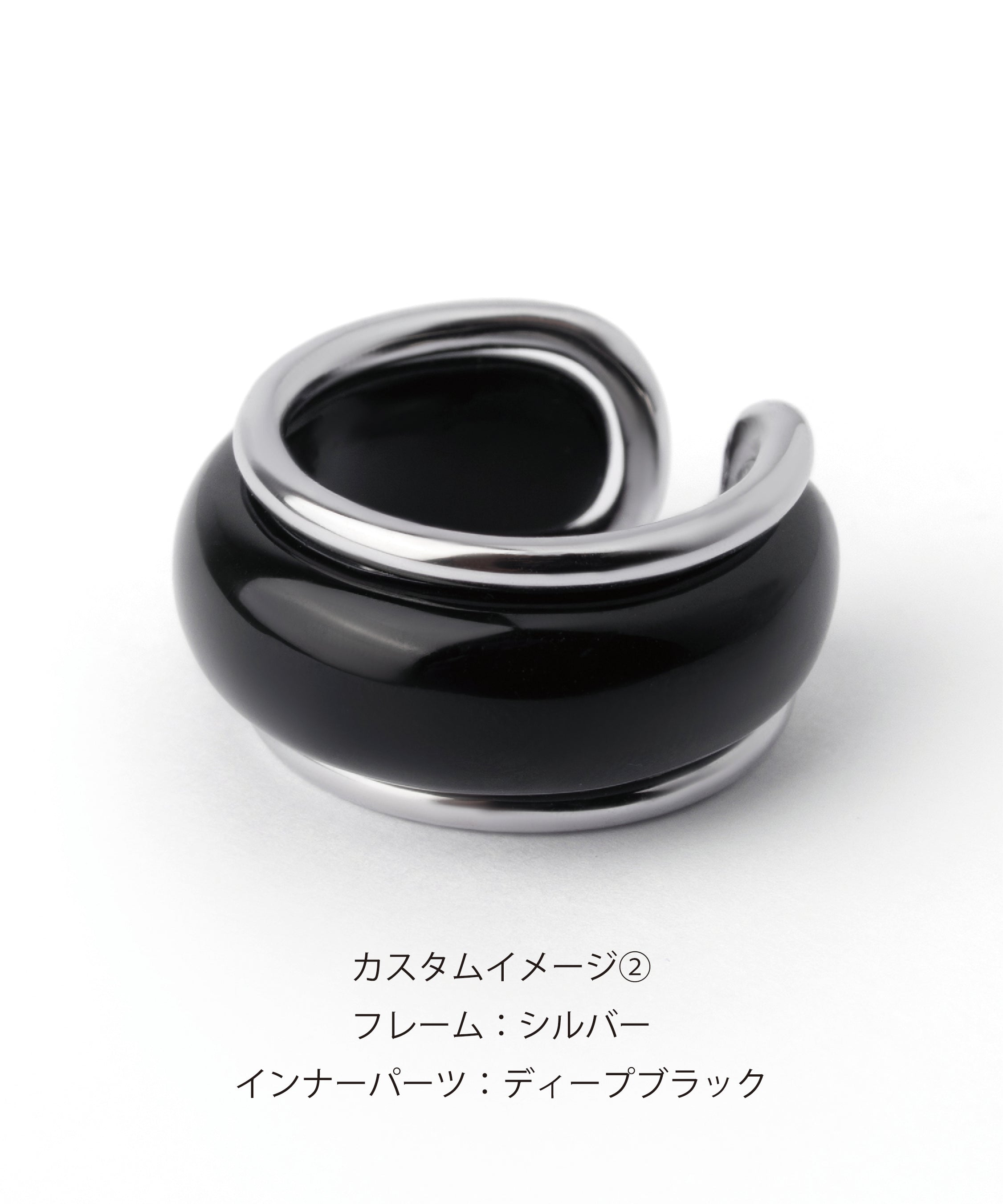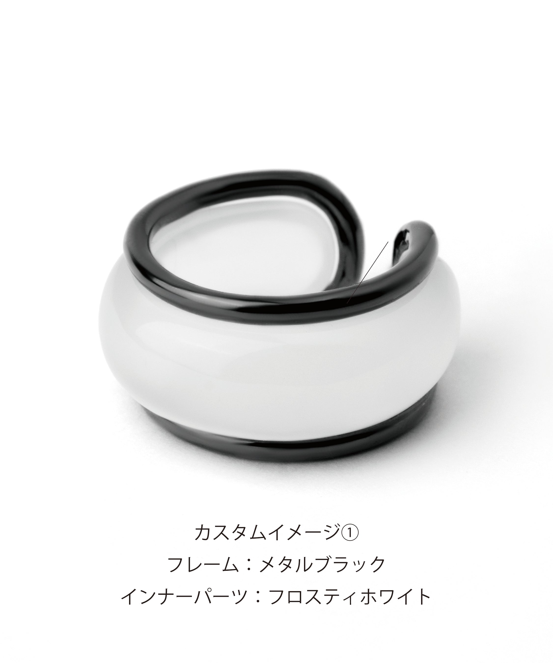 2連風のフレームリングの内側に、樹脂で仕立てたインナーパーツ(リング)を組み合わせたデザイン。