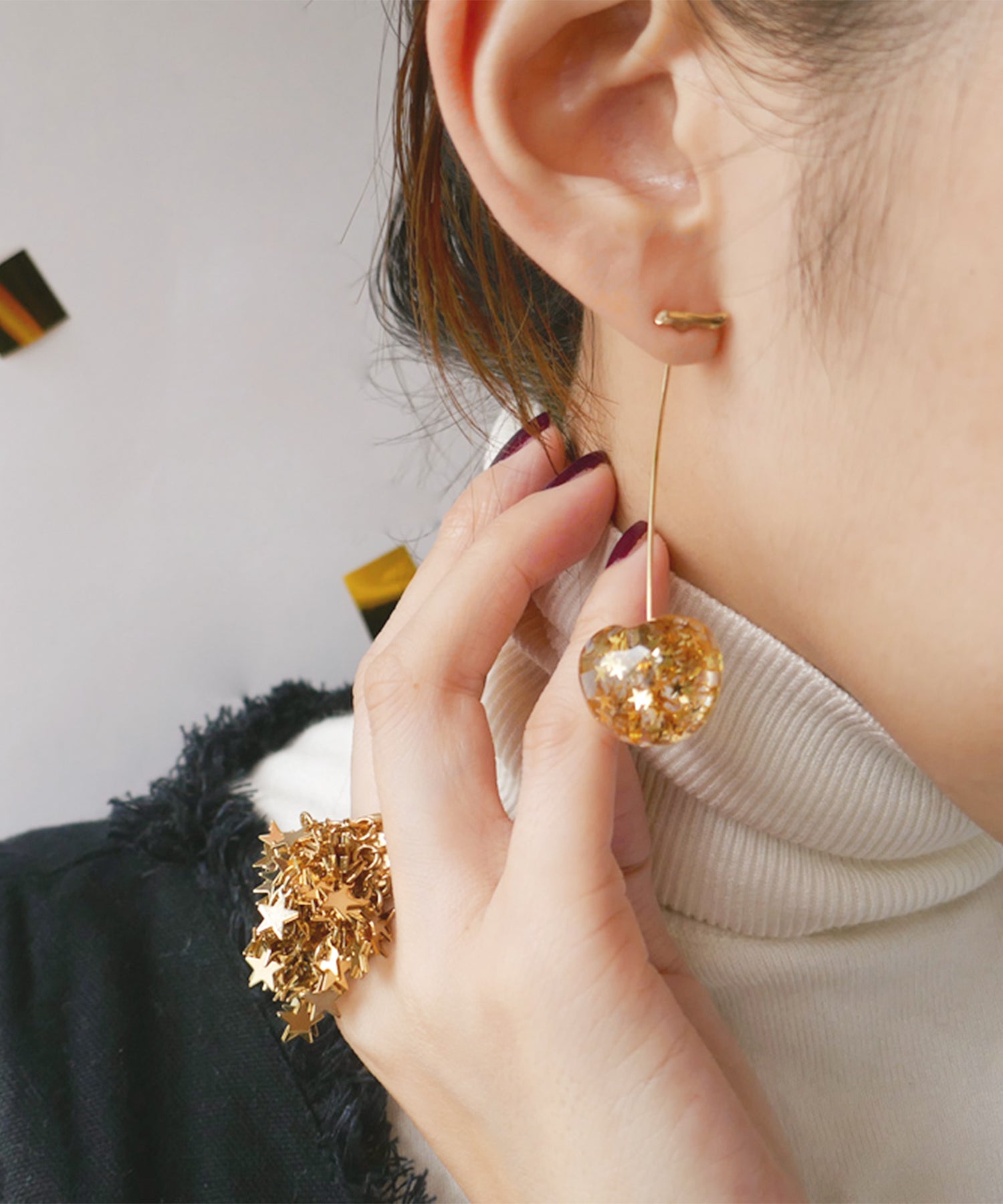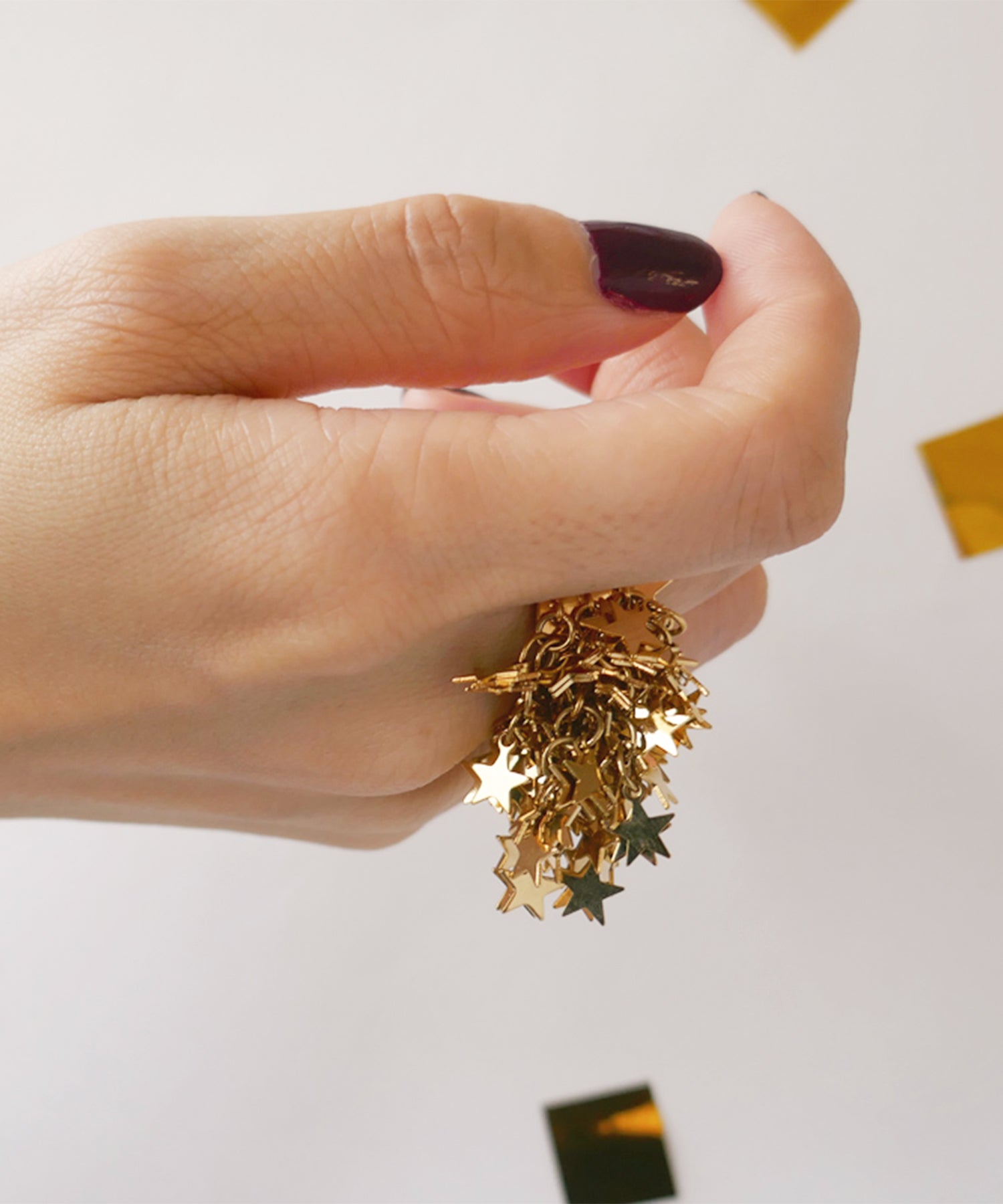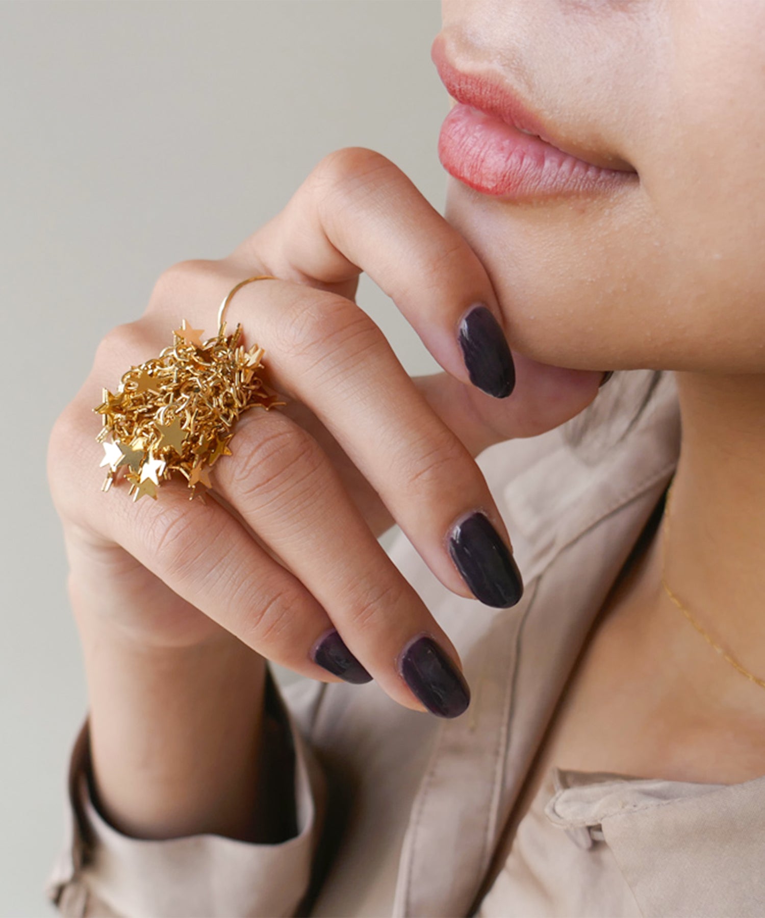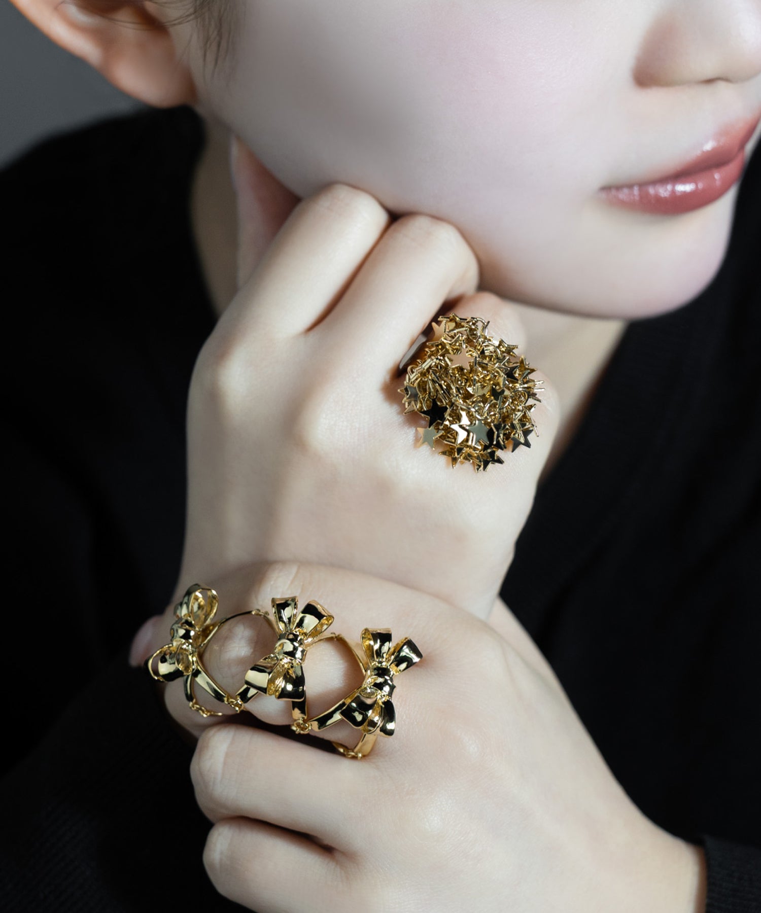 手元から星があふれ出す、主役級のリング。華やかさと肌なじみも良いゴールドカラーが