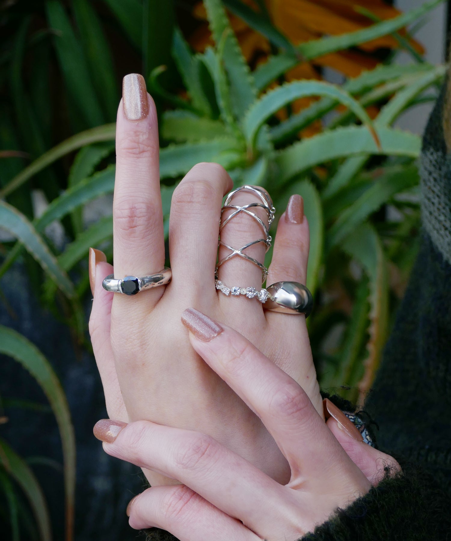 滑らかなシルエットで柔らかく上品な印象に。ボリュームのあるピンキーリングは