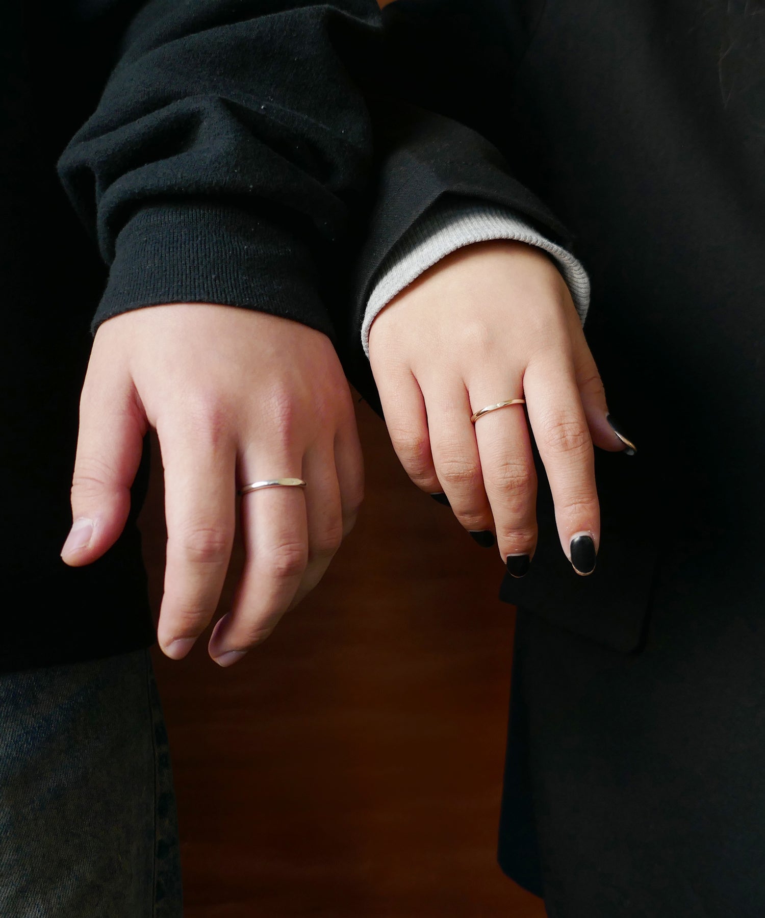 ファッショナブルなデザインは薬指以外にも、人差し指や中指での ぺアコーディネートもおすすめです。