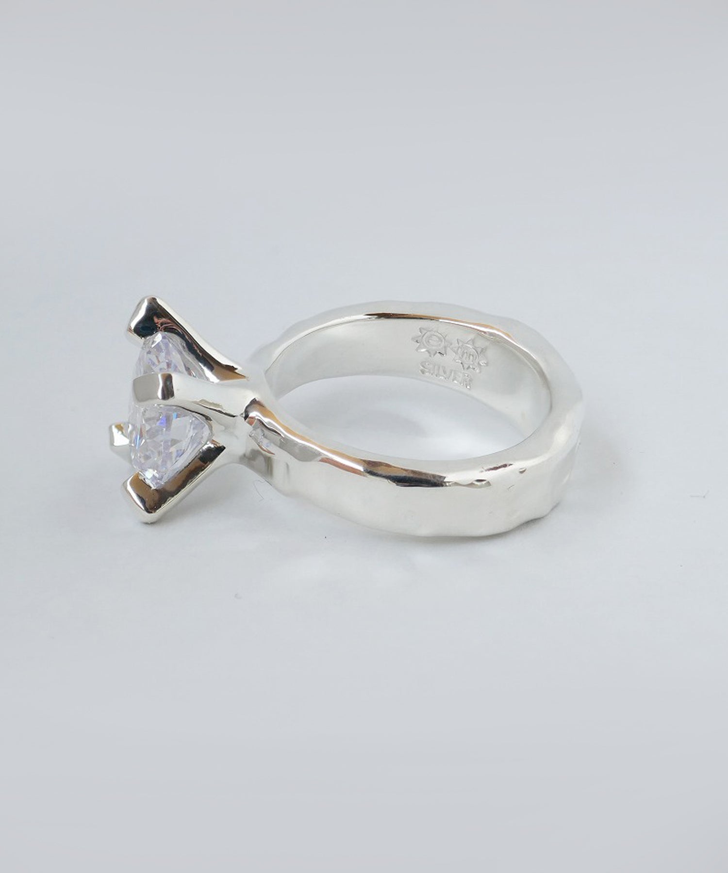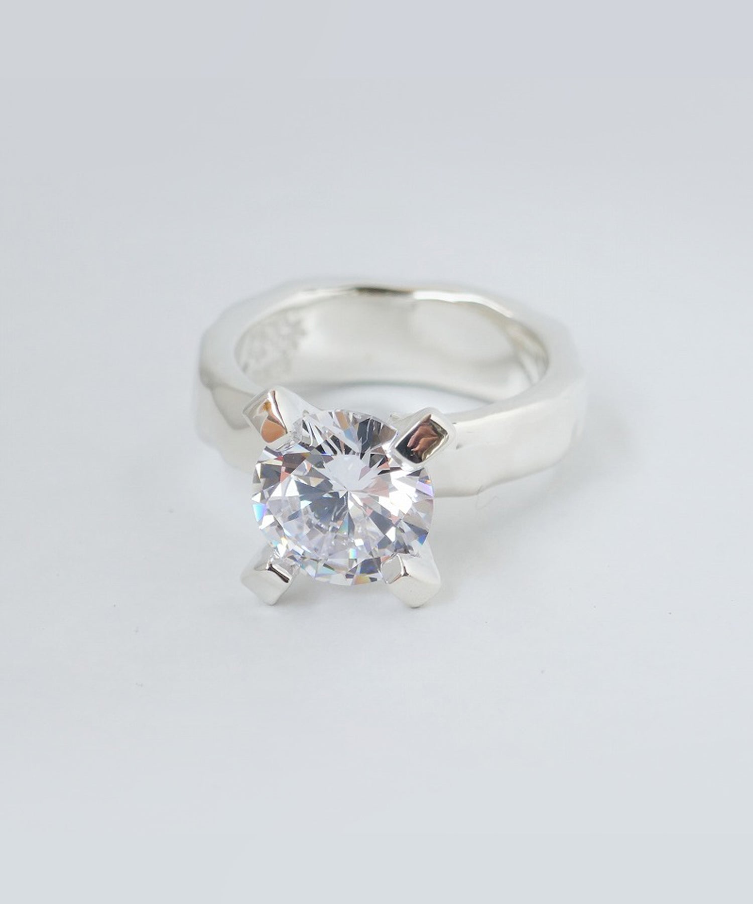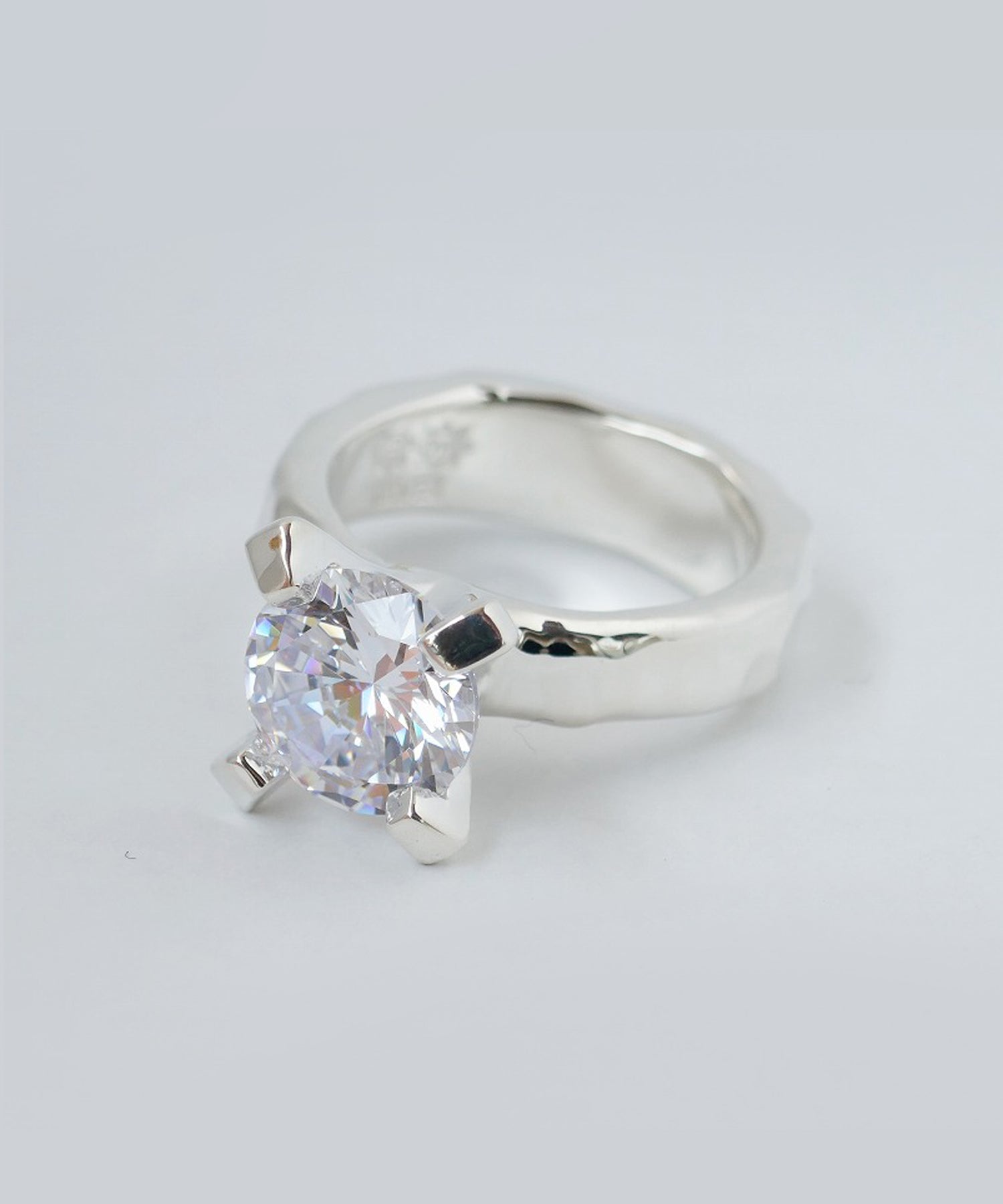 さらにアーム部分にボリュームを持たせることで、ソリティアのエレガントさとシルバーの無骨さの2つの要素がバランス良く合わさったデザインです。