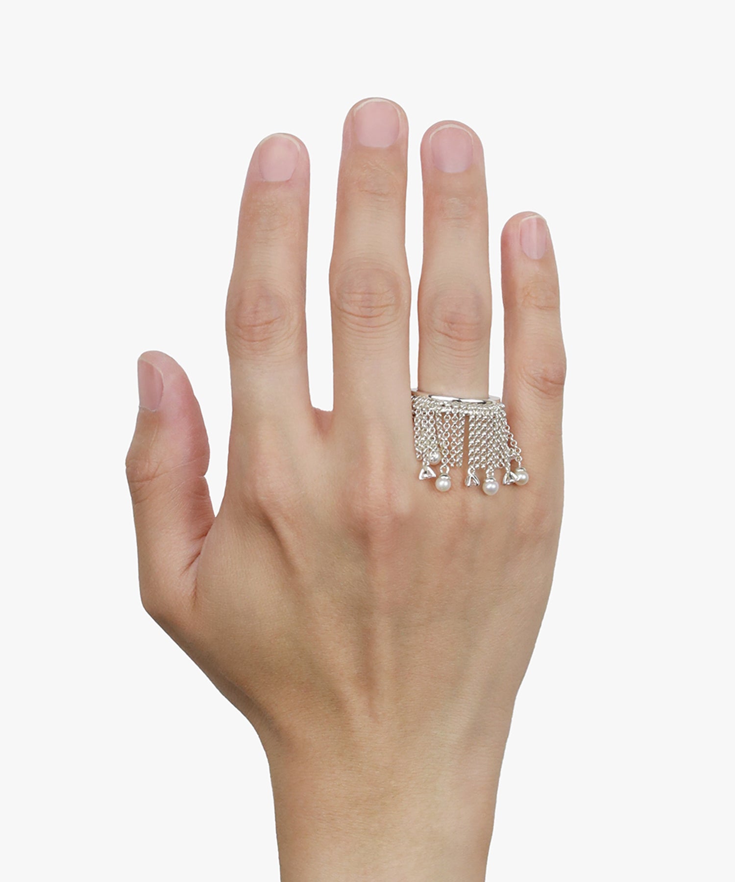 遊び心たっぷりの他にはないシルバーカラーのリング。