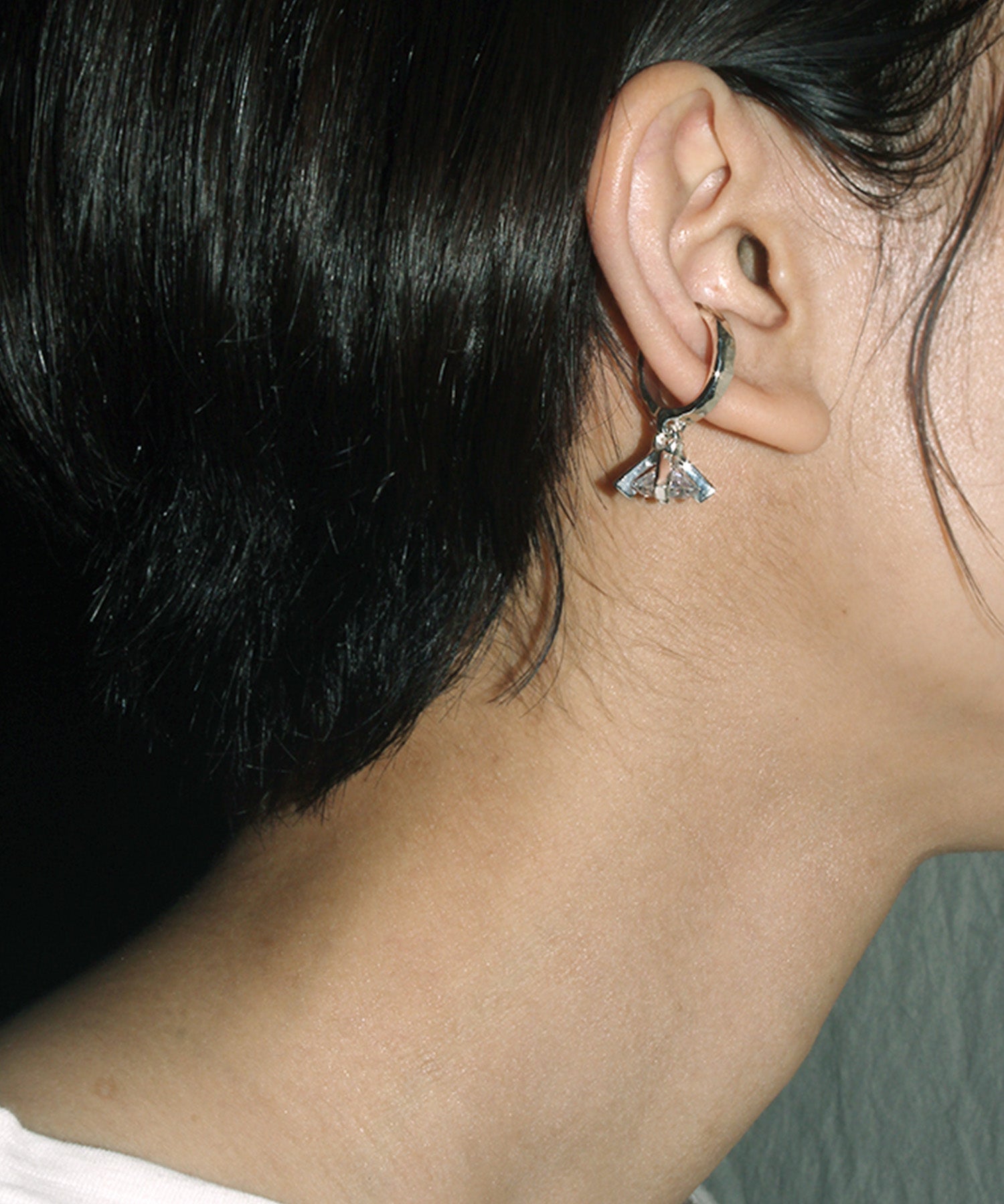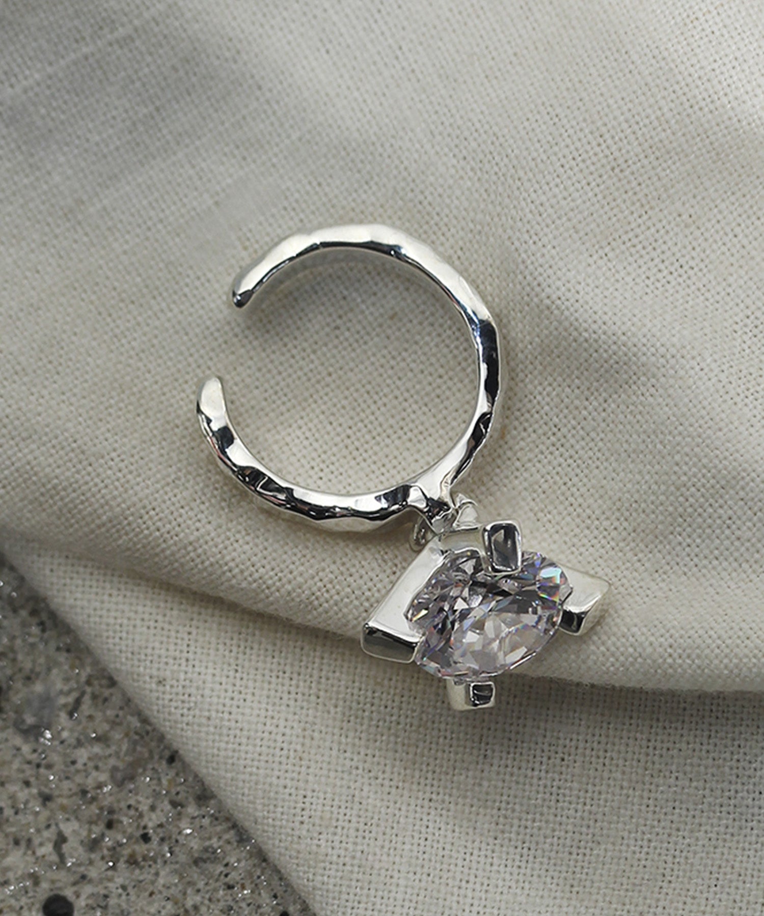 10㎜のキュービックジルコニアが揺れるシルバーイヤーカフ。