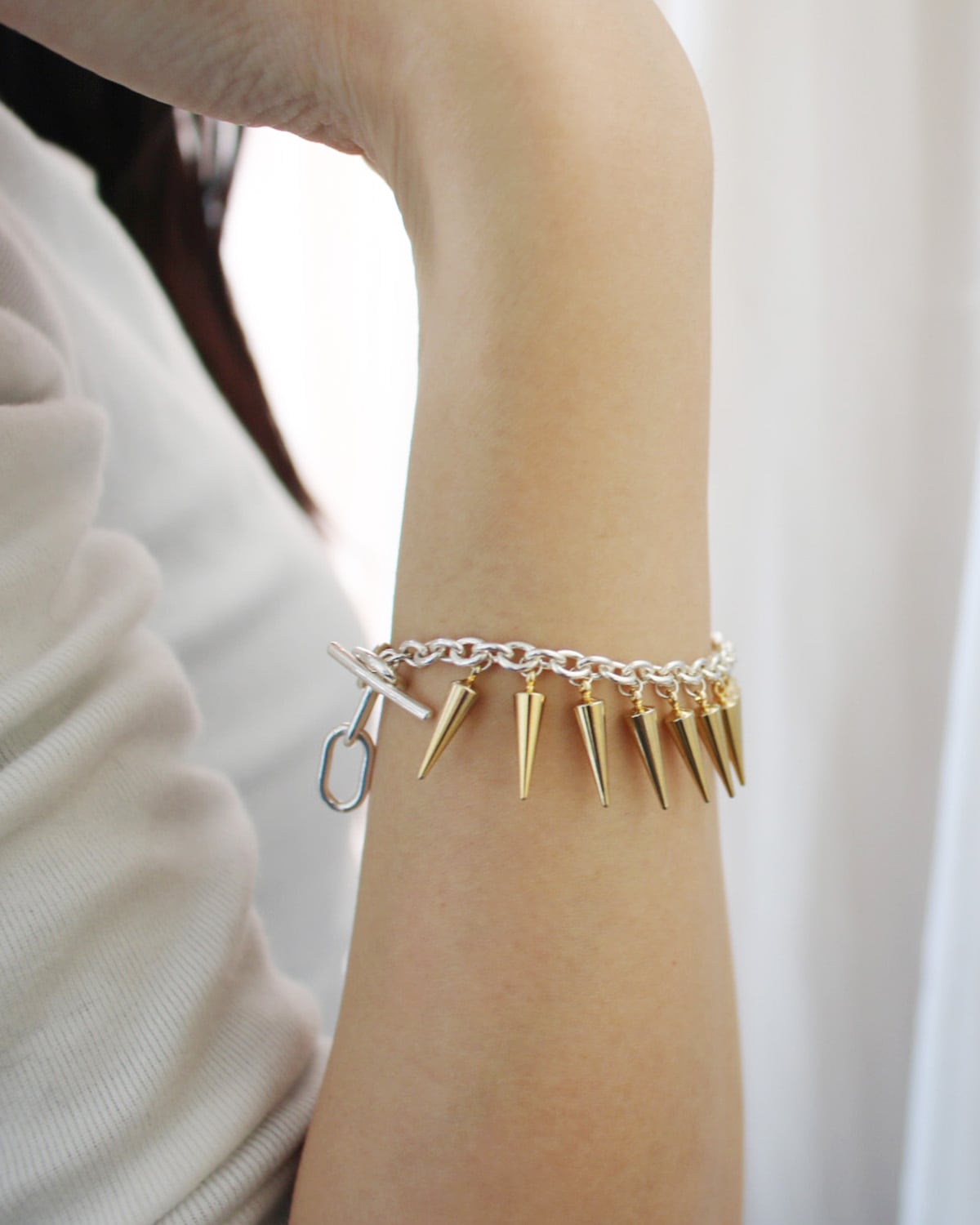 ゴールドカラーのスタッズを大胆に使ったブレスレット。