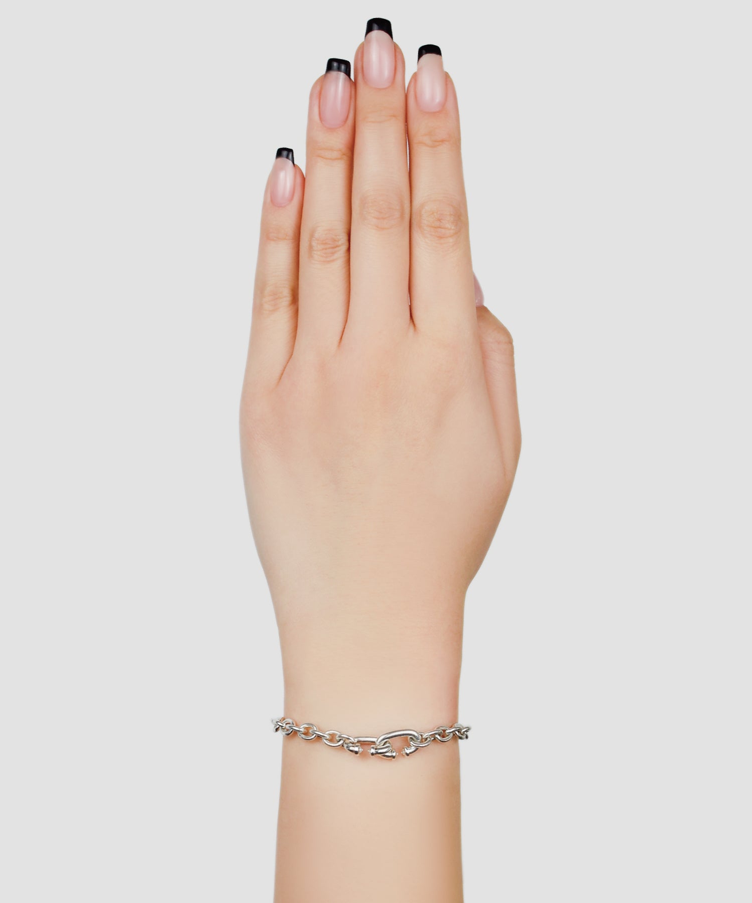 オリジナルチェーンの1駒を着脱する金具としてあしらい、デザインの主役にしています。