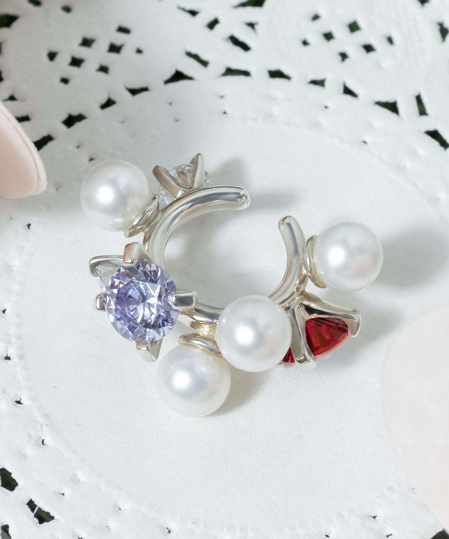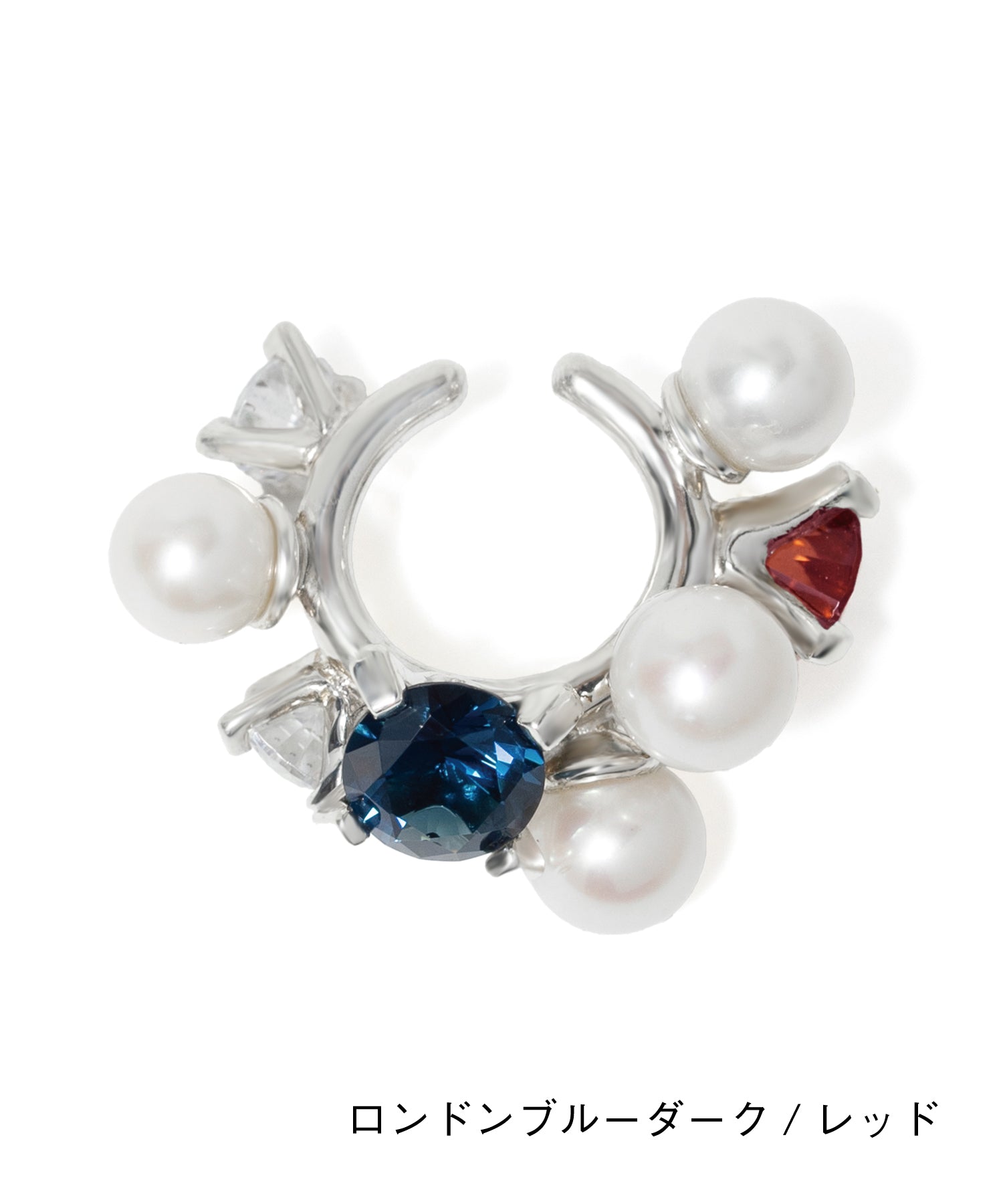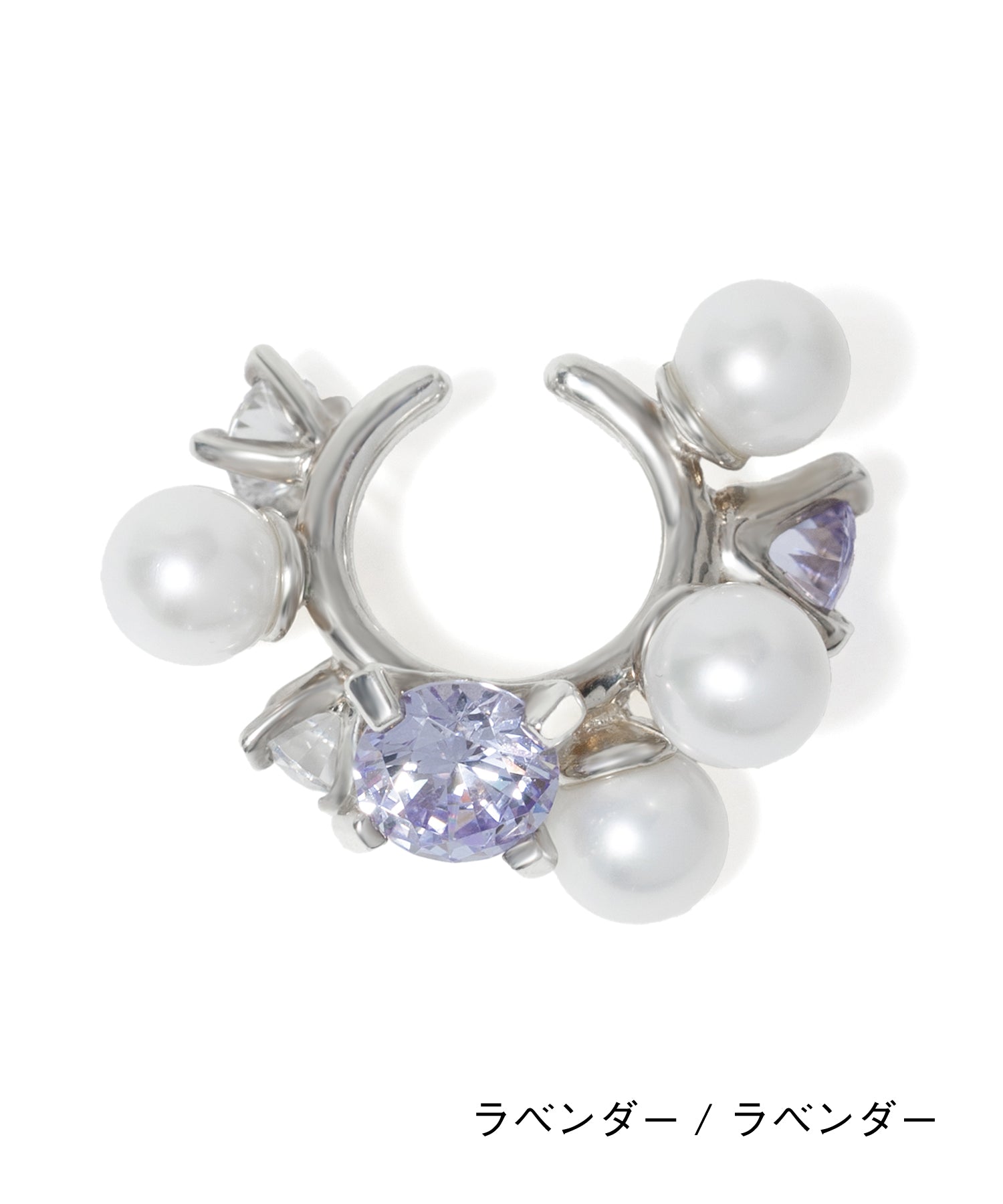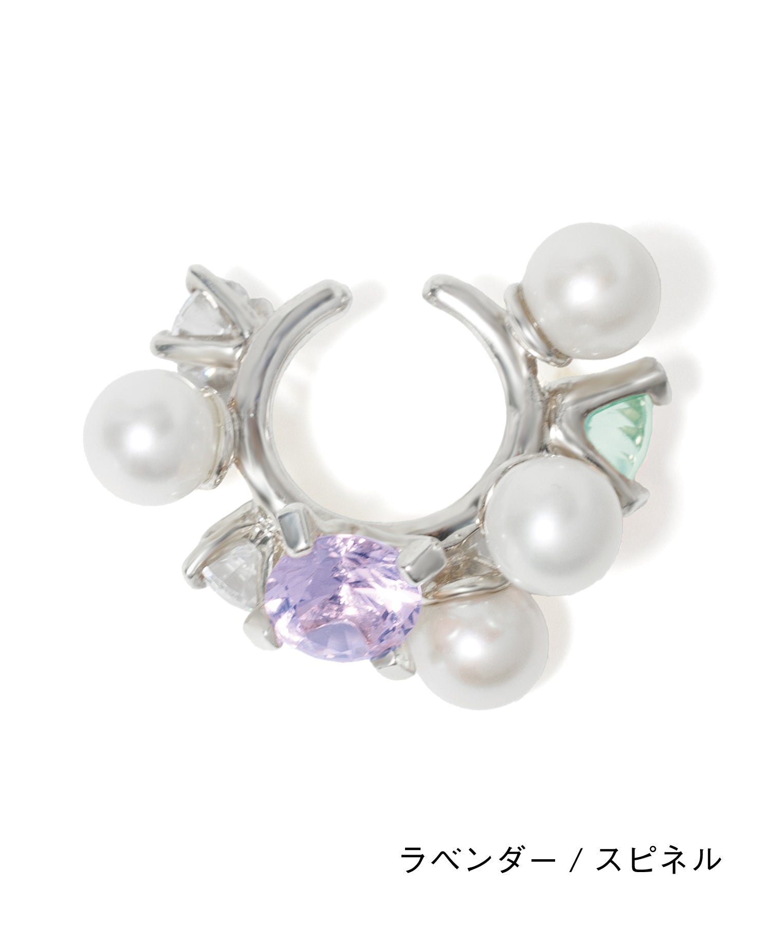 全体にキュービックジルコニアとパールをセッティングしたイヤーカフ。