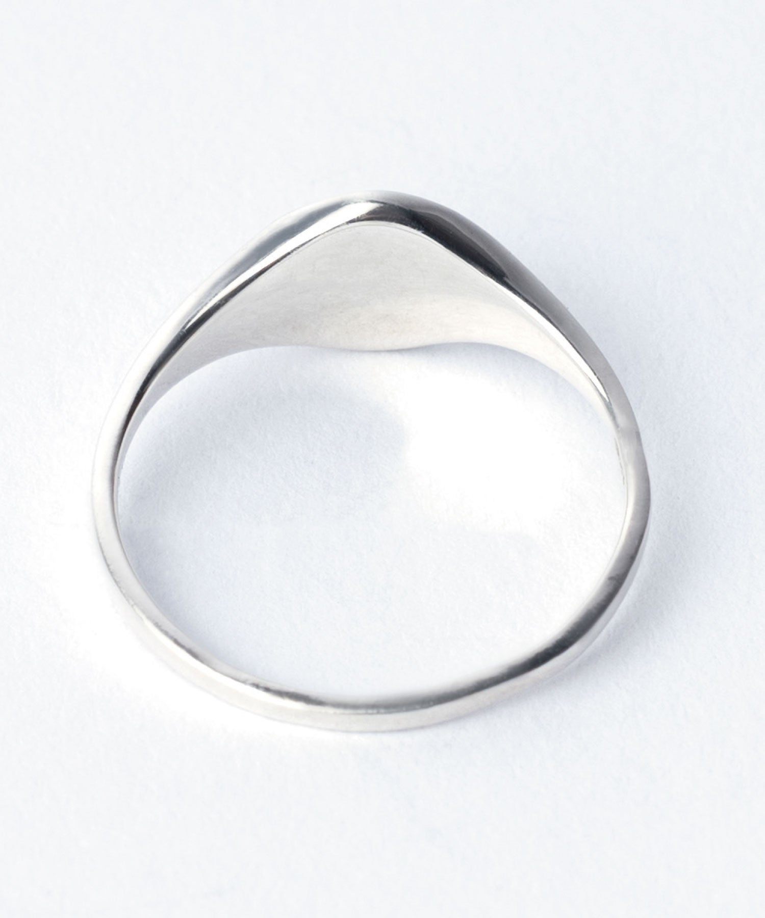 こちらのデザインは、トップの印台部分はサークル型、アームは後ろにかけて徐々に細身になっています。厚みを抑えていることで指にしっとりと馴染み、着け心地の良いフォルムです。
