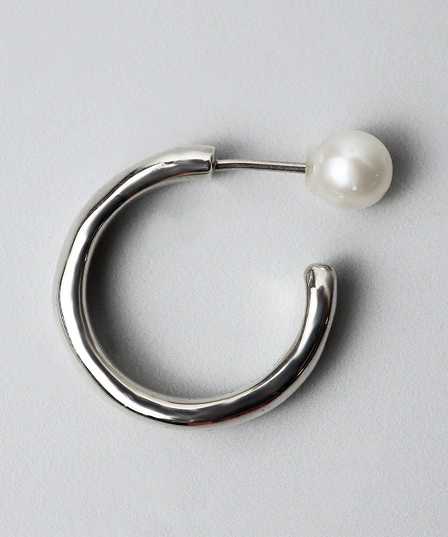 パールキャッチがポイントのシンプルなシルバーのフープピアス。