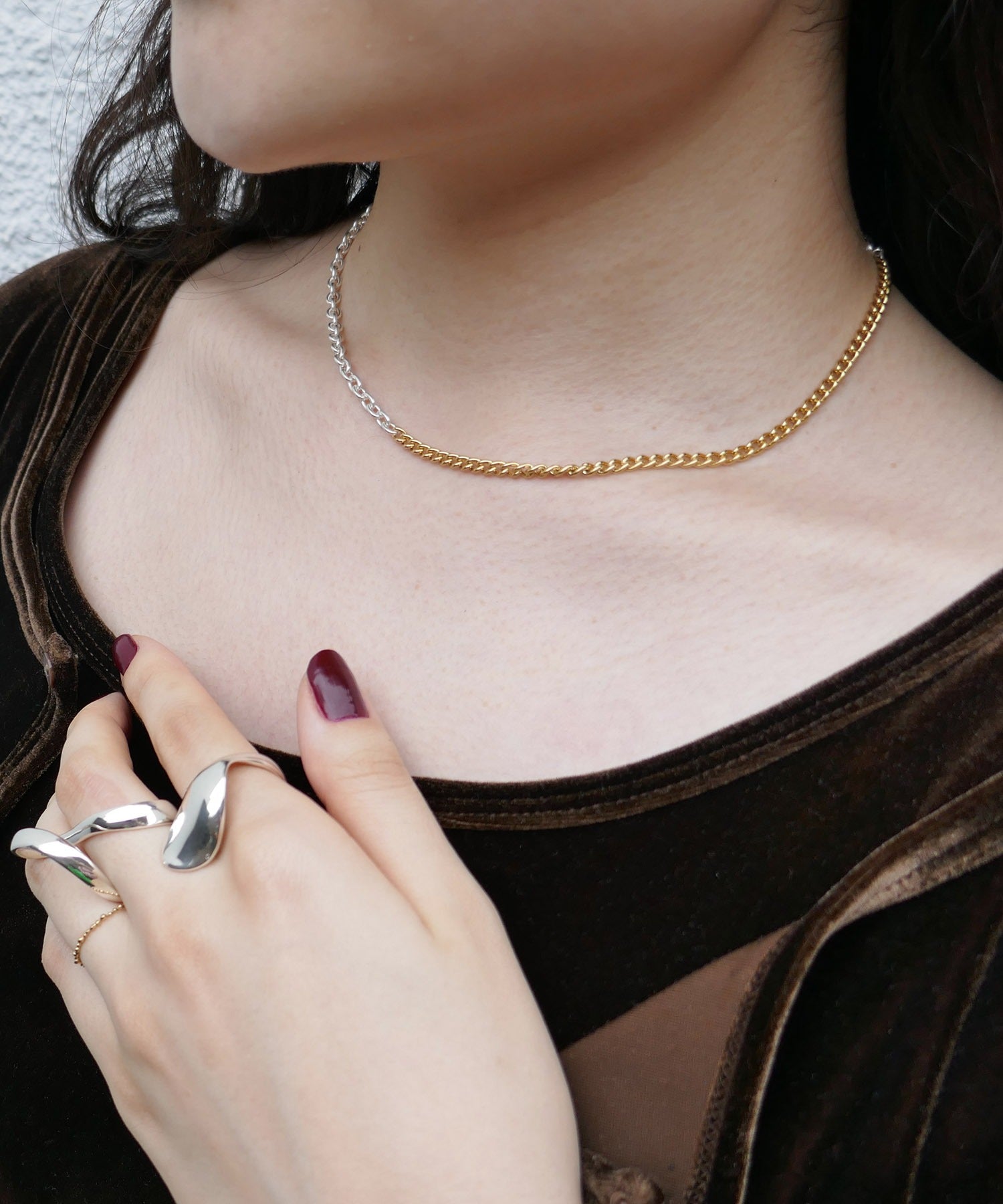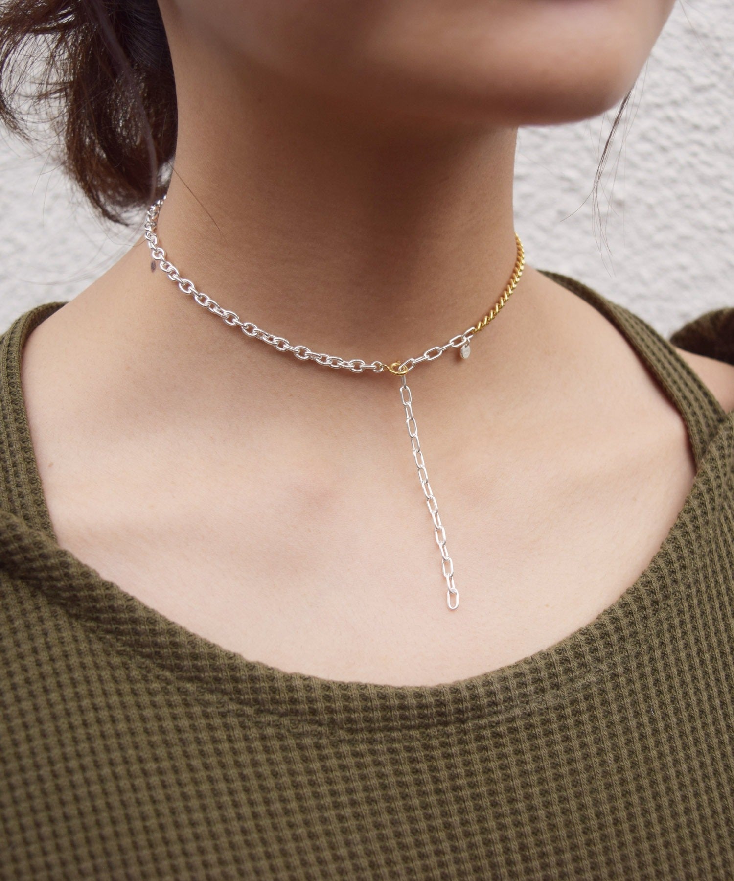 少し短くチョーカーのように着けてレイヤードスタイルを楽しむことも可能です。