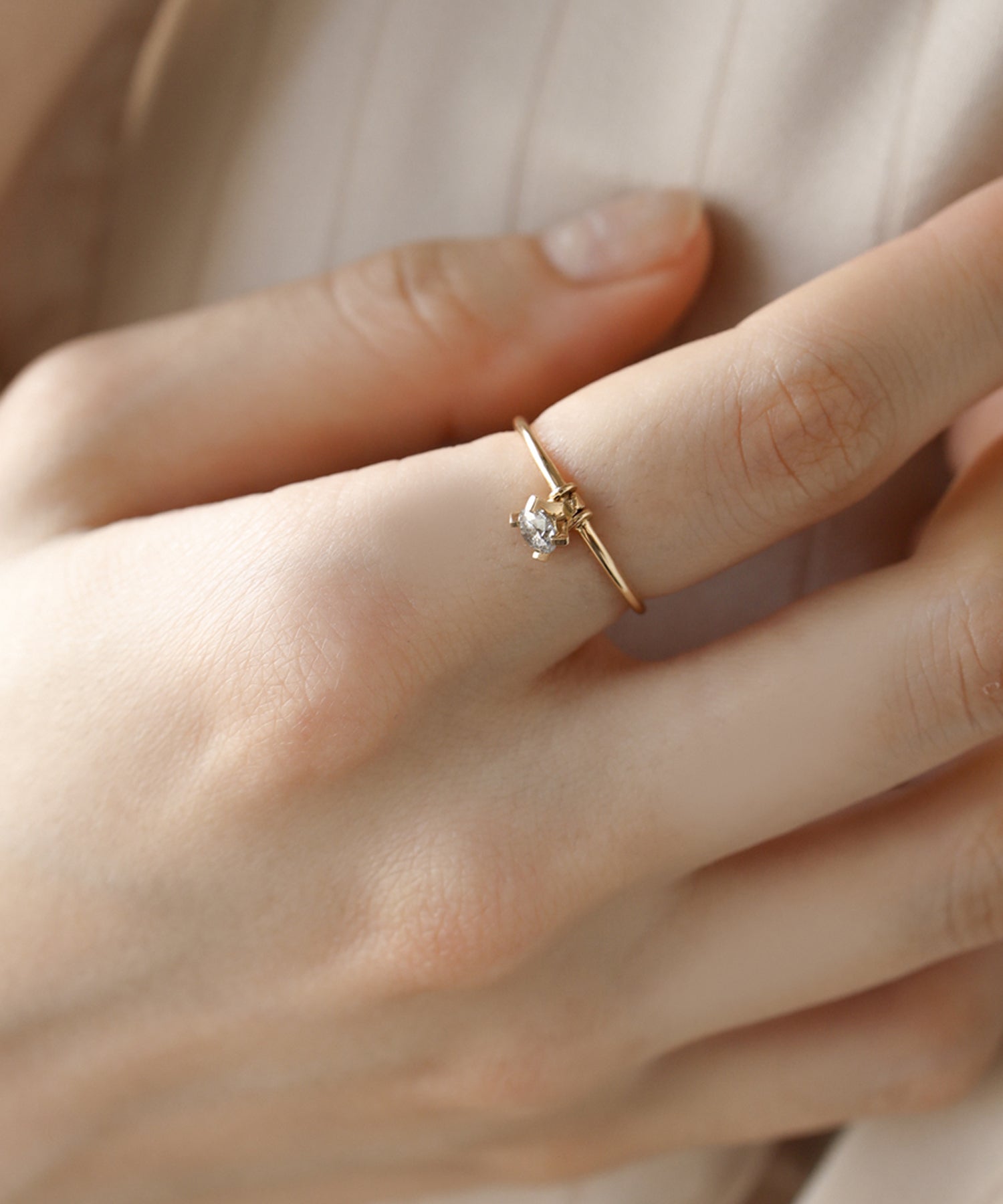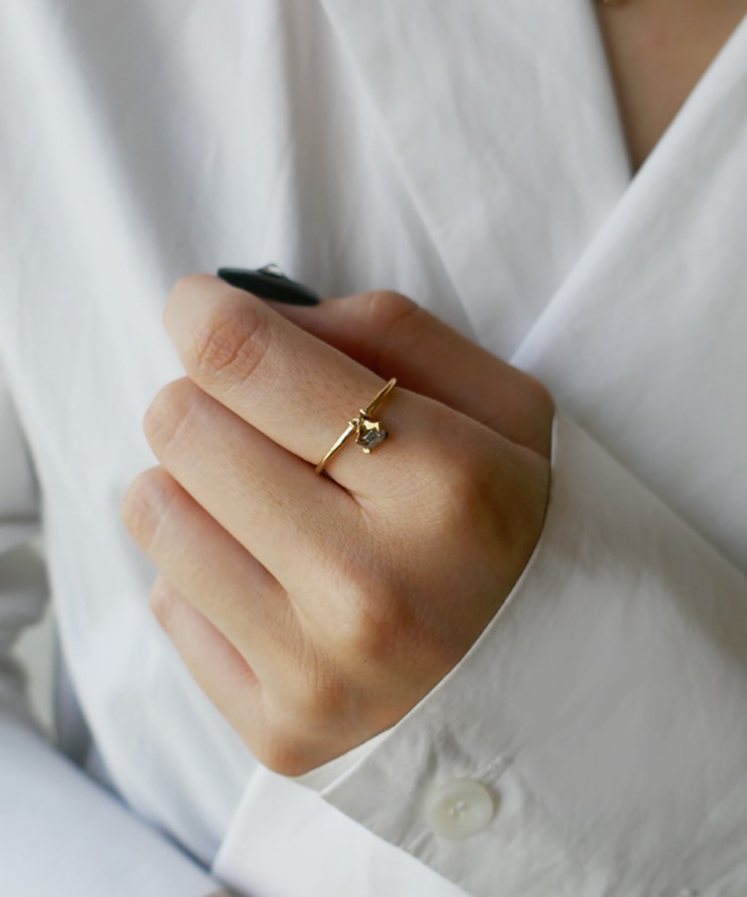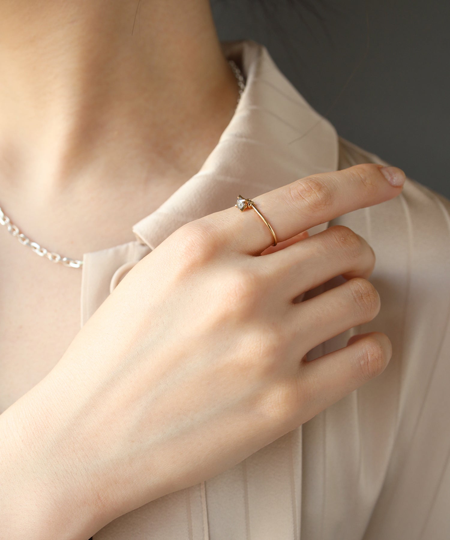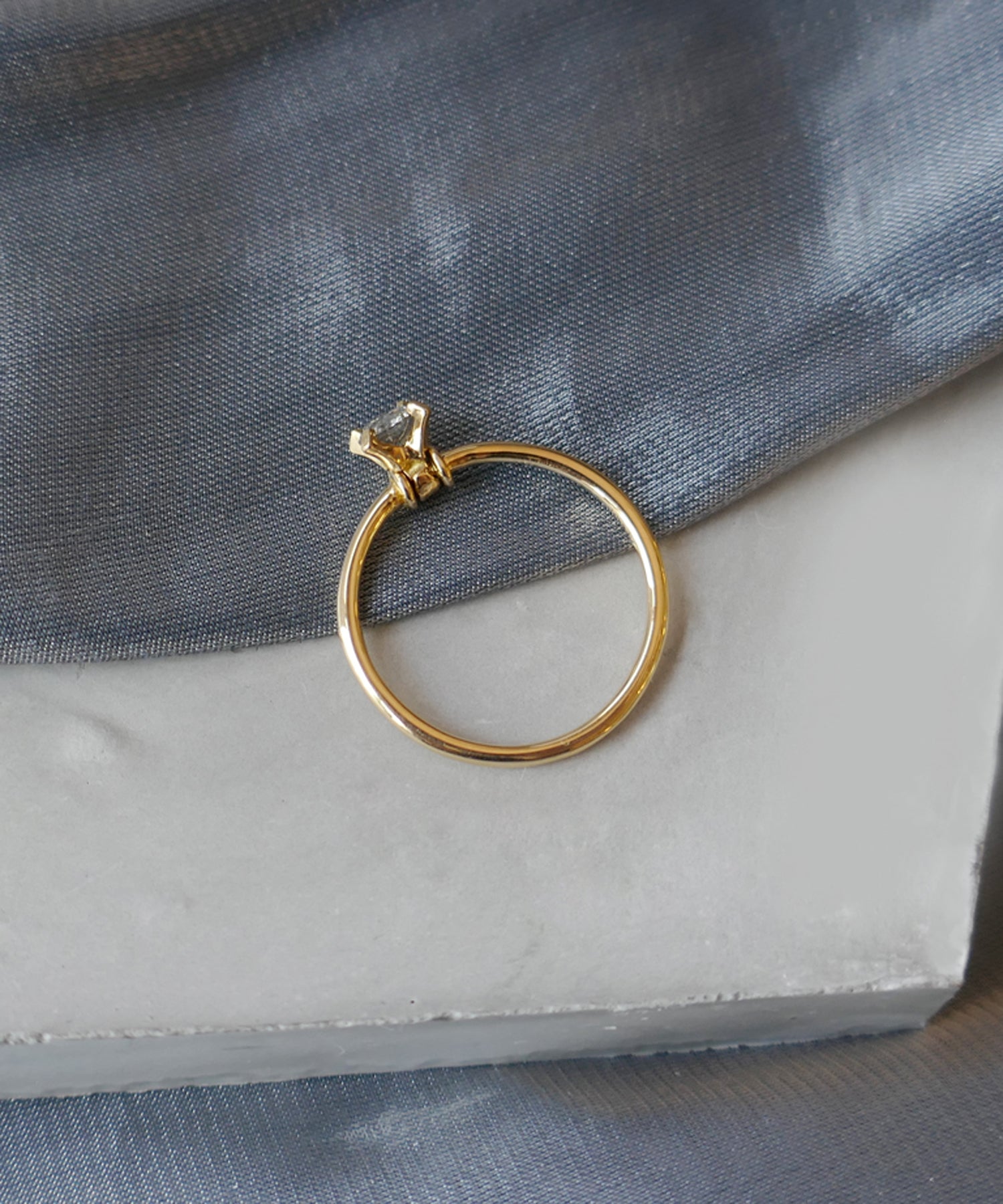 一粒のグレーダイヤモンドが手元で上品に揺れるリング。透明感を残しながらも洗練された手元を演出するカラーダイヤモンドならではの風合いをお楽しみいただけます。