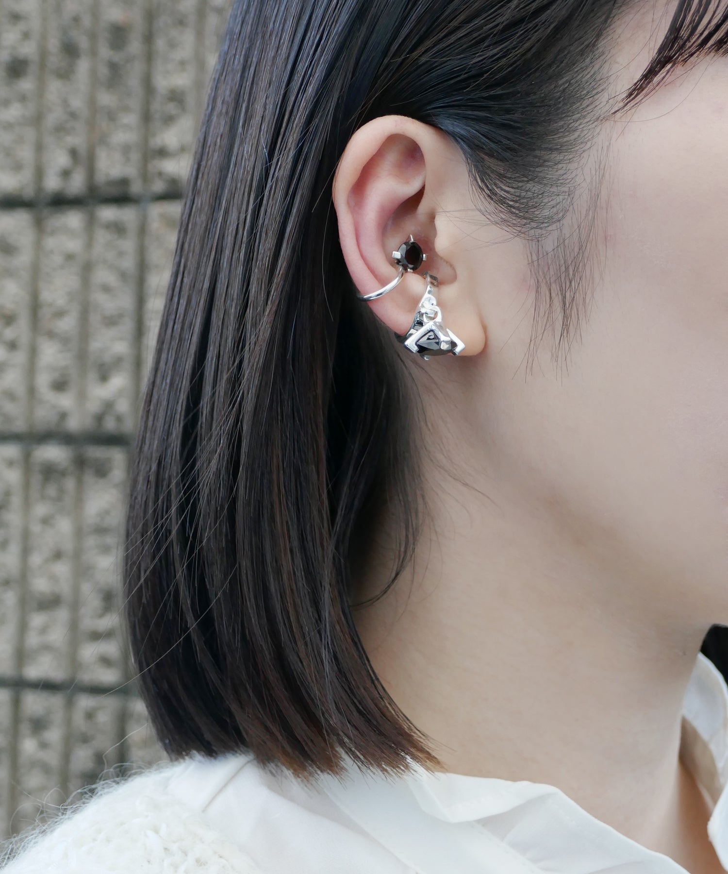 耳の内側にストーンが収まるコンパクトな見た目は